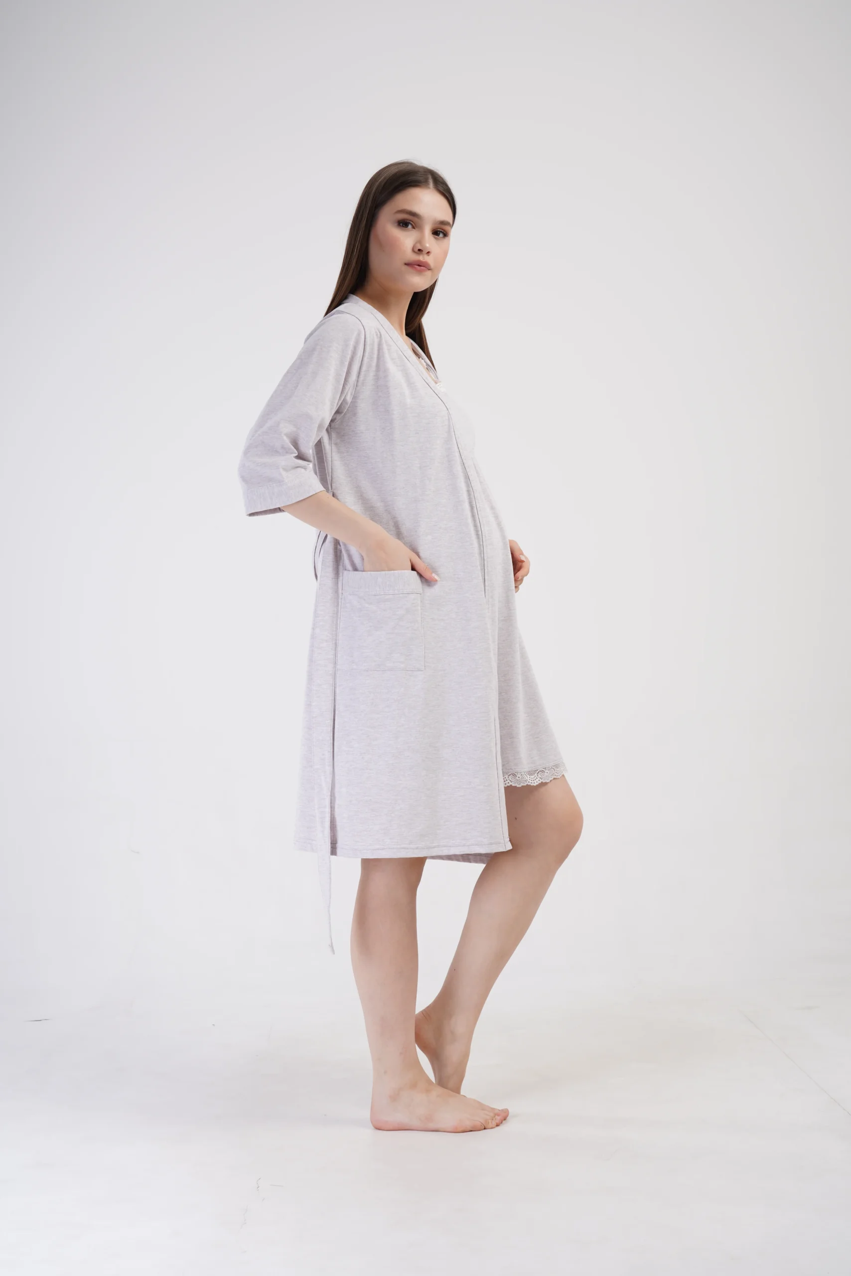 • Szlafrok z rękawem 3/4 oraz praktycznymi kieszeniami