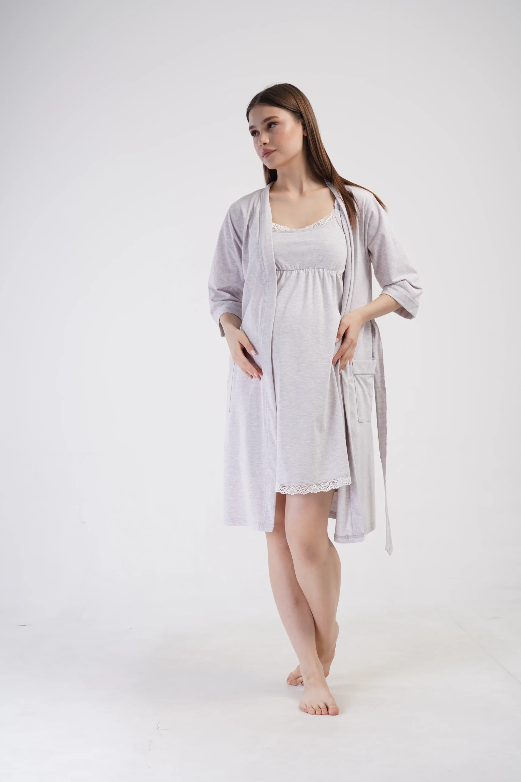 • Dwuczęściowy komplet: koszula nocna na ramiączkach + szlafrok