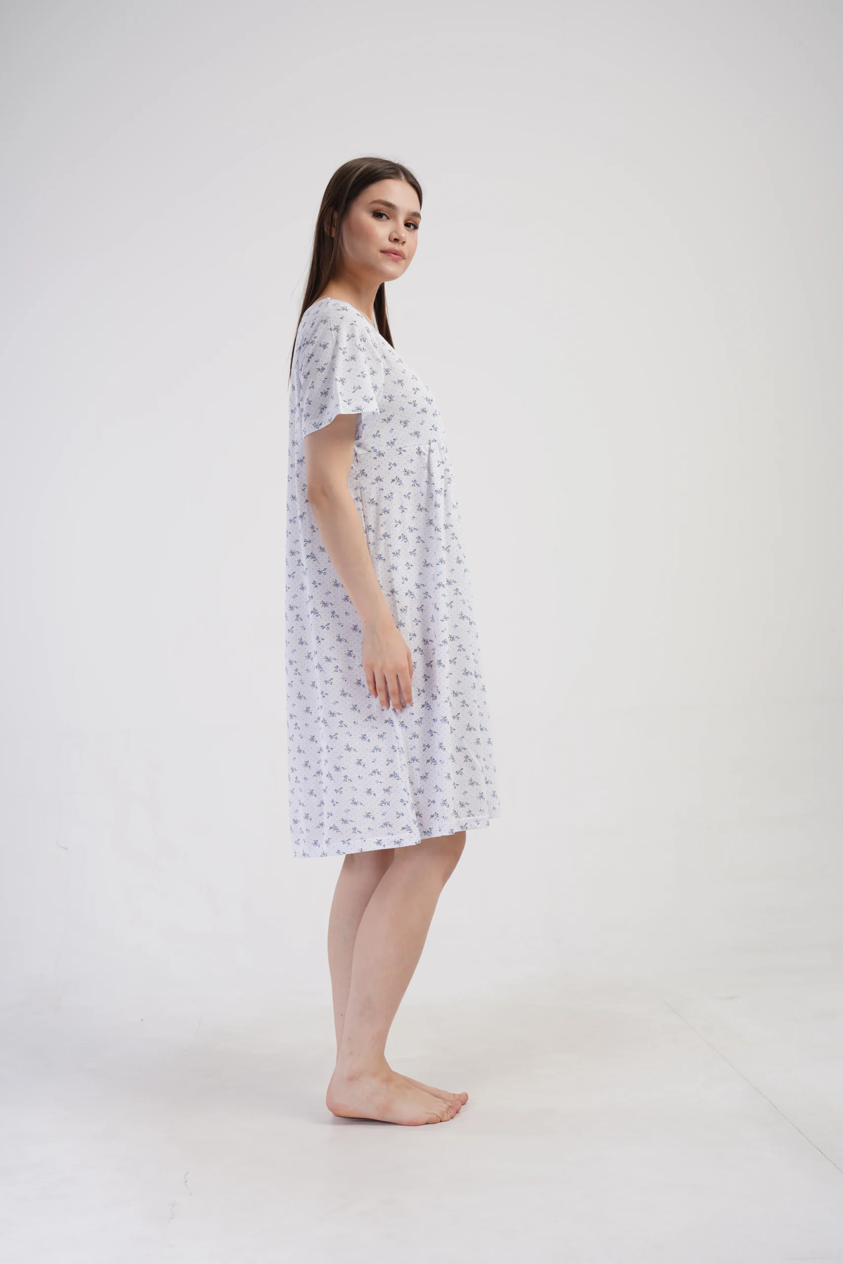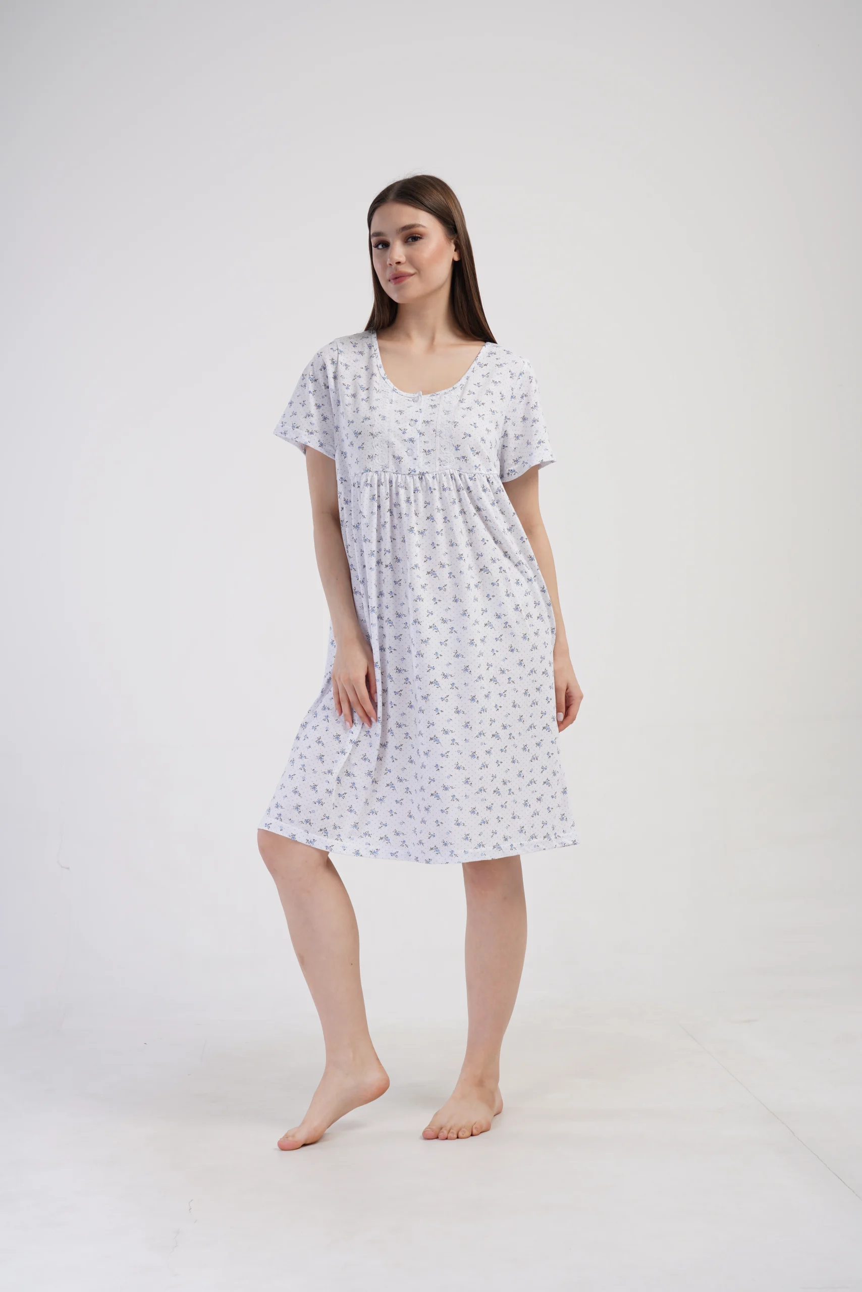 • Komfortowa koszula nocna z krótkim rękawem i delikatnym marszczeniem pod biustem