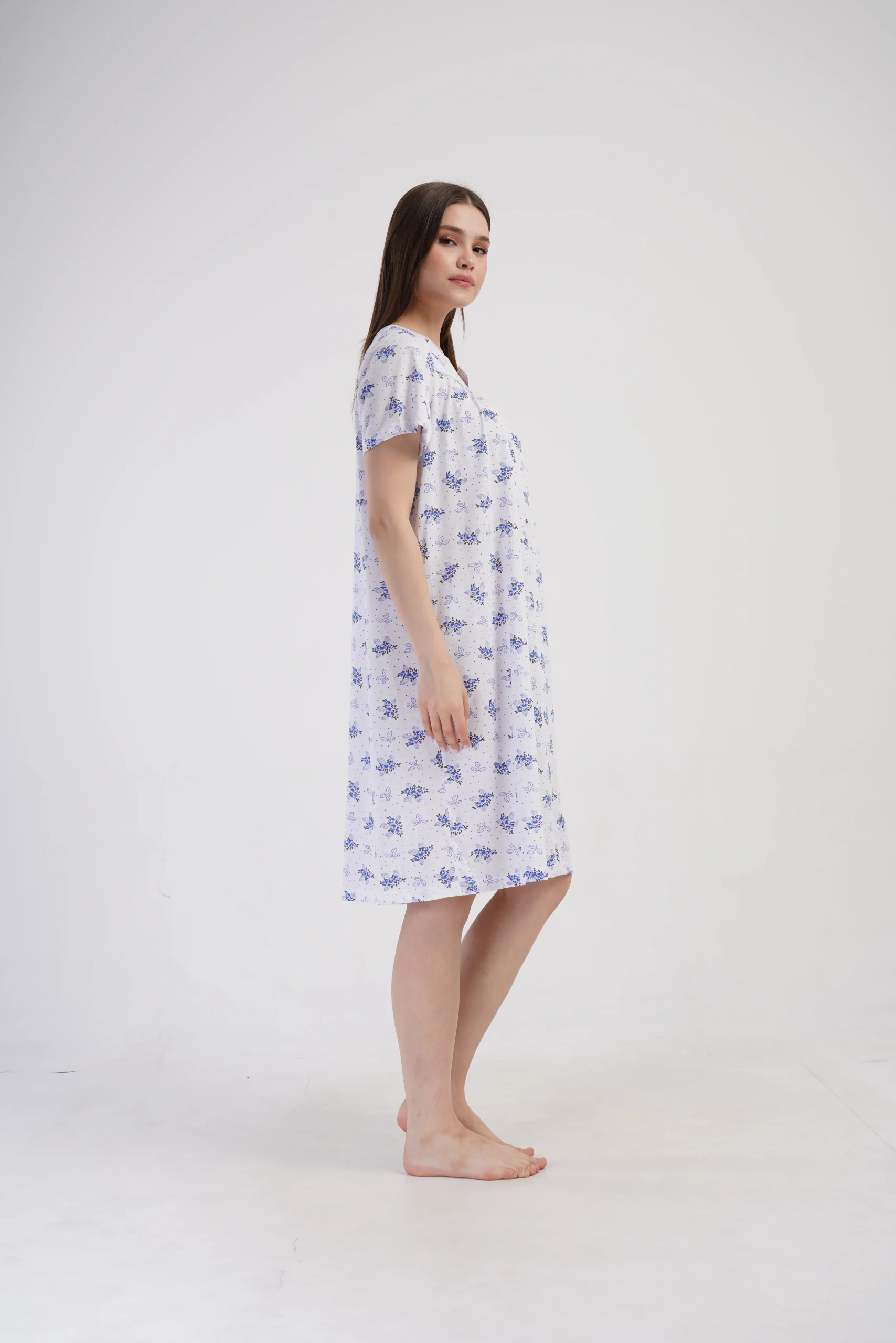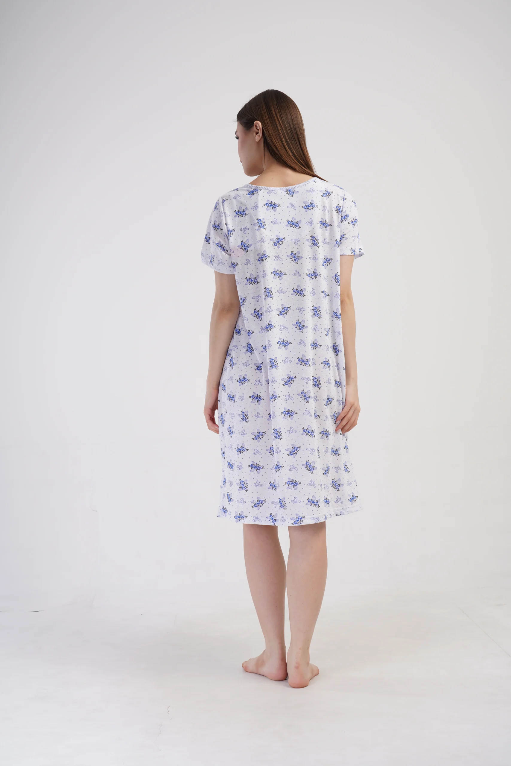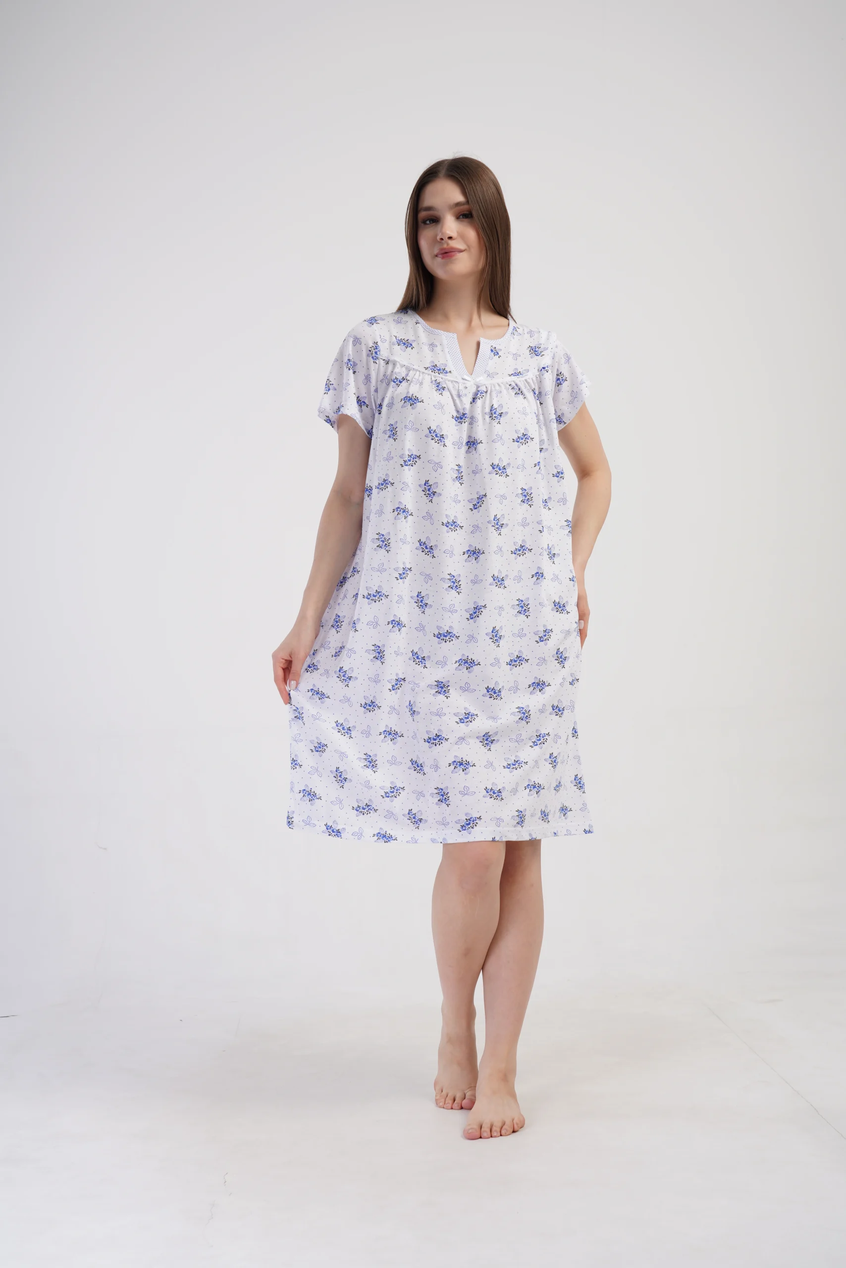 • Klasyczna koszula nocna z krótkim rękawem i subtelnym rozcięciem przy dekolcie