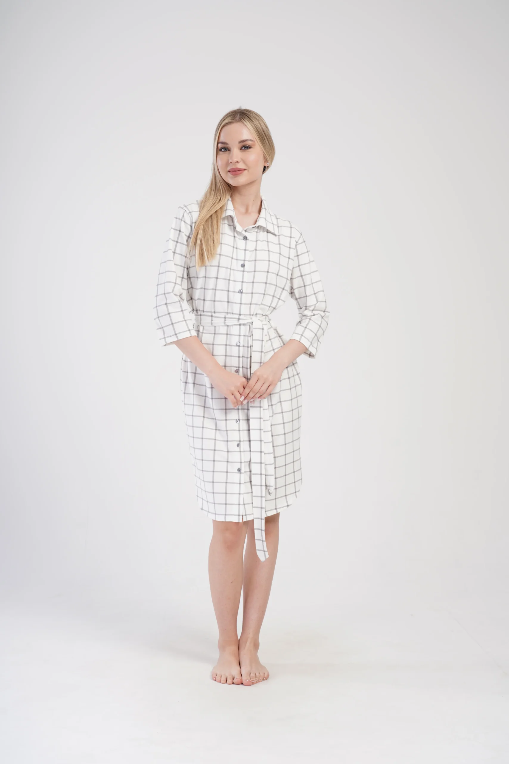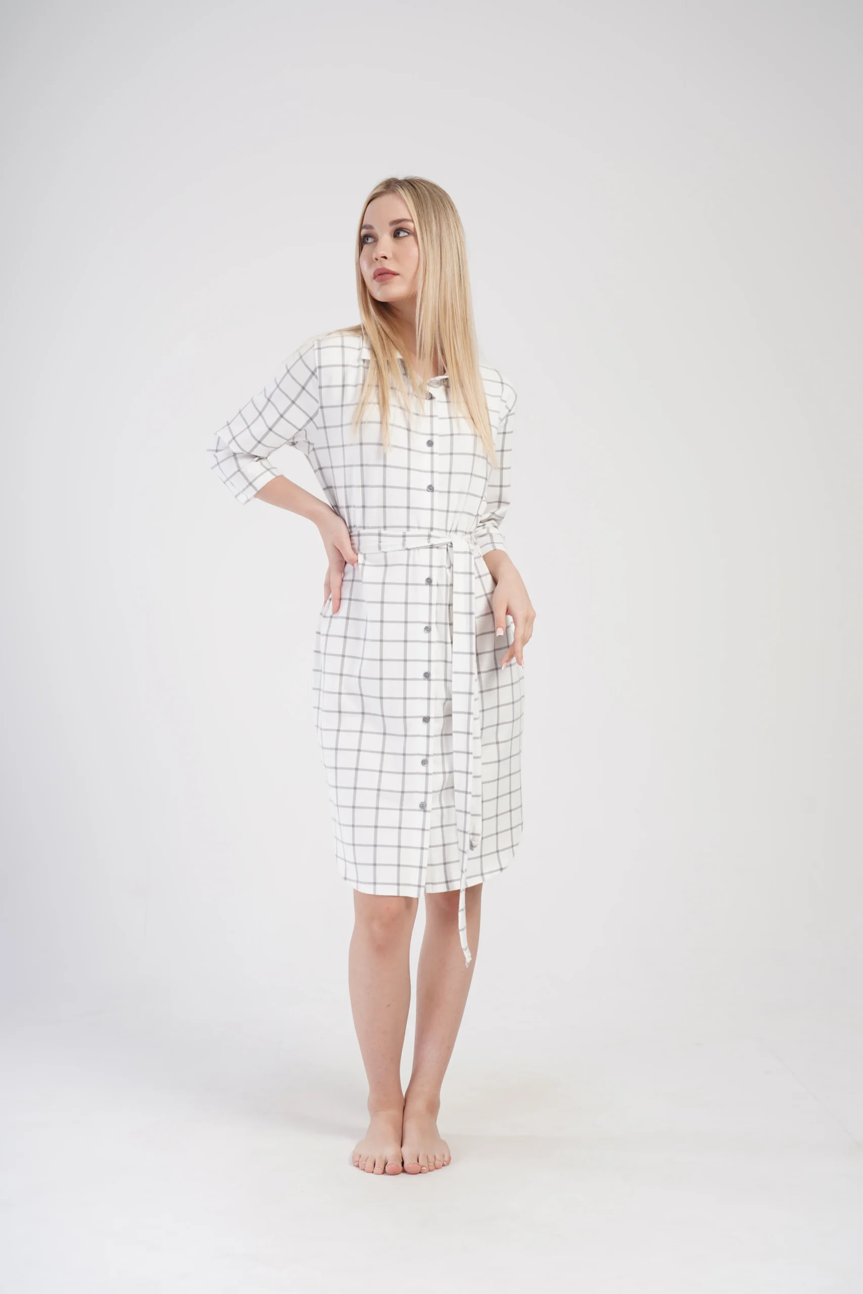 • Elegancka koszula nocna damska o kroju szmizjerki, zapinana na guziki na całej długości