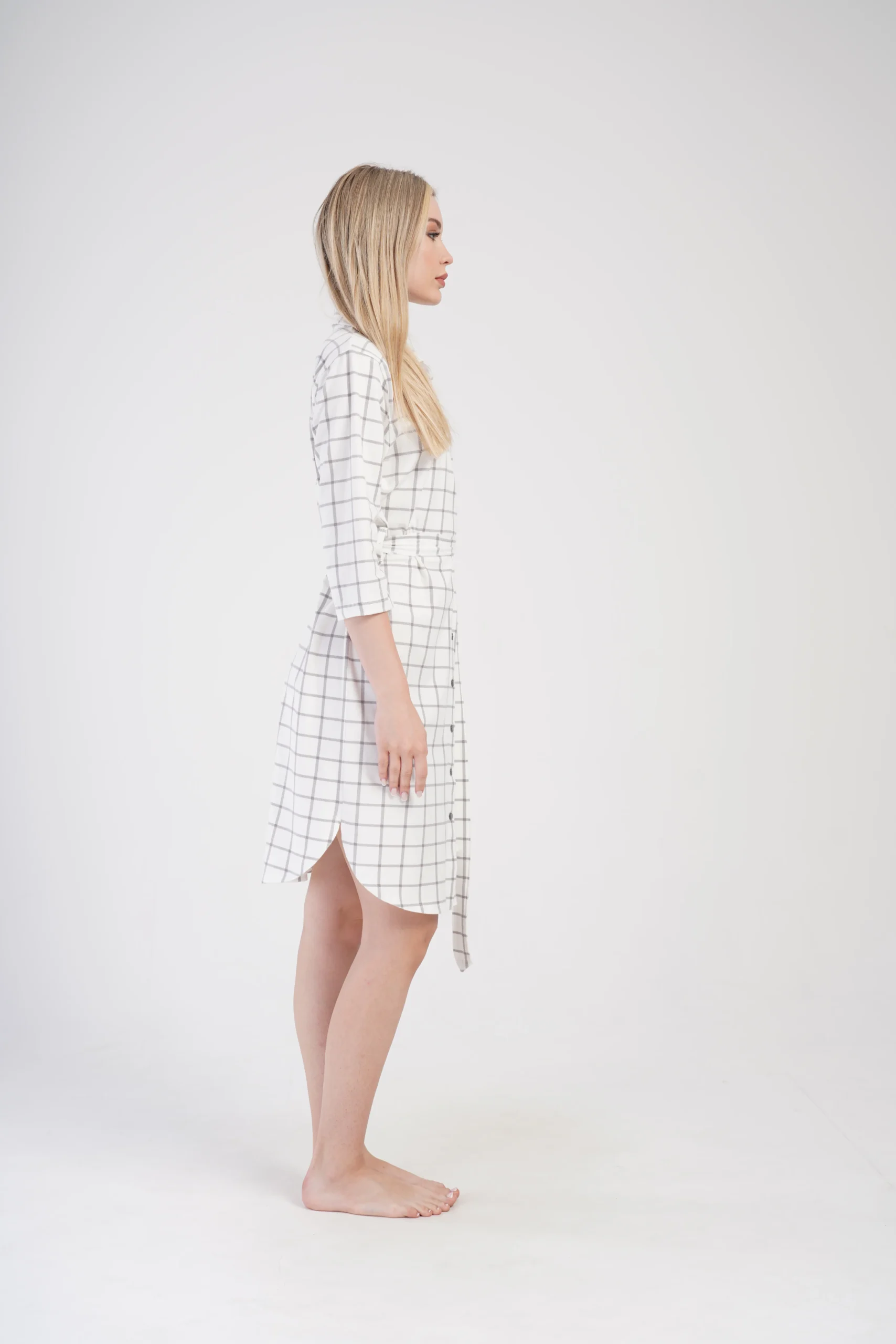 • Delikatny jasny odcień ecru z klasycznym wzorem w kratę