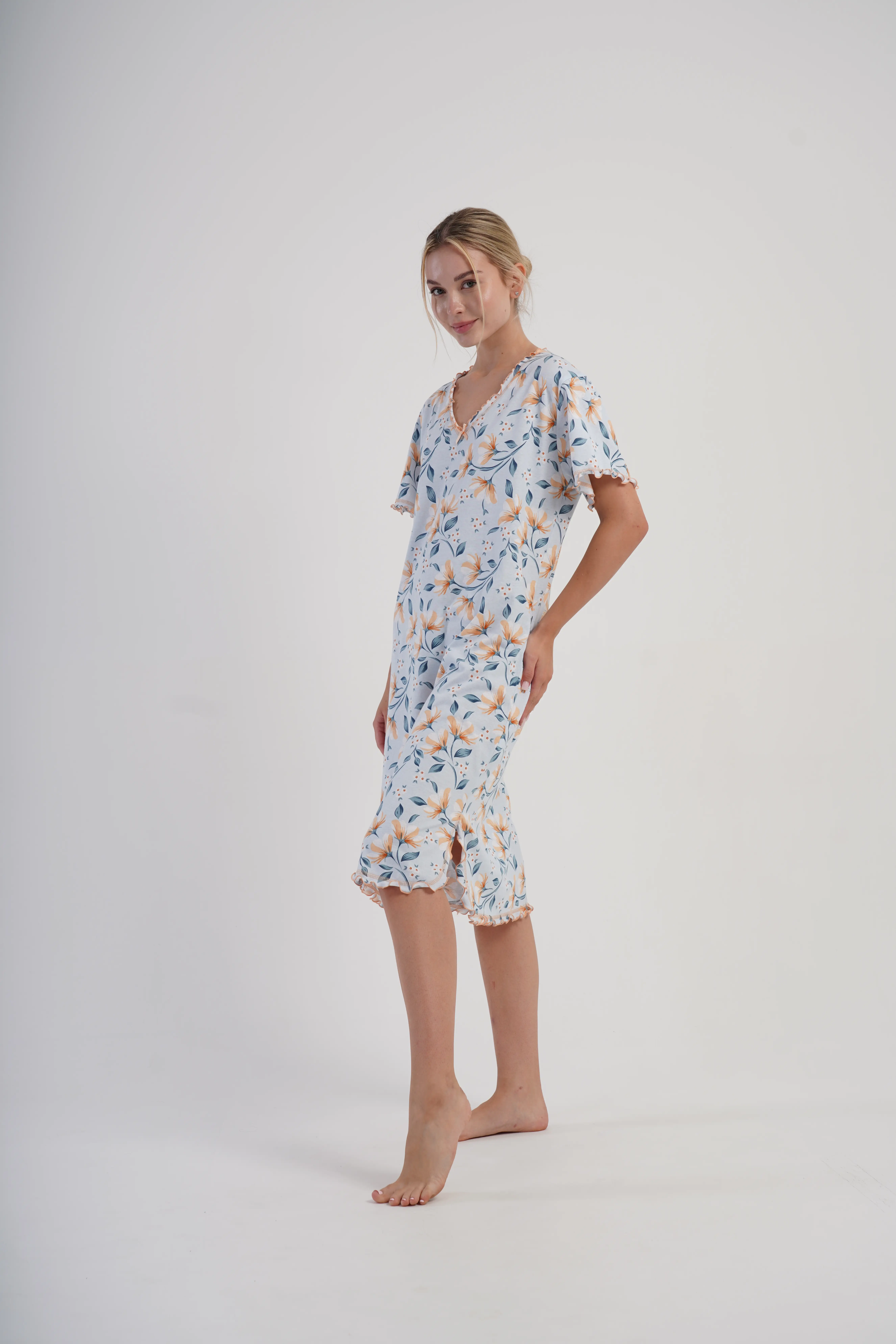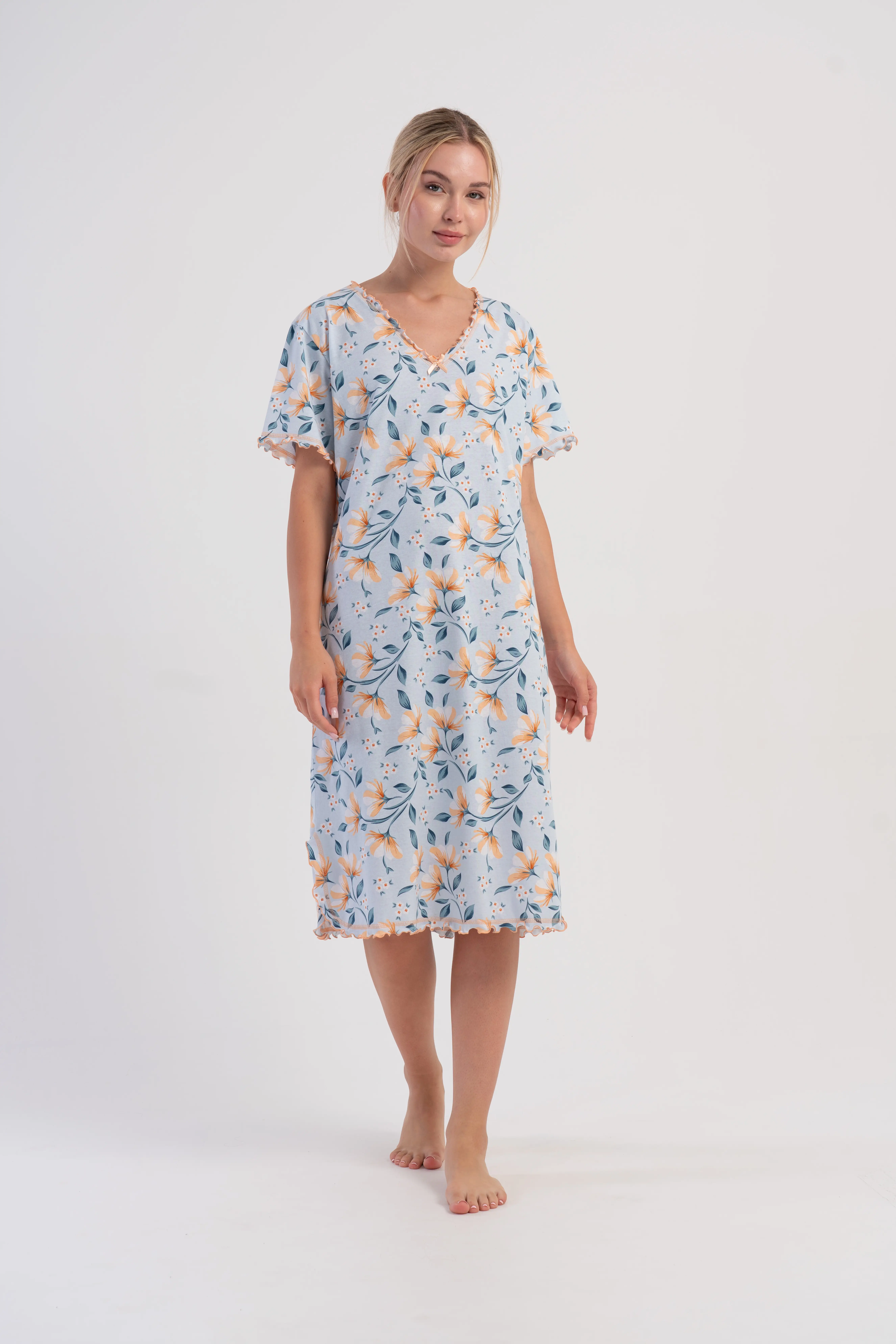 • Zwiewna koszula nocna o długości za kolano, idealna na cieplejsze noce