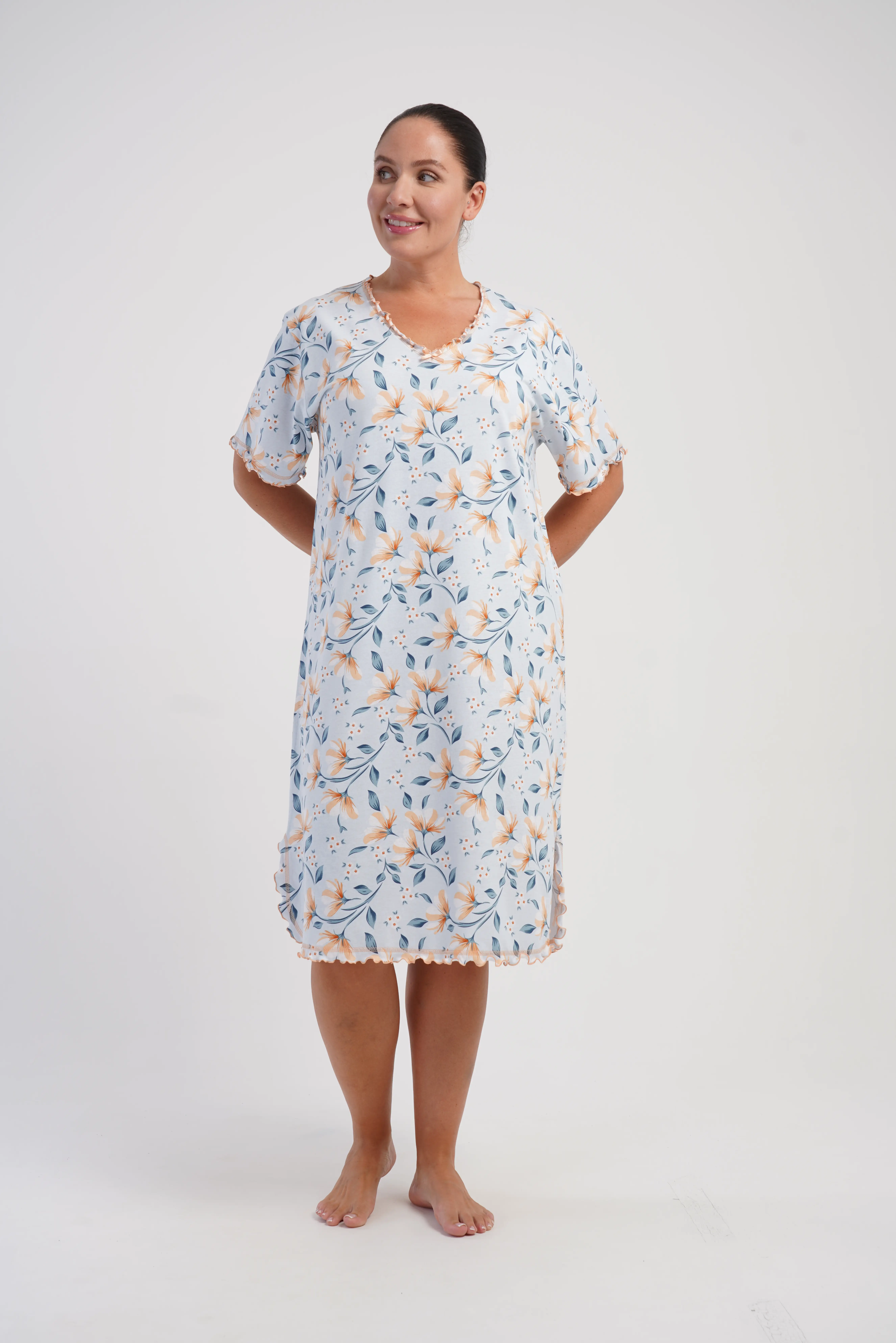 • Zwiewna koszula nocna w większych rozmiarach, o długości za kolano