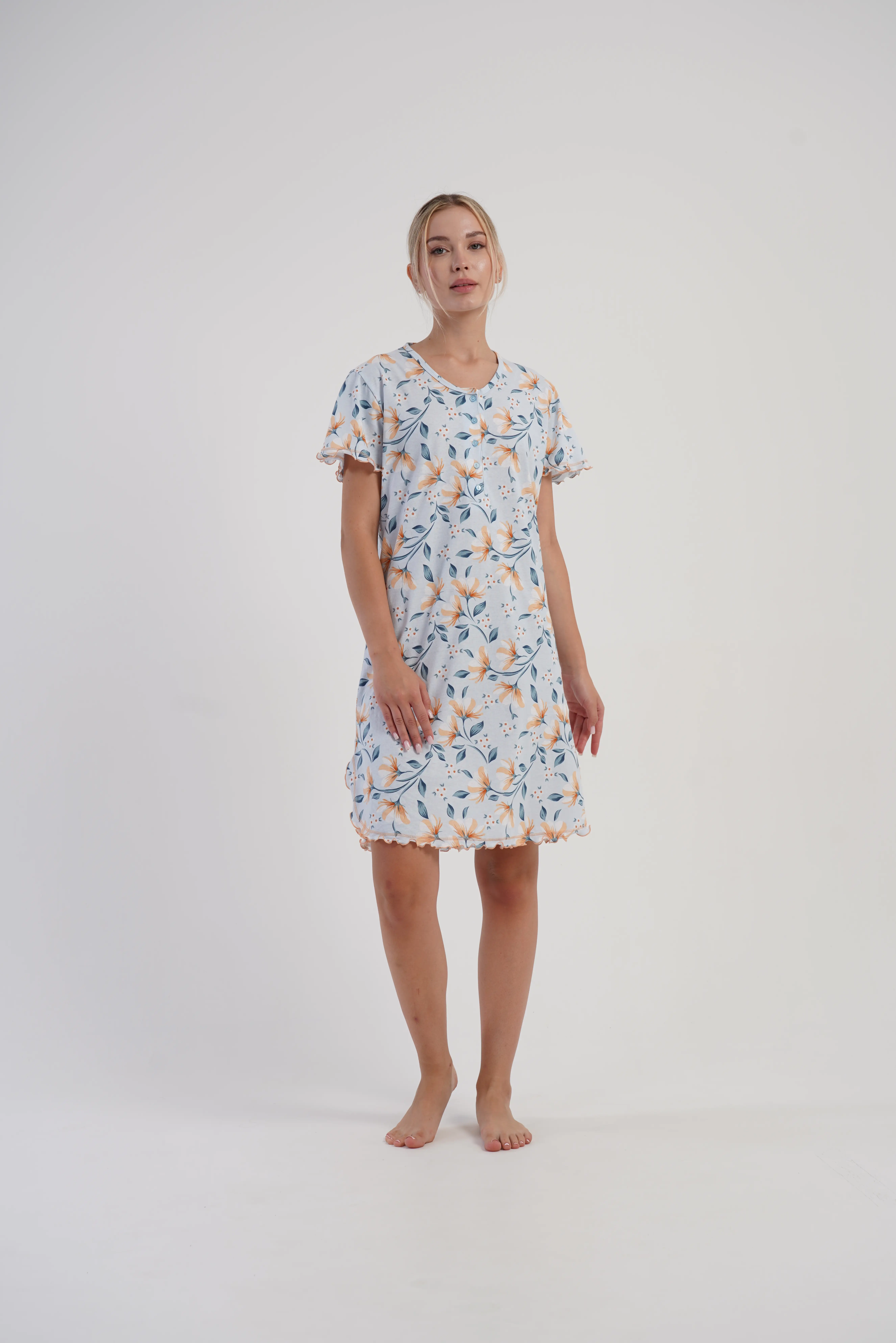 • Zwiewna koszula nocna damska z krótkim rękawem