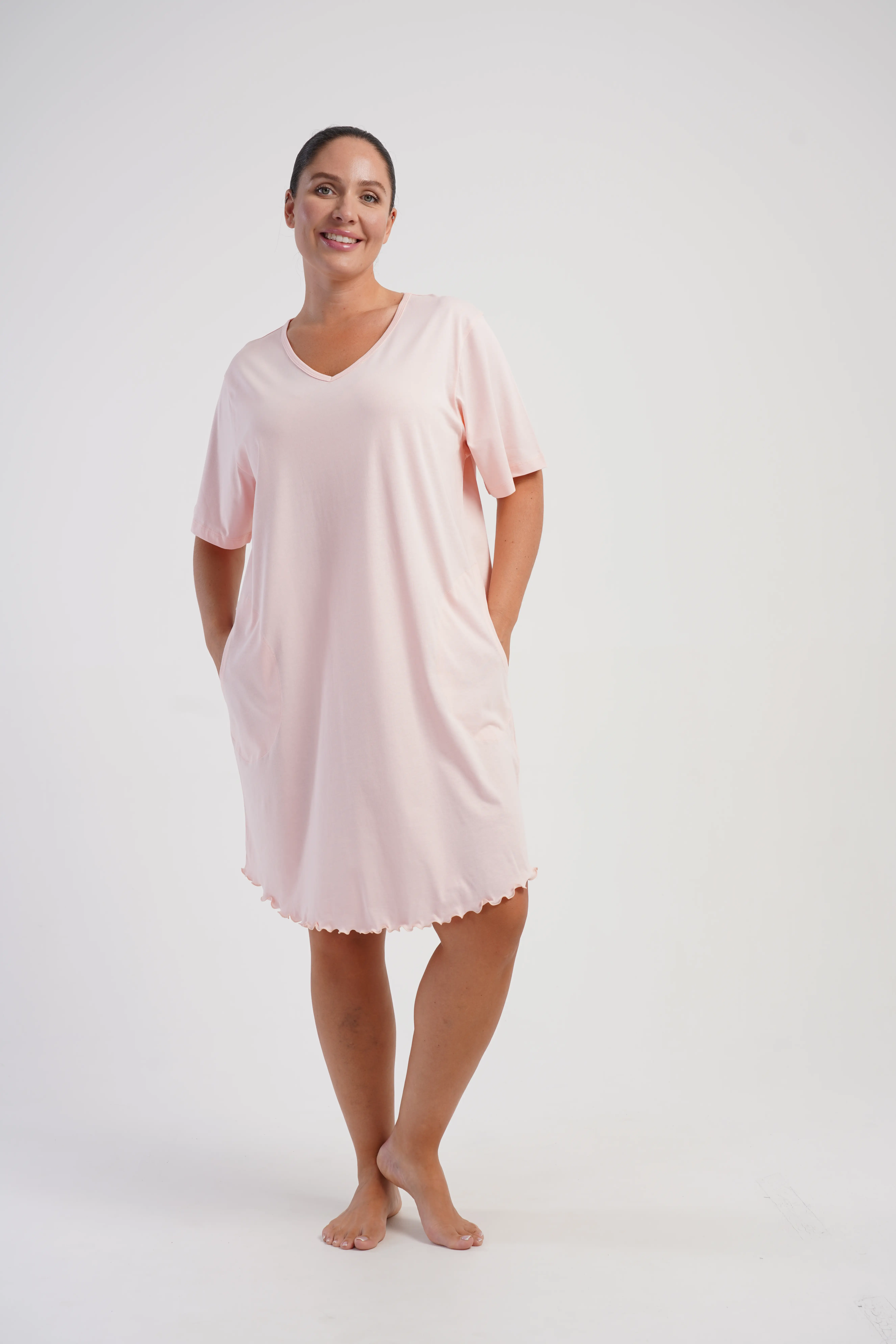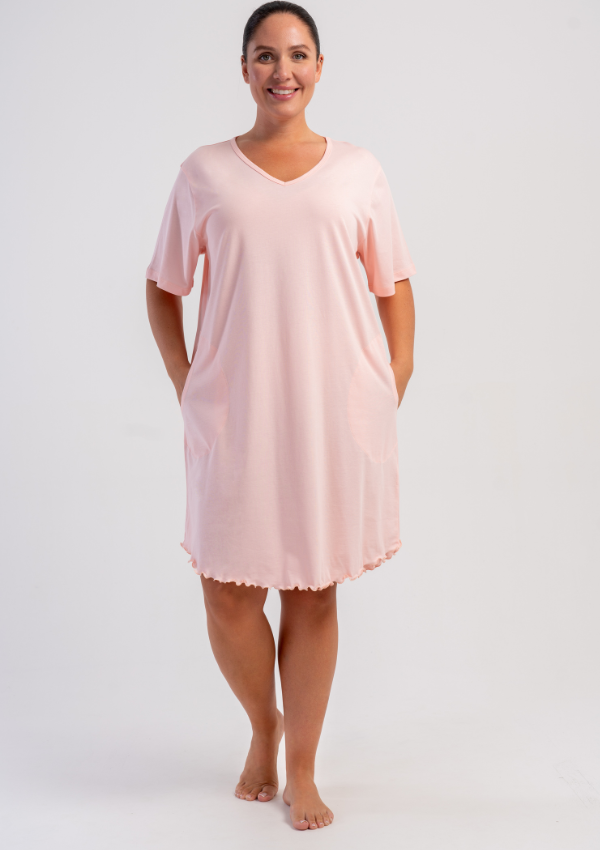 • Luźny krój z krótkim rękawem i dekoltem w kształcie litery V zapewnia swobodę ruchów i wygodę podczas snu