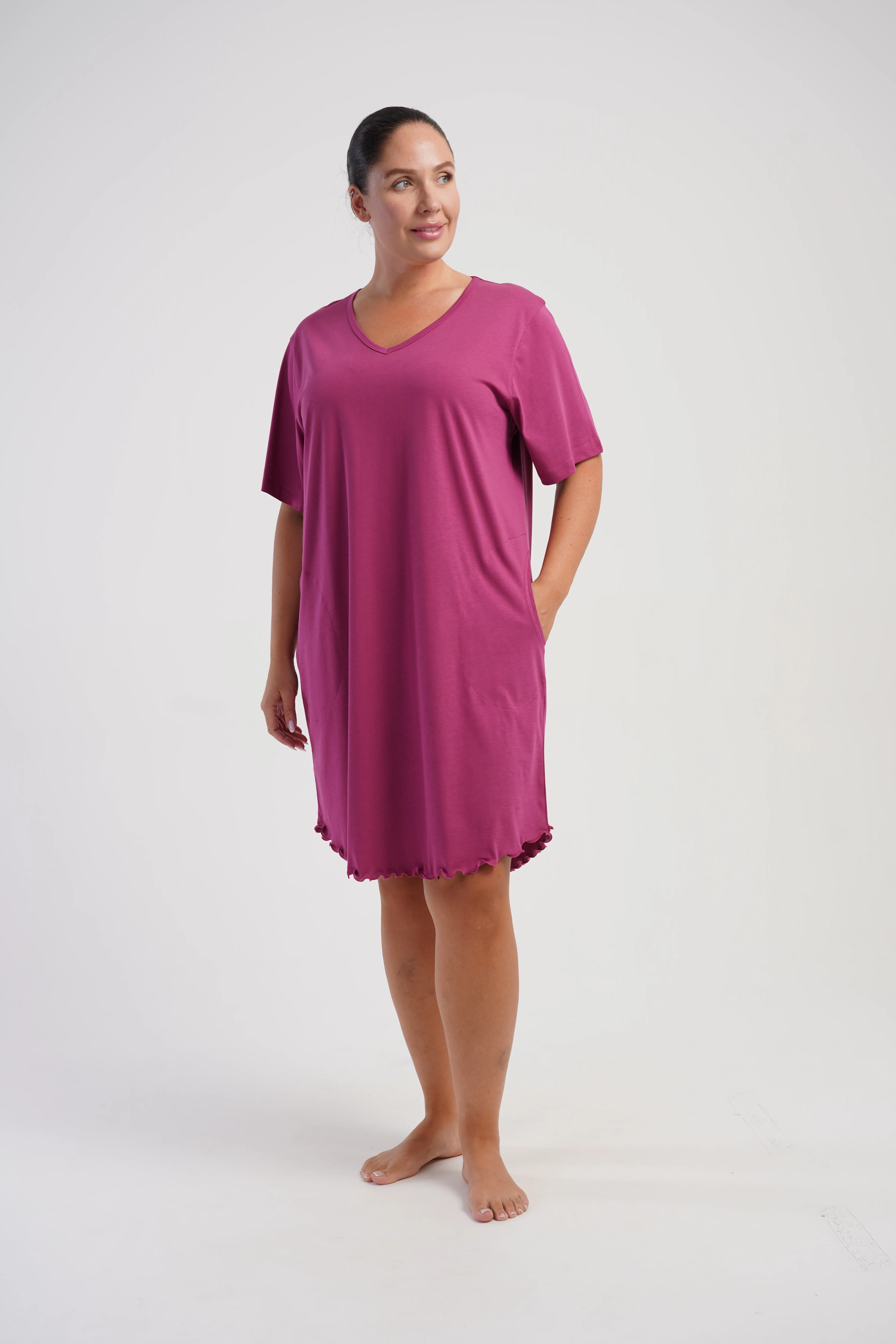 • Luźna, wygodna koszula nocna w większych rozmiarach, uszyta z naturalnej, miękkiej bawełny