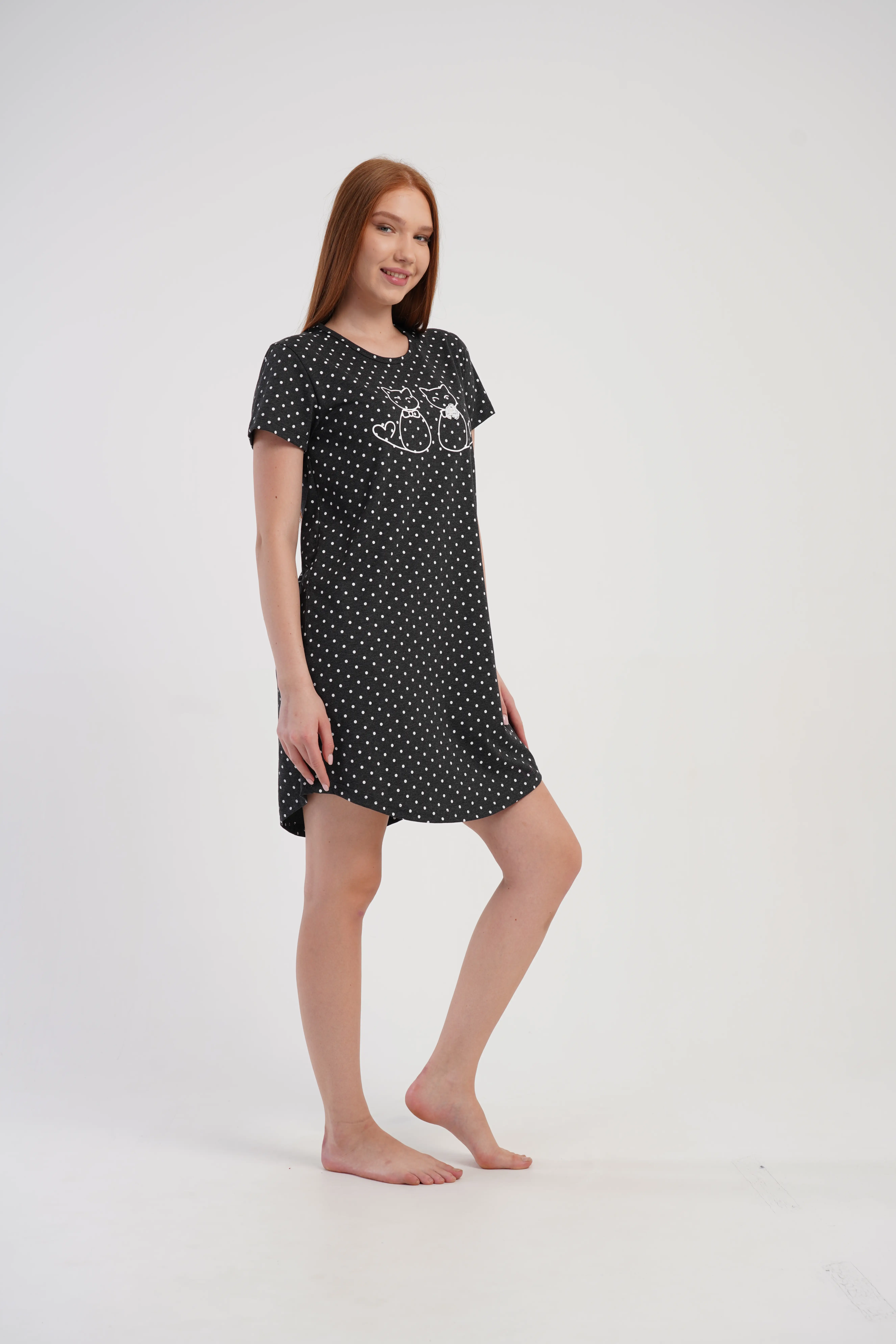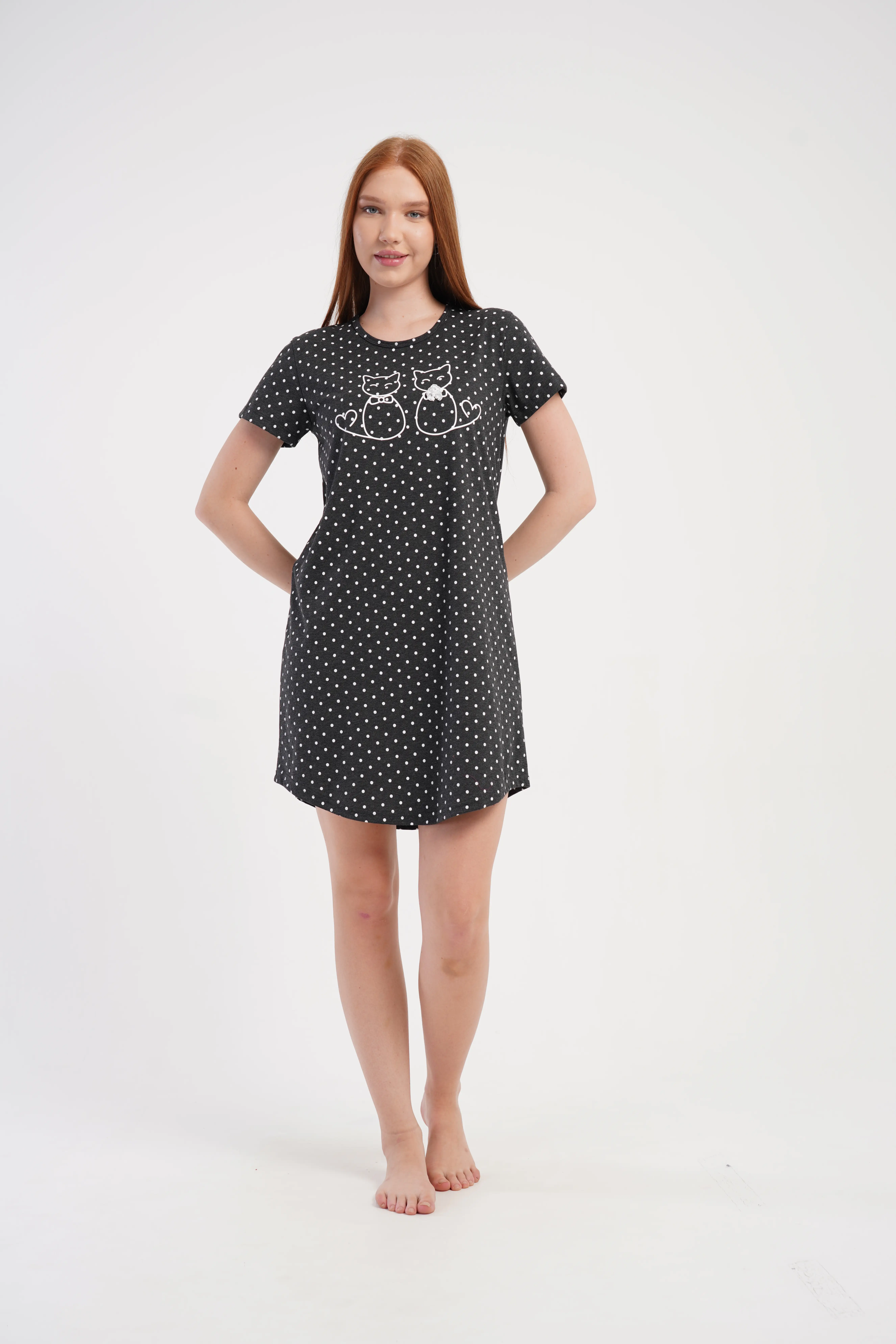 • Uroczy nadruk z kotkami na piersi dodaje dziewczęcego uroku