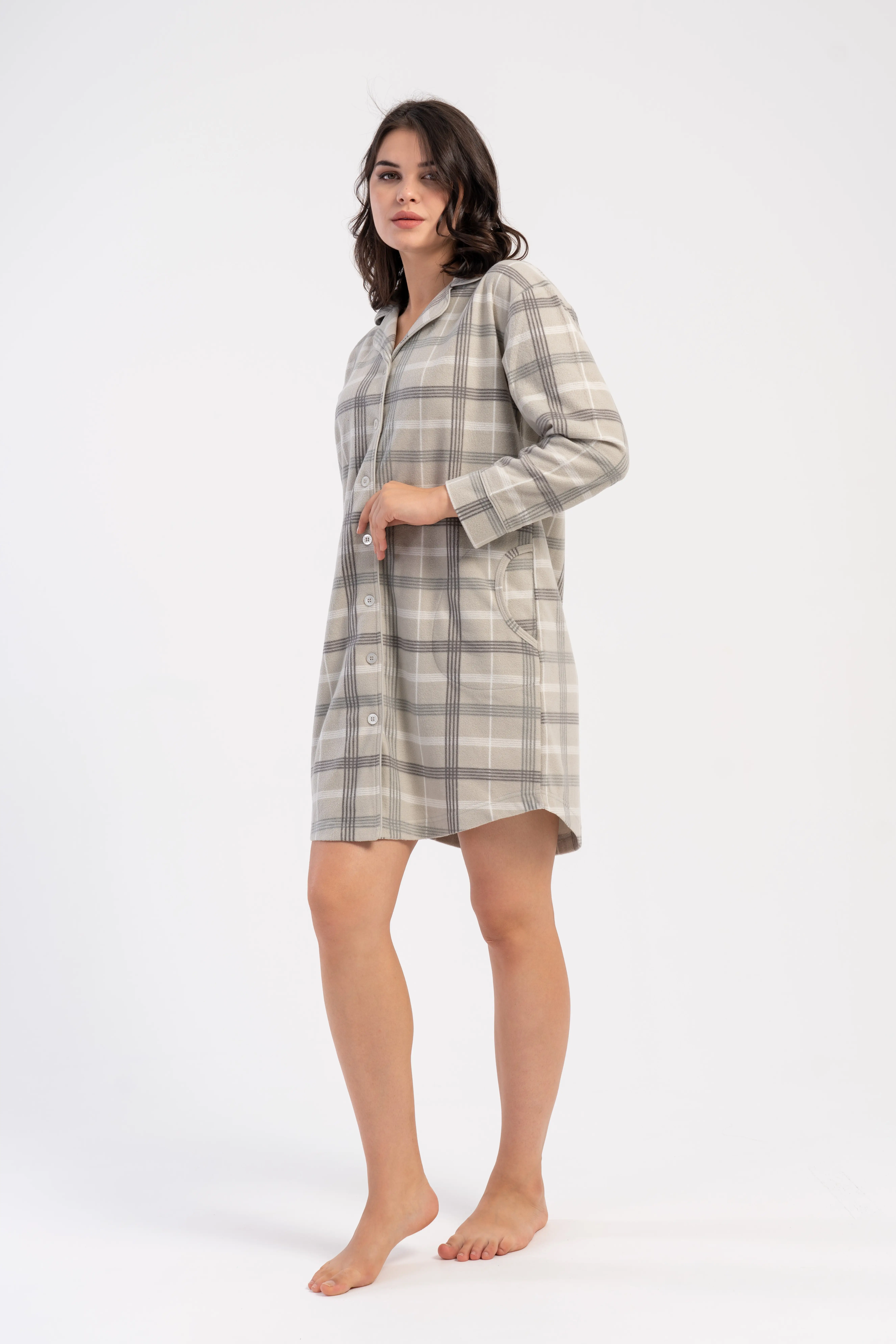 • Stonowany wzór w beżowo-szarą kratę – idealny na chłodne wieczory