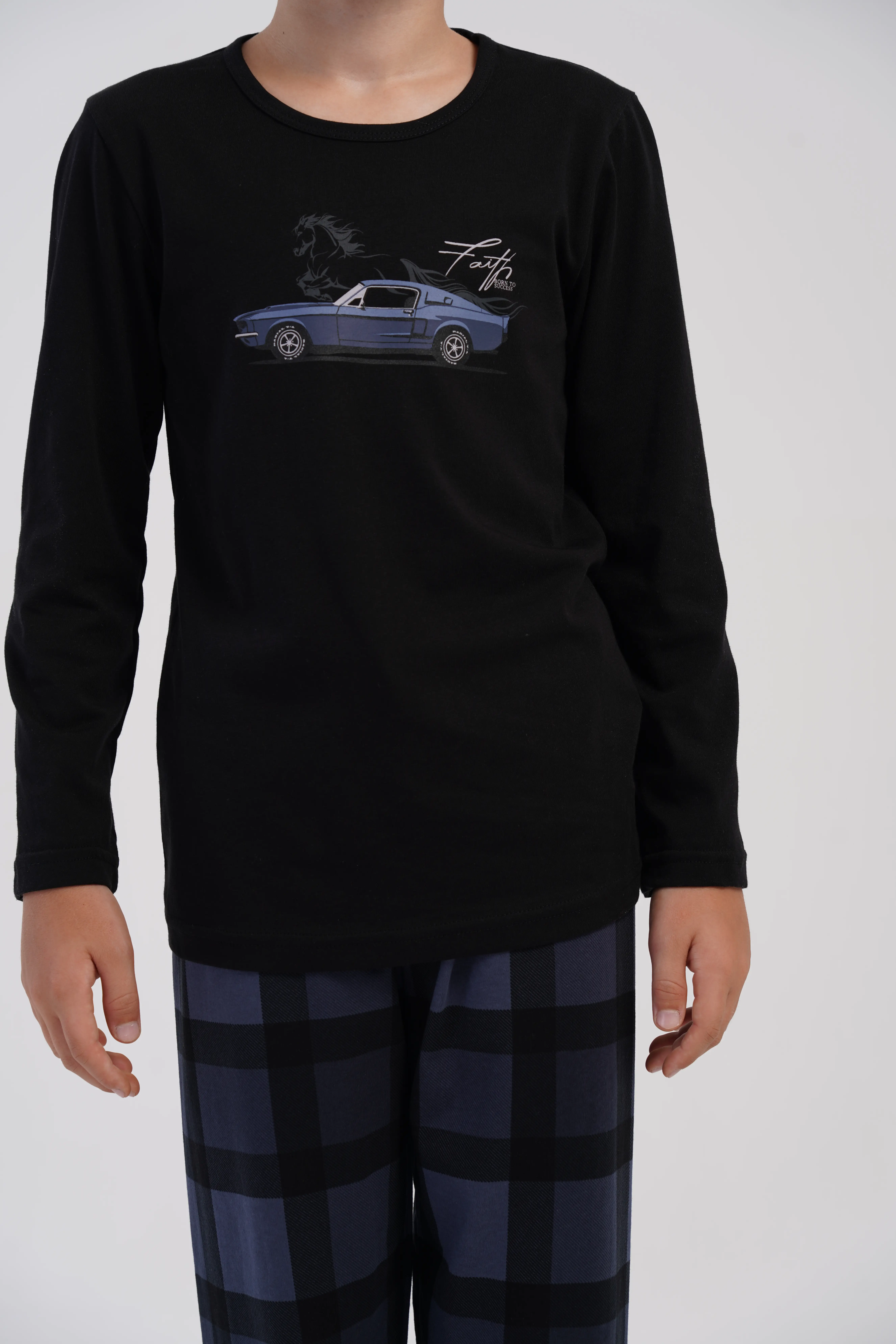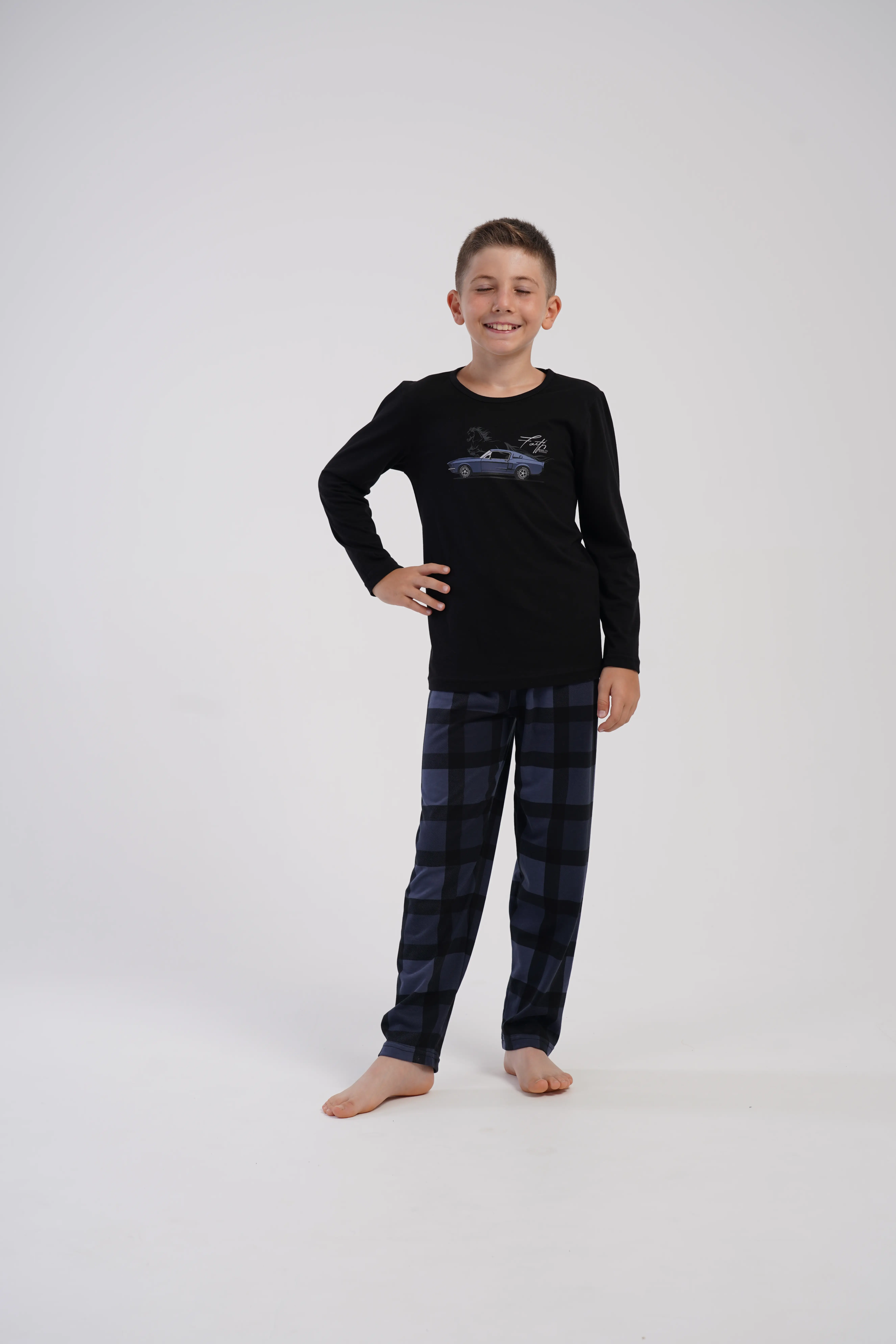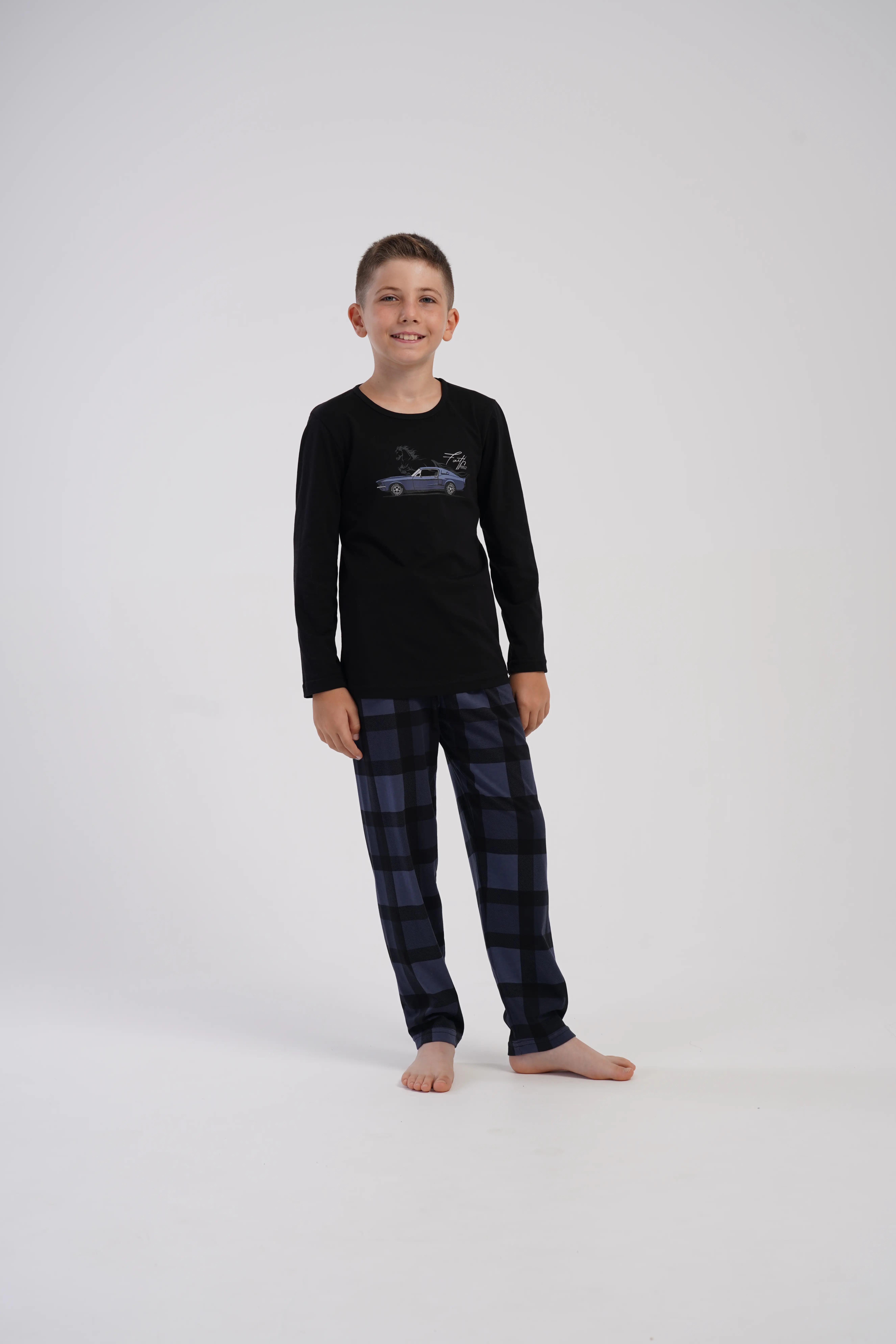 • Klasyczna piżama chłopięca składająca się z bluzki z długim rękawem i długich spodni