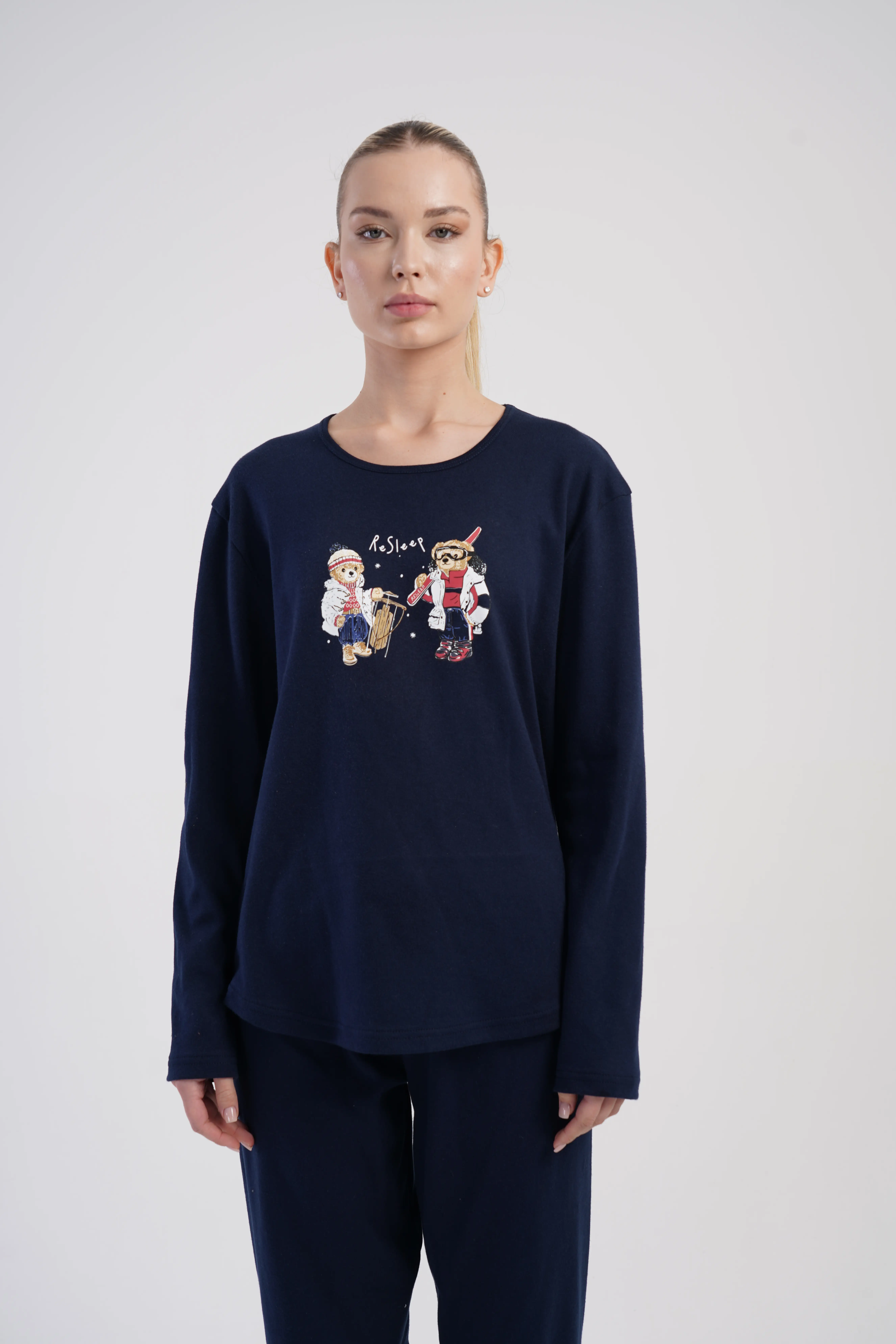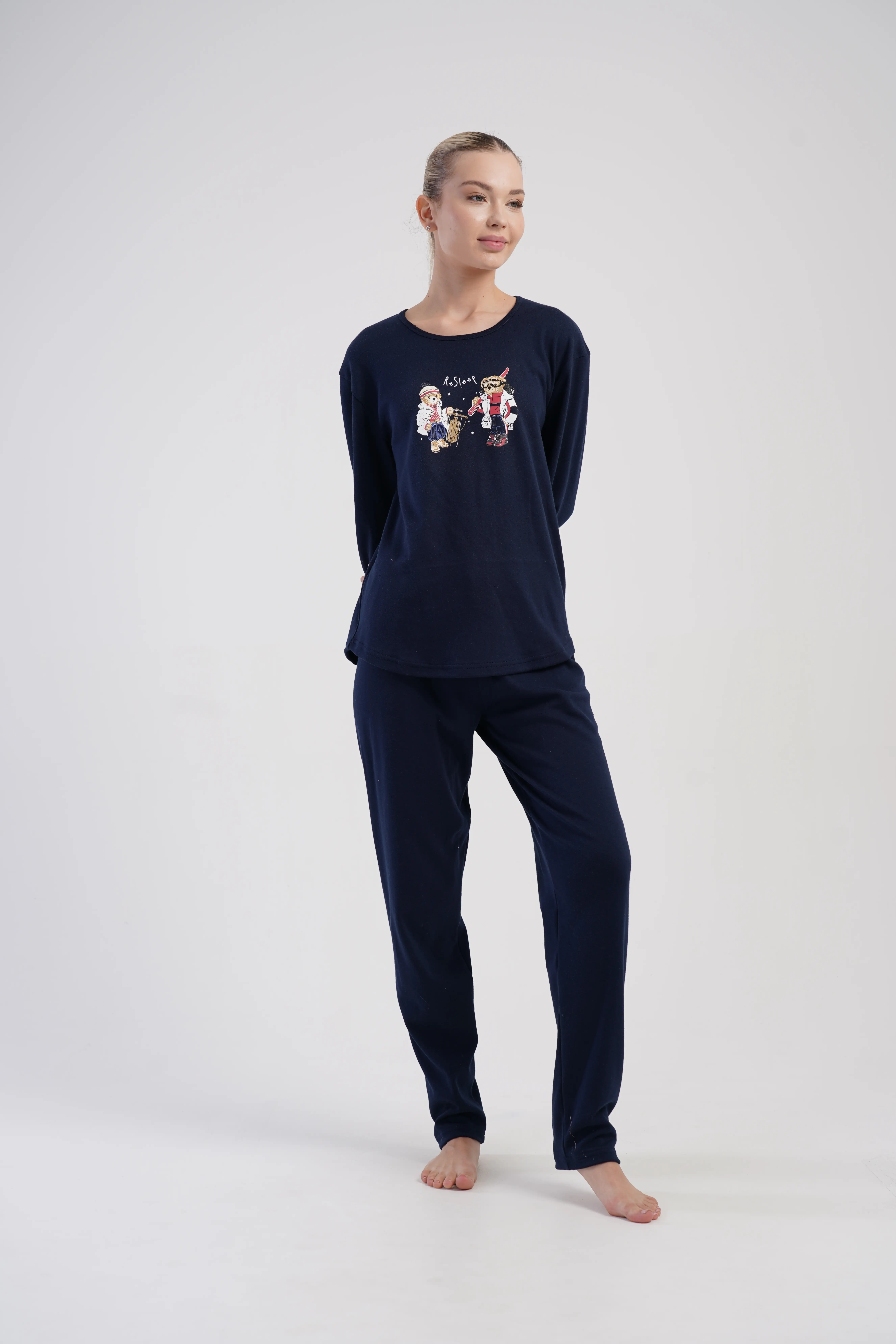 • Klasyczna piżama damska z długim rękawem i długimi spodniami, wykonana w 100% z miękkiej bawełny interlock