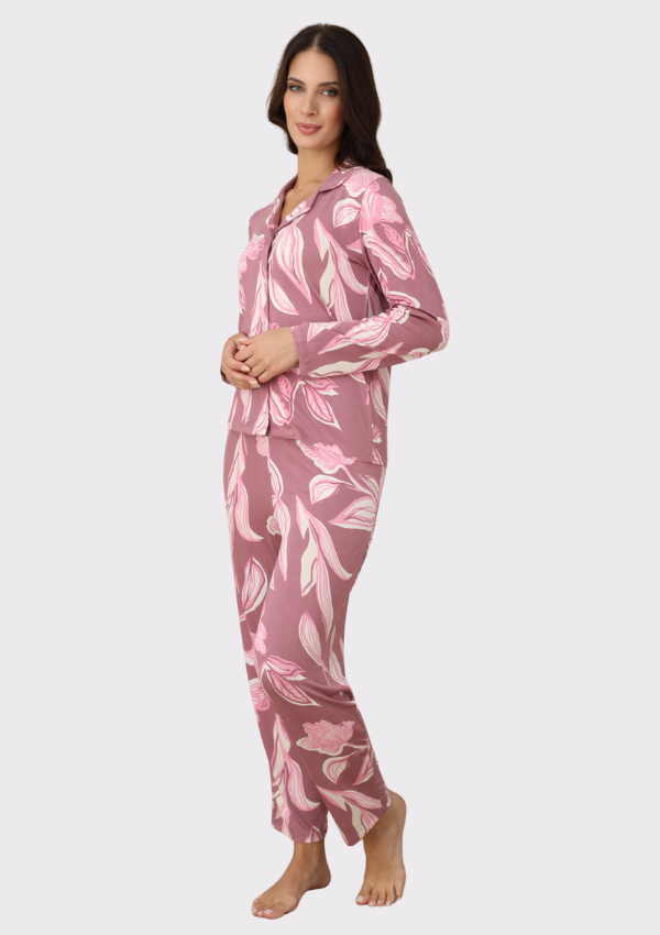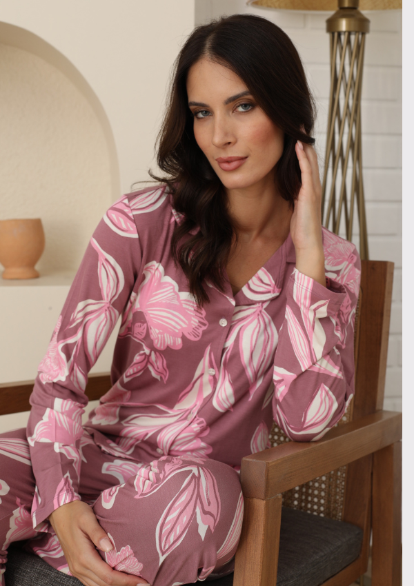 • Subtelny kwiatowy wzór w odcieniach różu i ecru nadaje piżamie kobiecy, stylowy wygląd