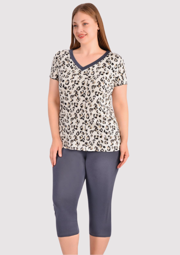 • Dwuczęściowa piżama damska: koszulka z krótkim rękawem + spodnie 3/4 (capri)