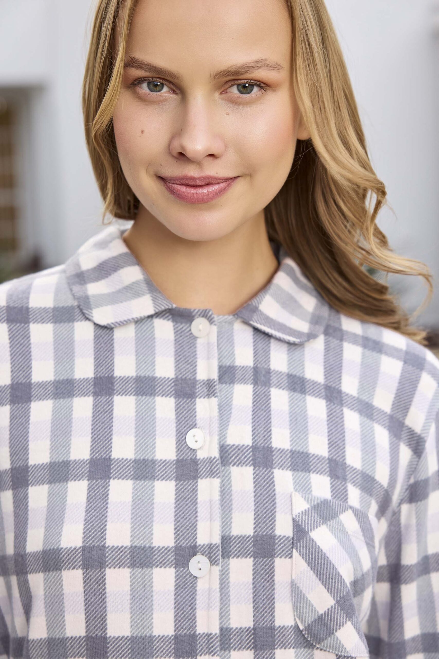 • Klasyczna, dwuczęściowa piżama damska z długim rękawem i długimi spodniami