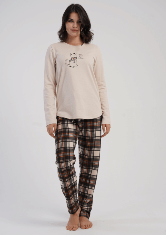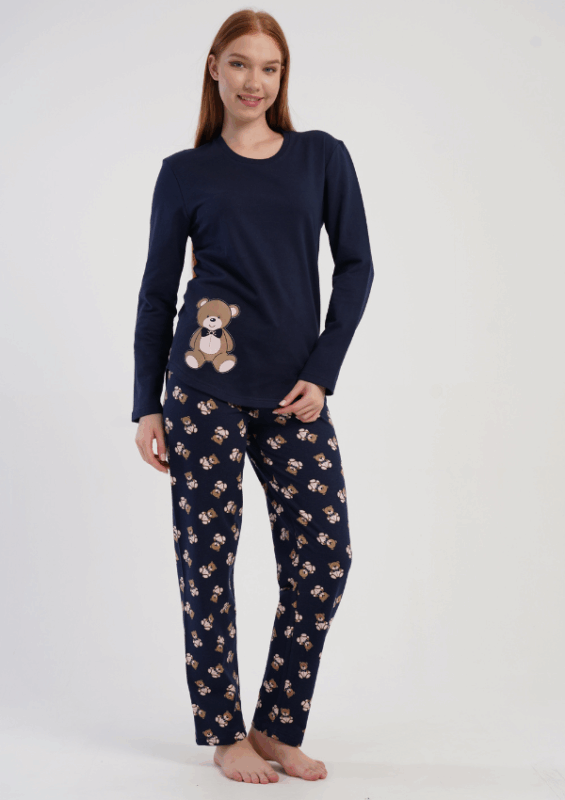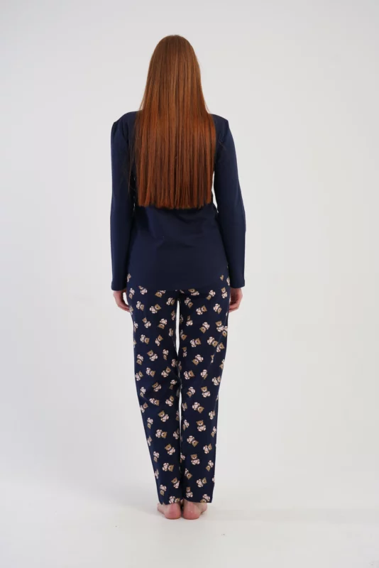 Piżama damska bawełniana, z długim rękawem i długimi spodniami.