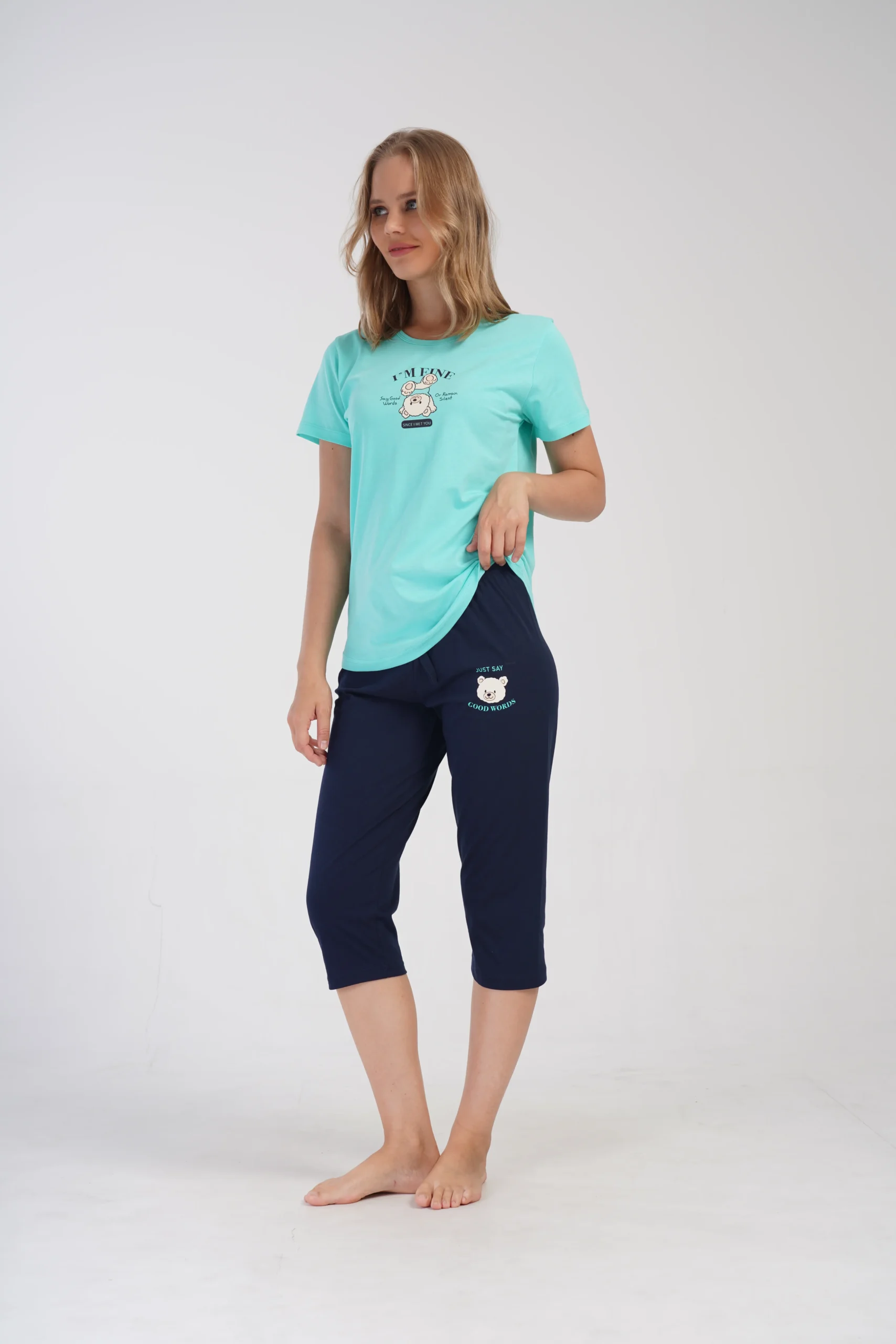 • Piżama damska z koszulką z krótkim rękawem oraz spodniami o długości 3/4