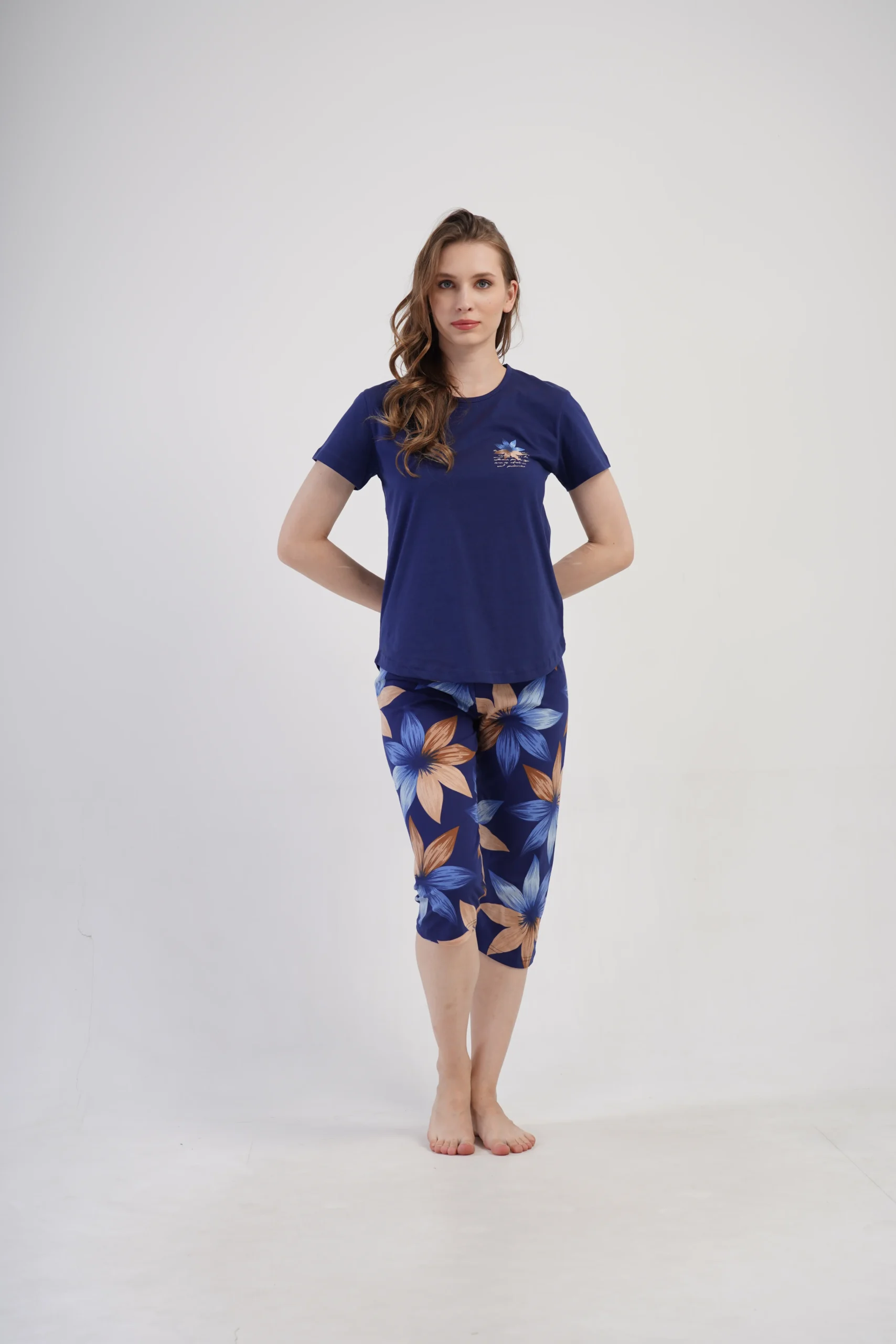 • Piżama damska składająca się z koszulki z krótkim rękawem oraz spodni 3/4