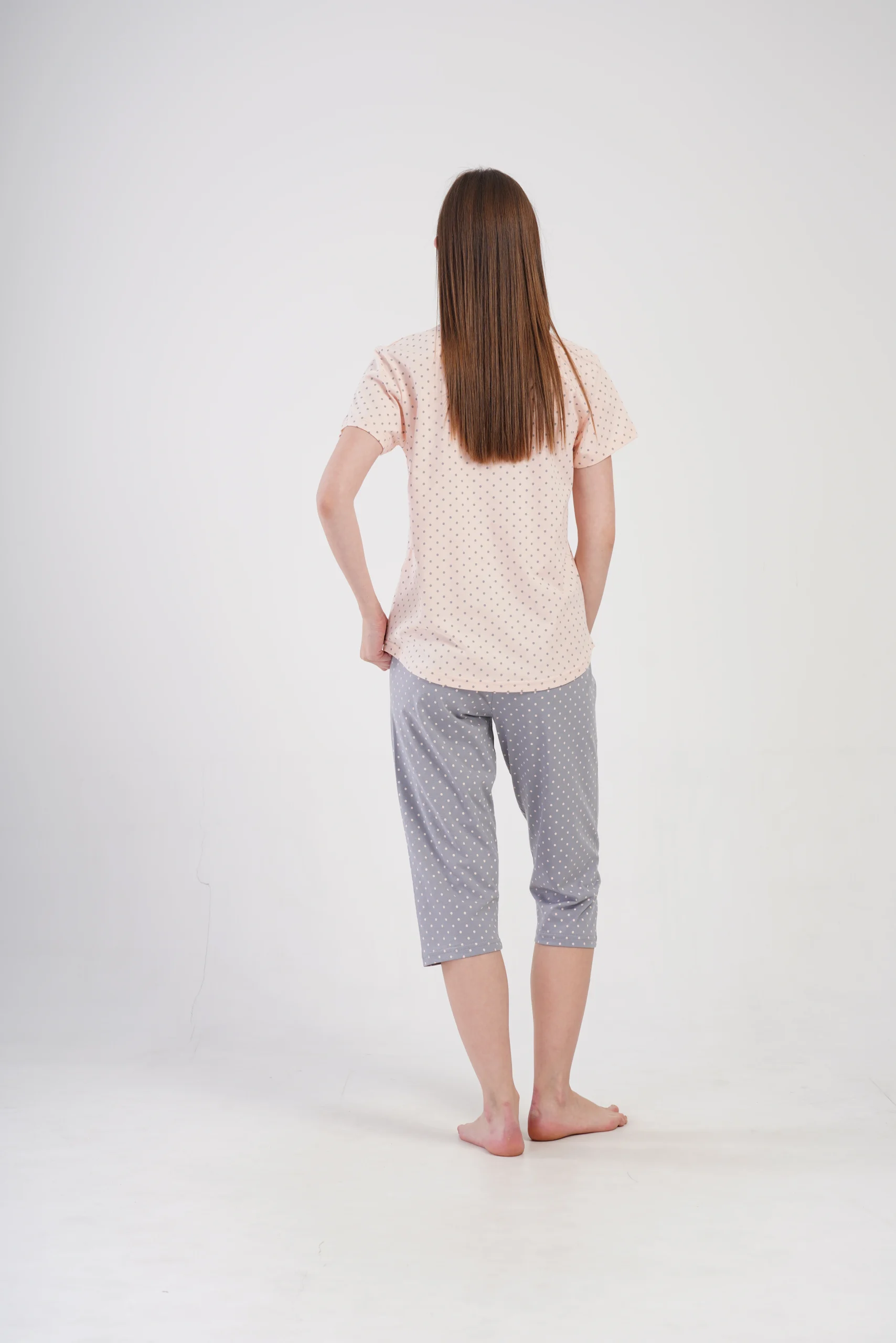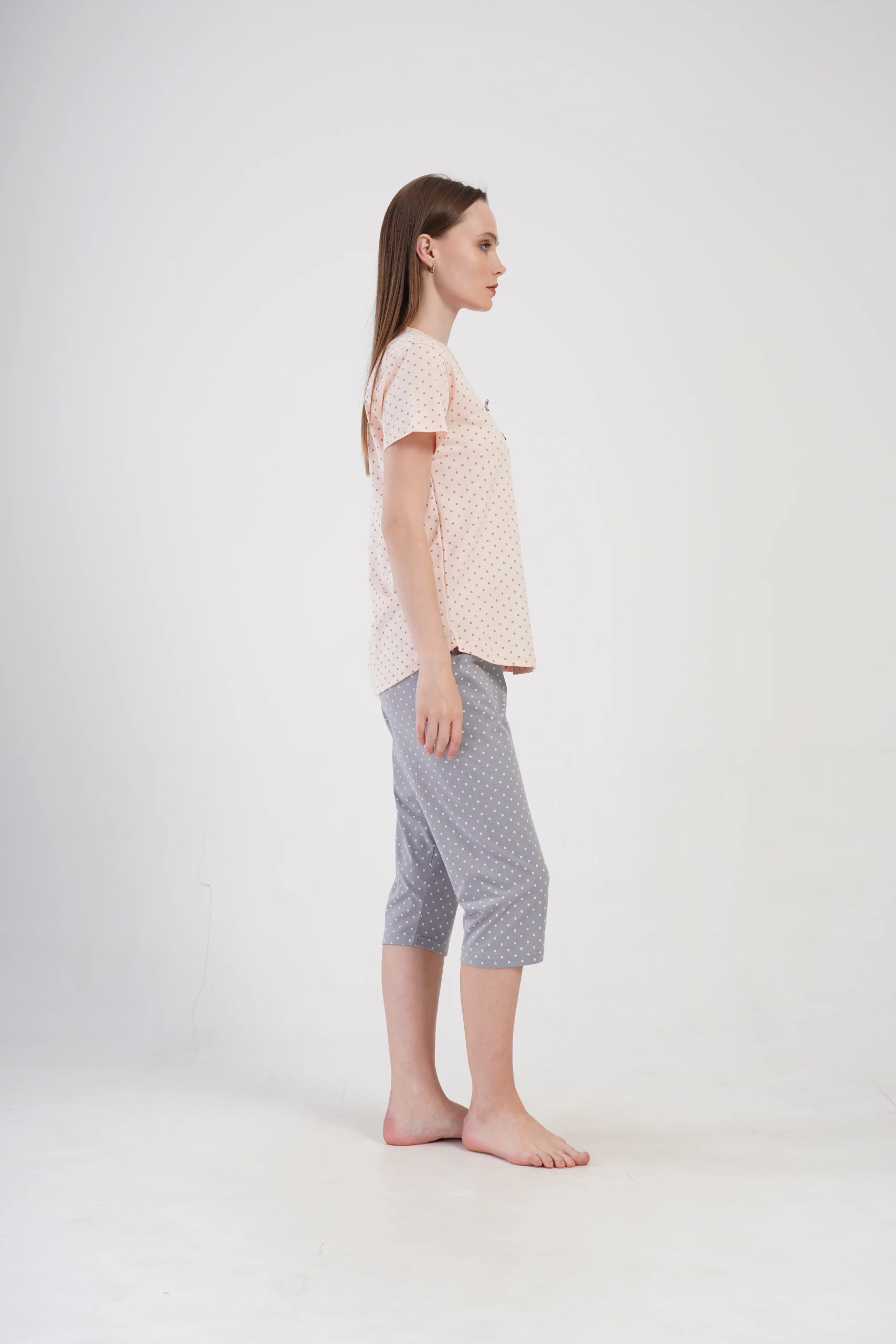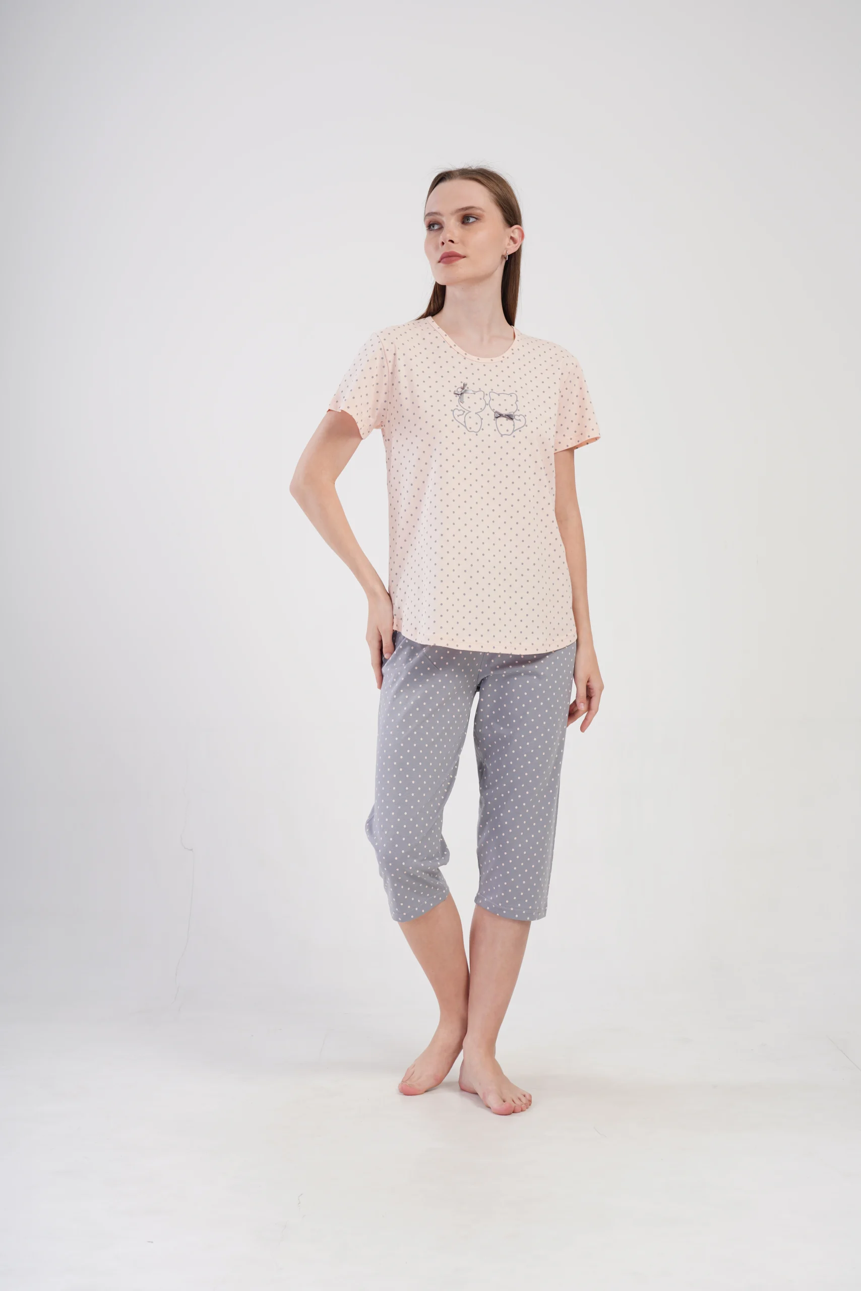 • Wygodny komplet do spania z krótkim rękawem i spodniami 3/4