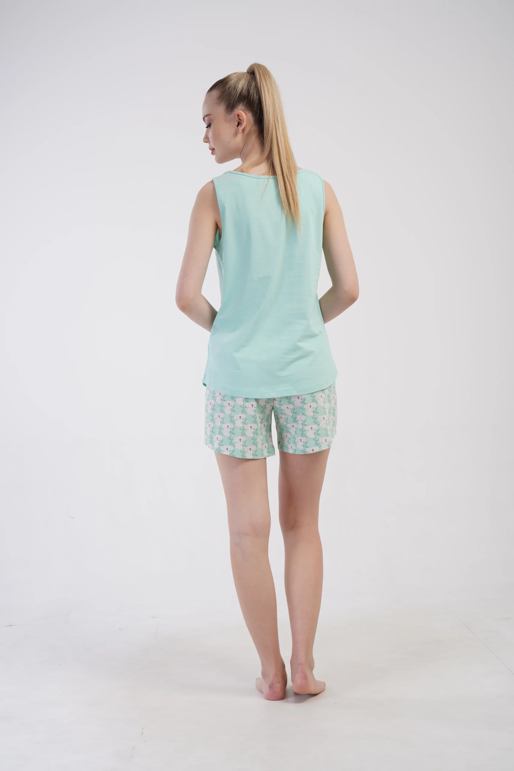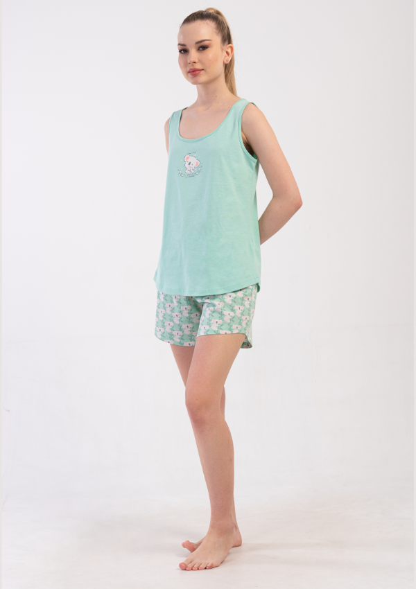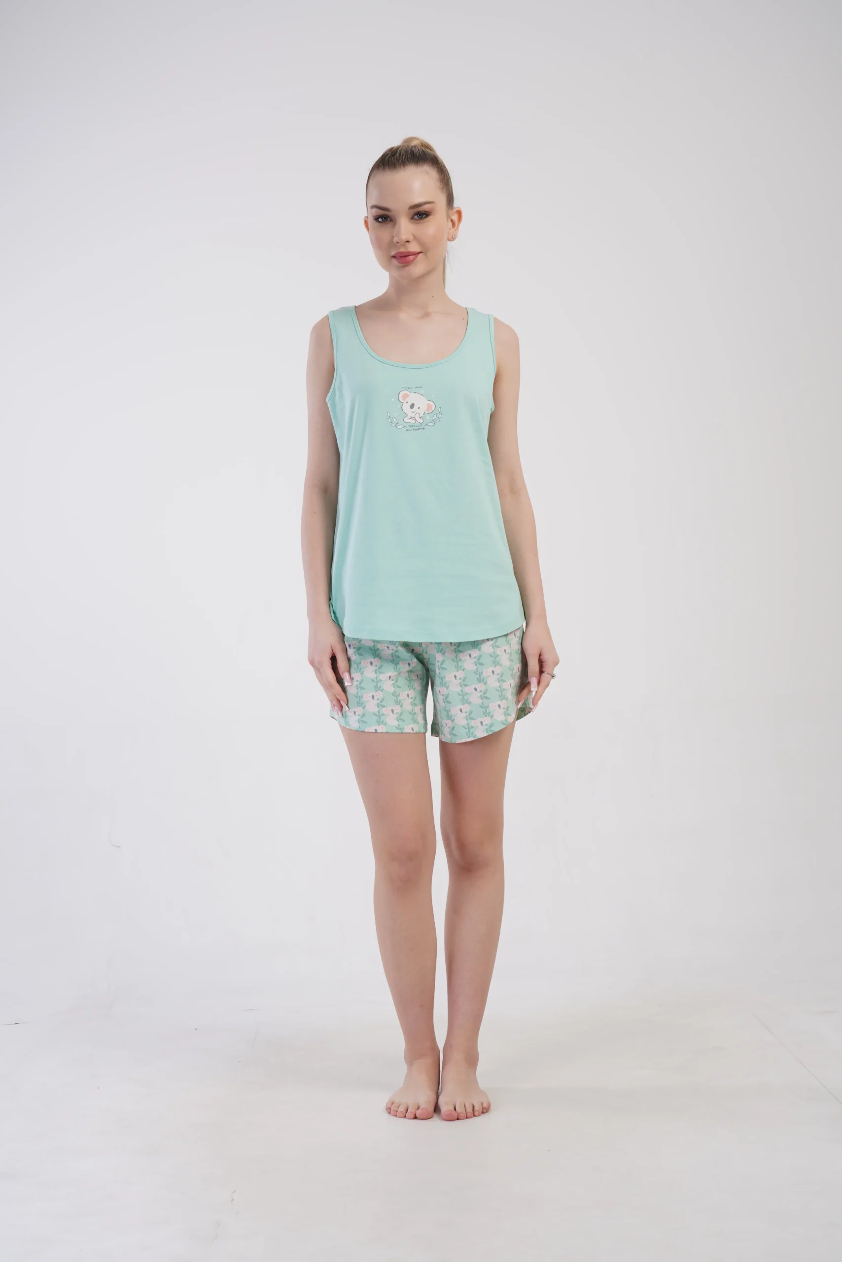 • Dwuczęściowa piżama damska: top na szerokich ramiączkach + szorty