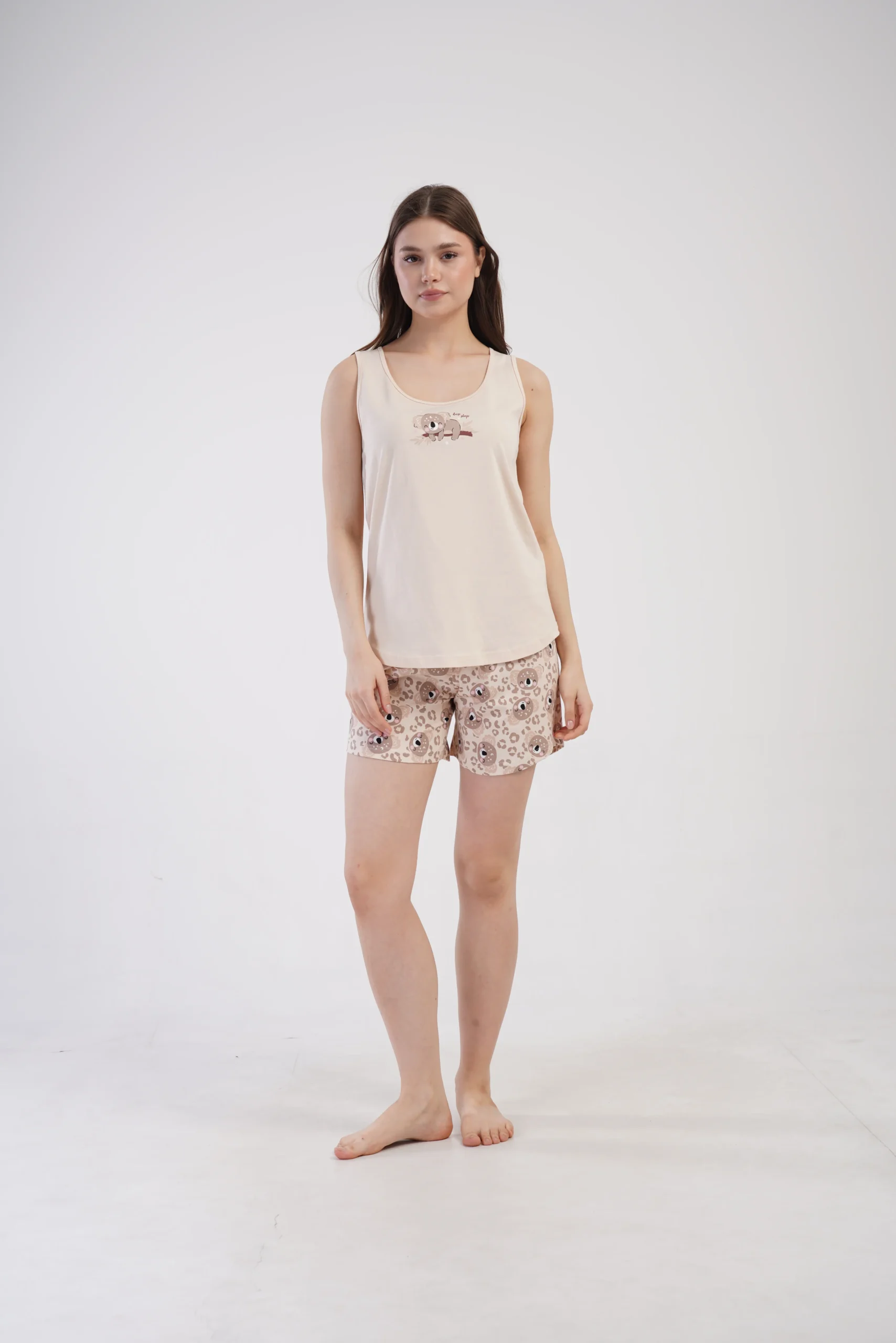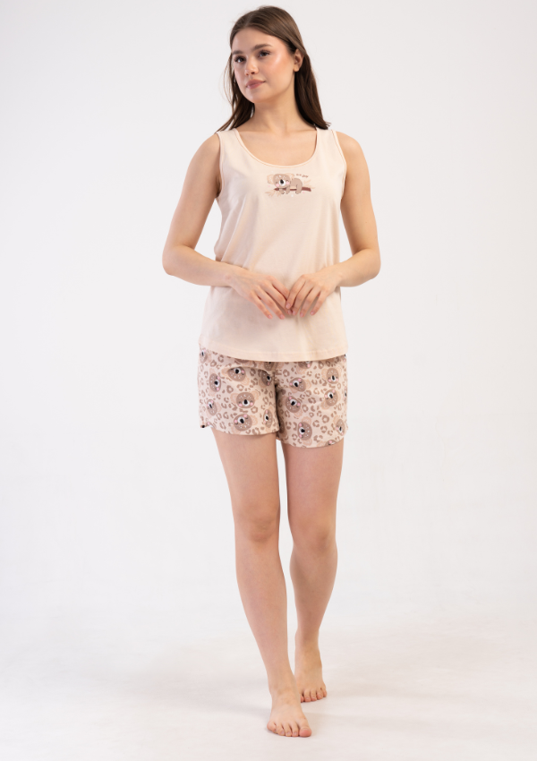 • Dwuczęściowa piżama damska: top na szerokich ramiączkach + szorty