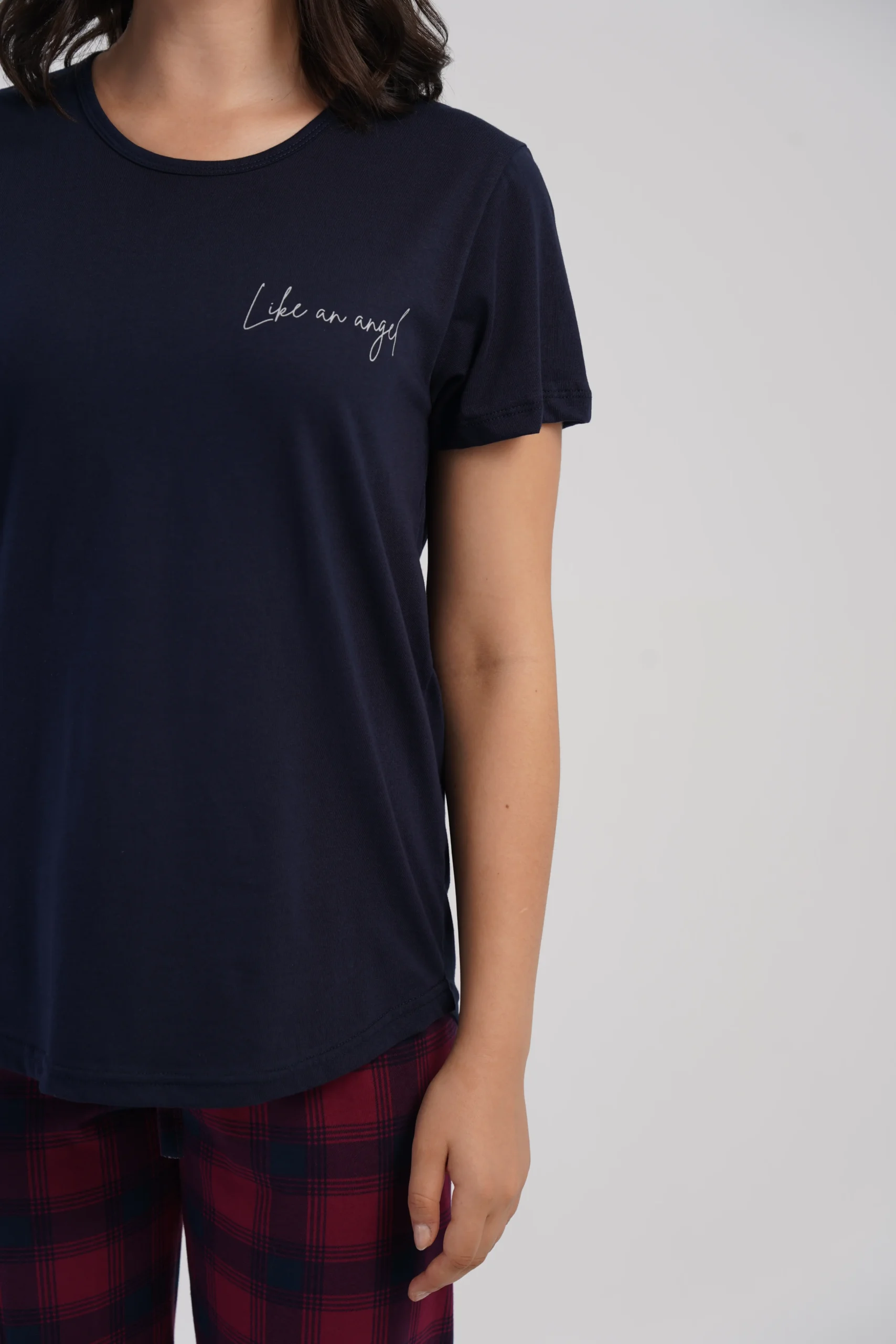 • Dwuczęściowa piżama damska: koszulka + długie spodnie