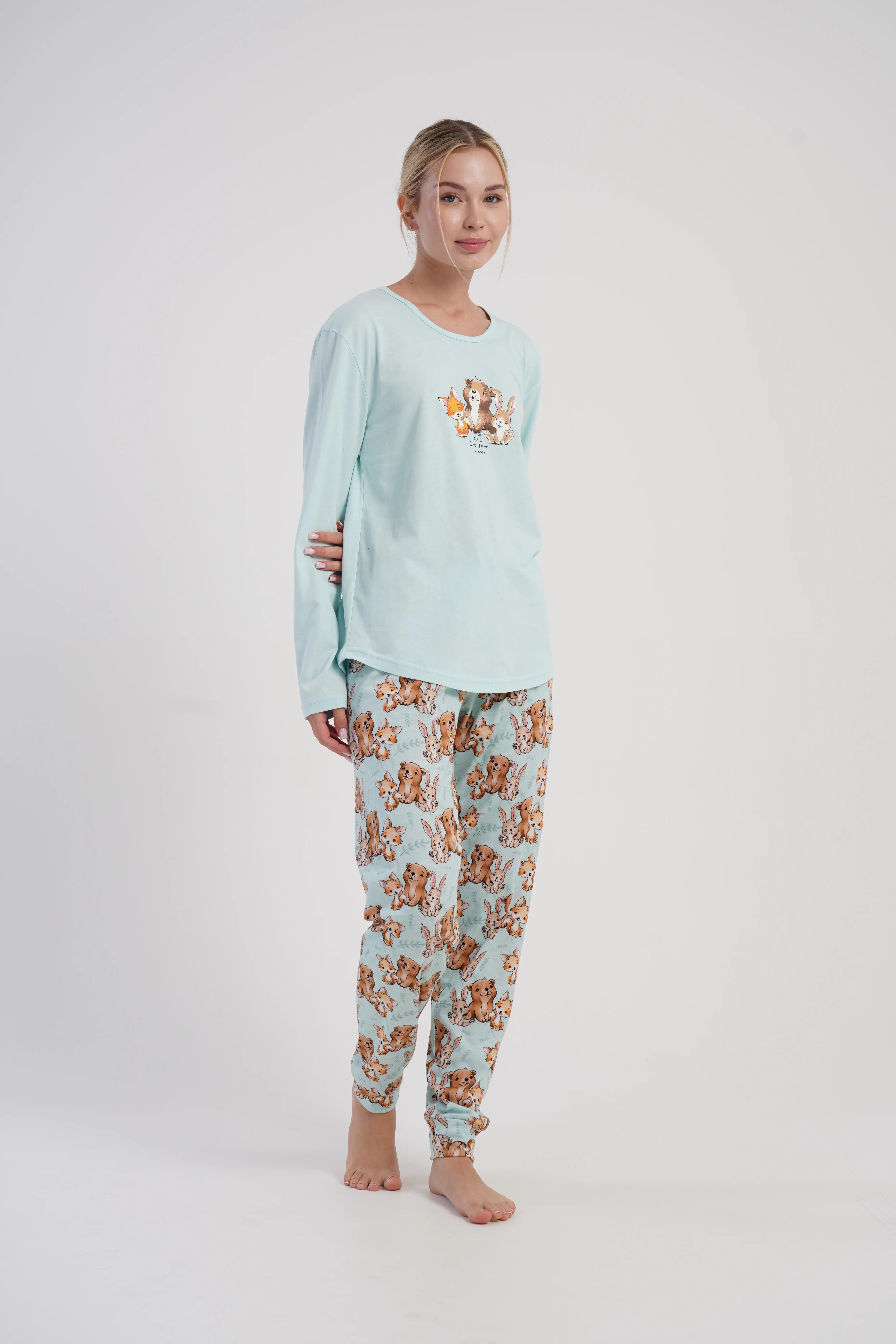• Dwuczęściowa piżama damska wykonana w 100% z naturalnej, miękkiej bawełny zapewniającej komfort noszenia
