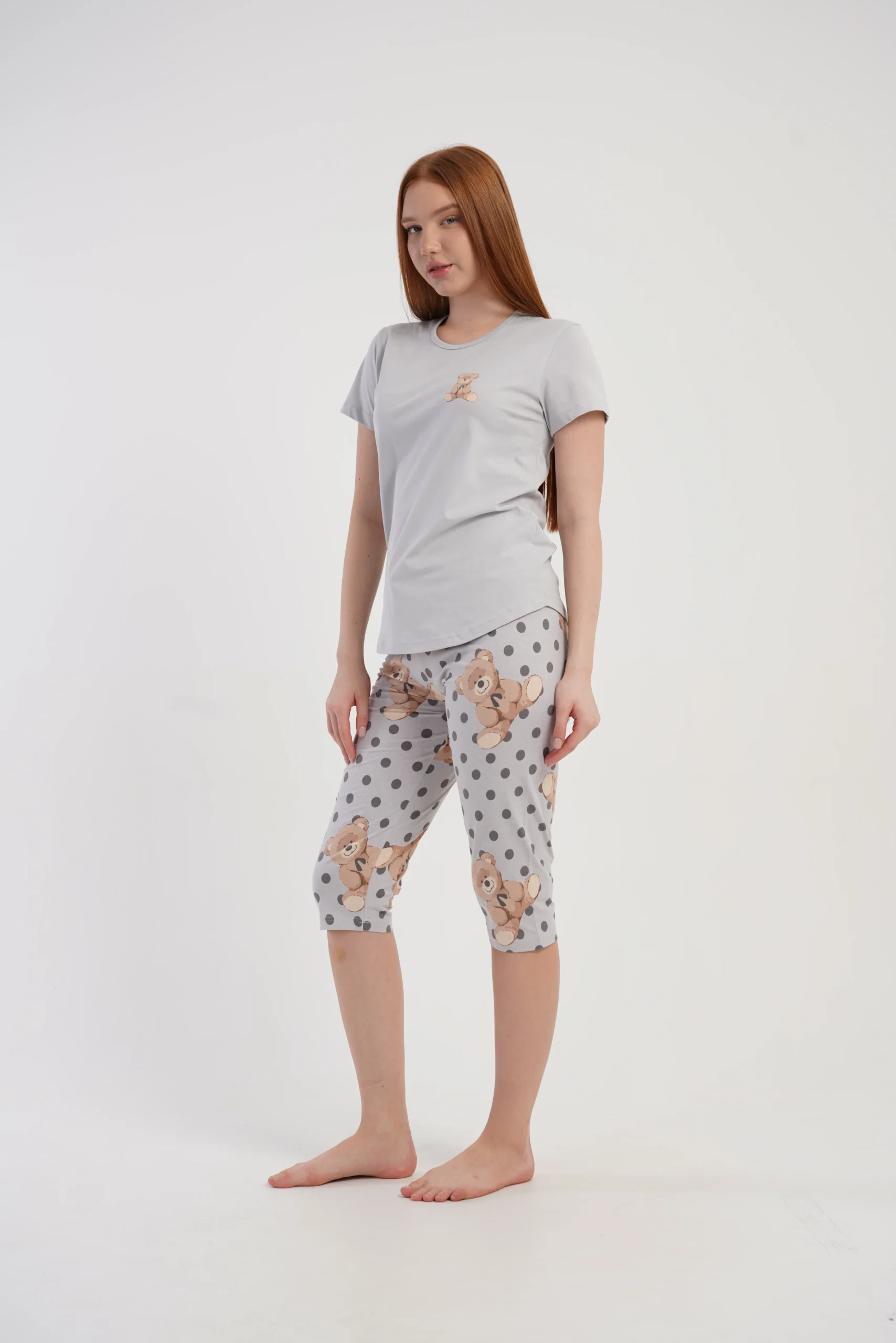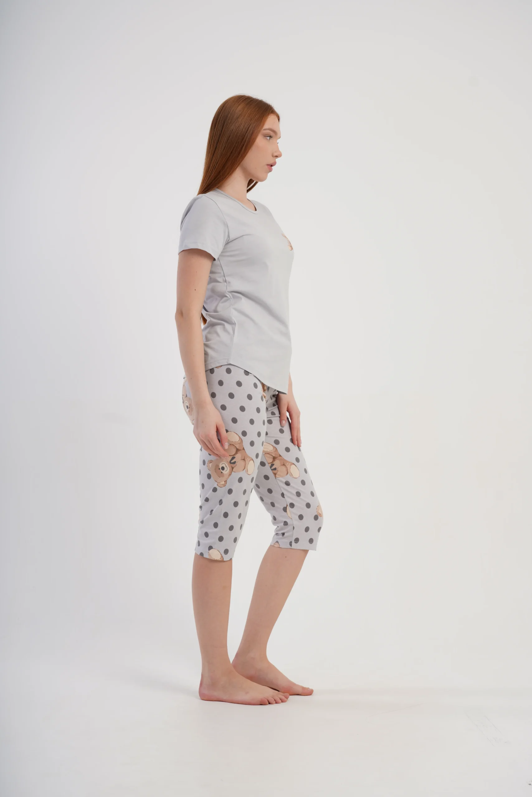 • Wygodna, letnia piżama damska z krótkim rękawem i spodniami 3/4