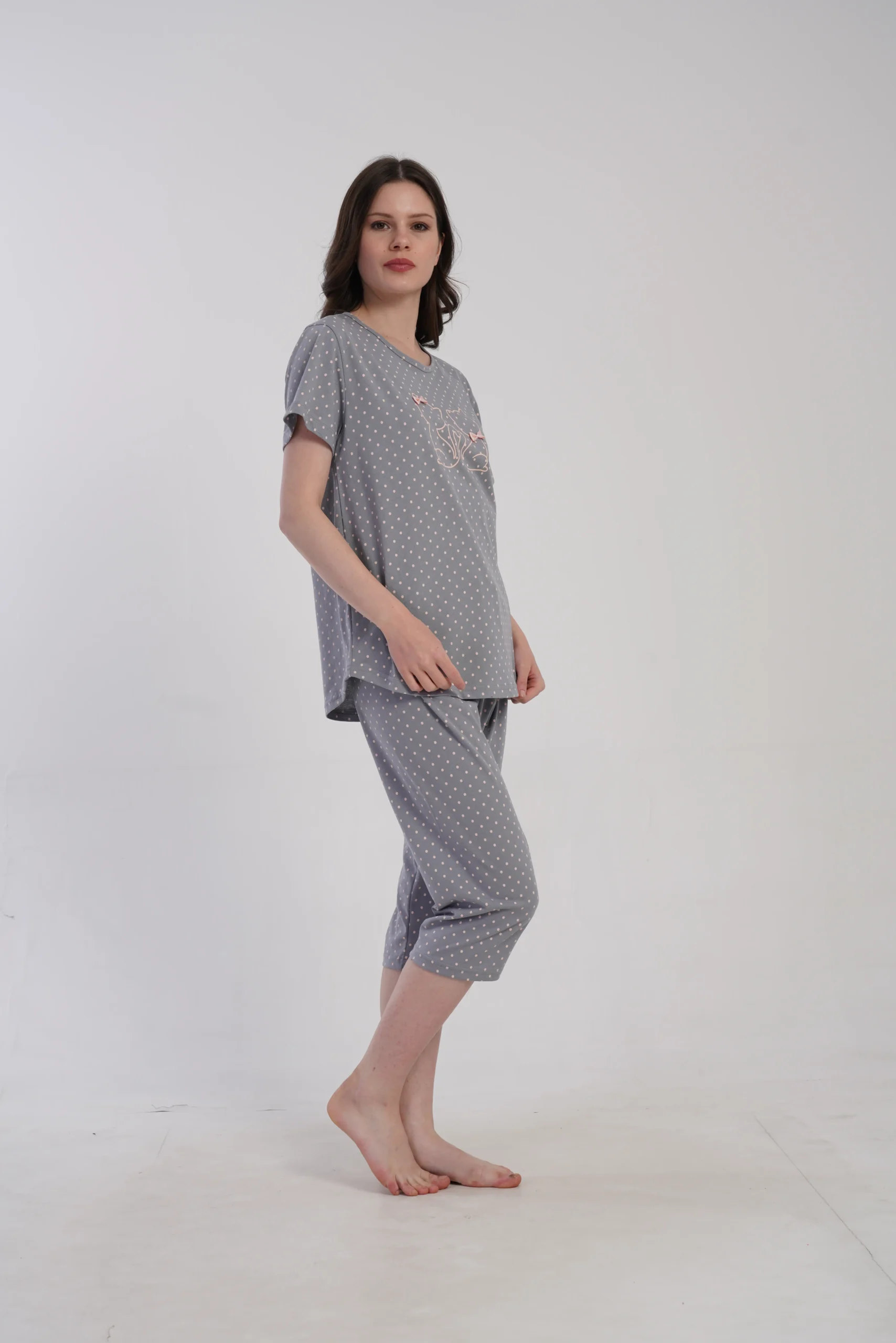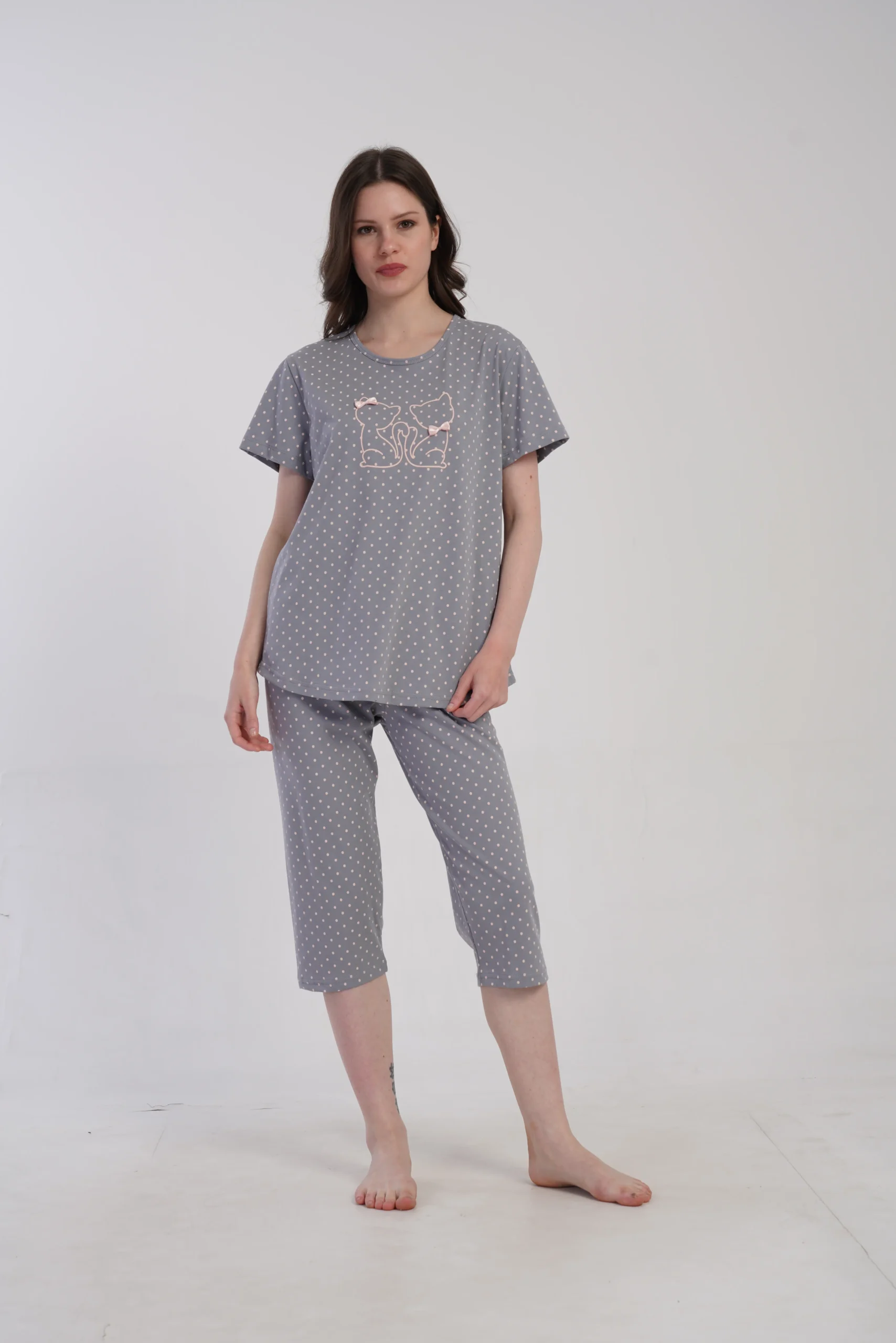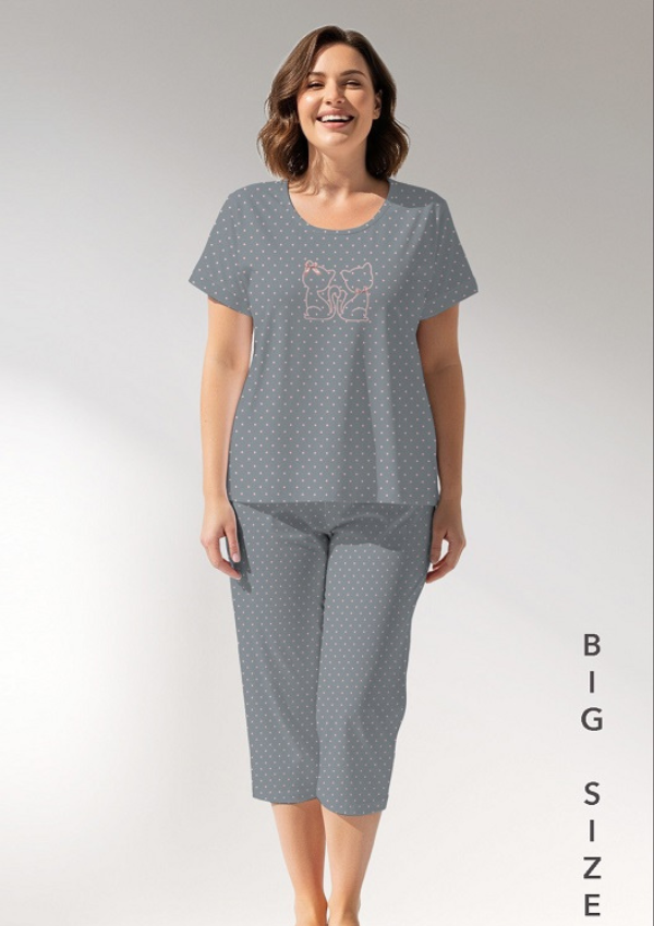 • Komfortowa piżama damska z krótkim rękawem i spodniami 3/4 z linii Big Size