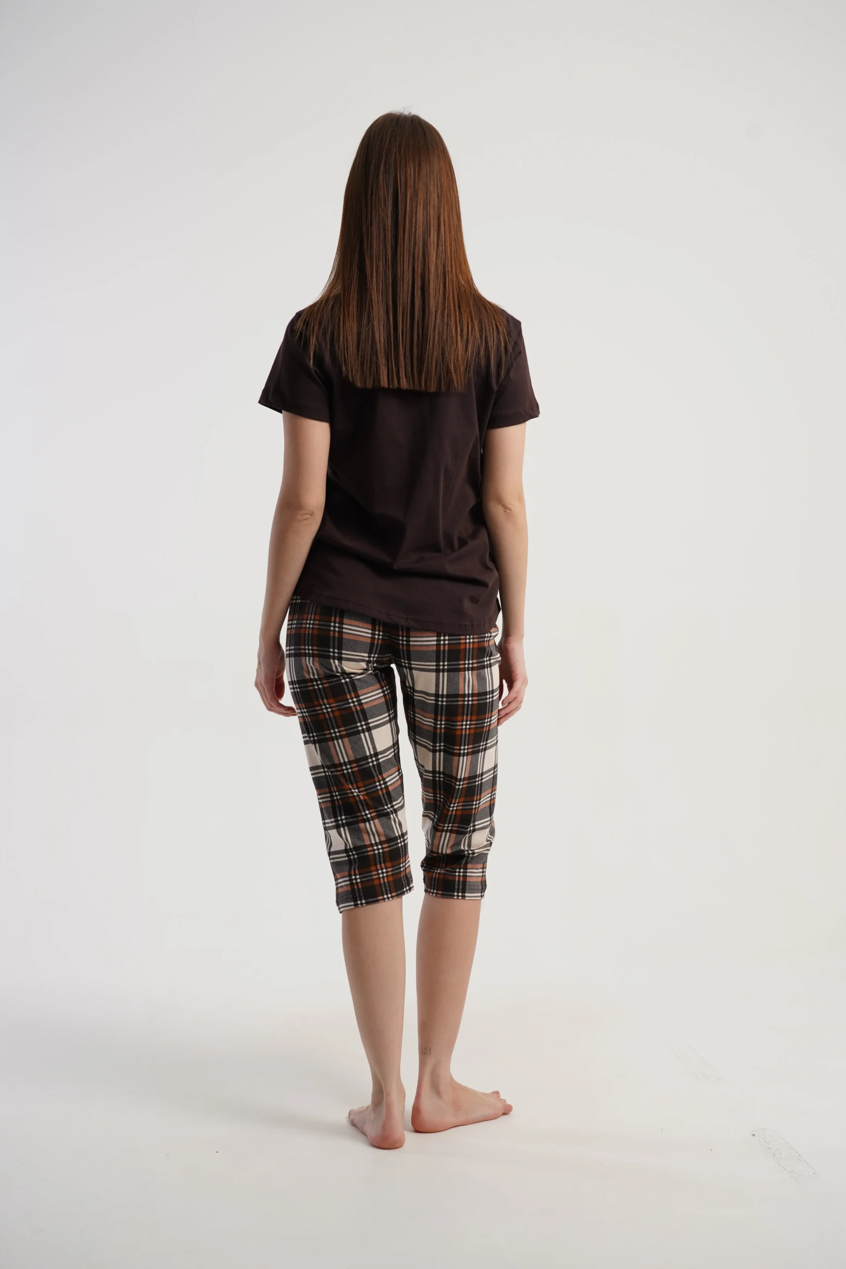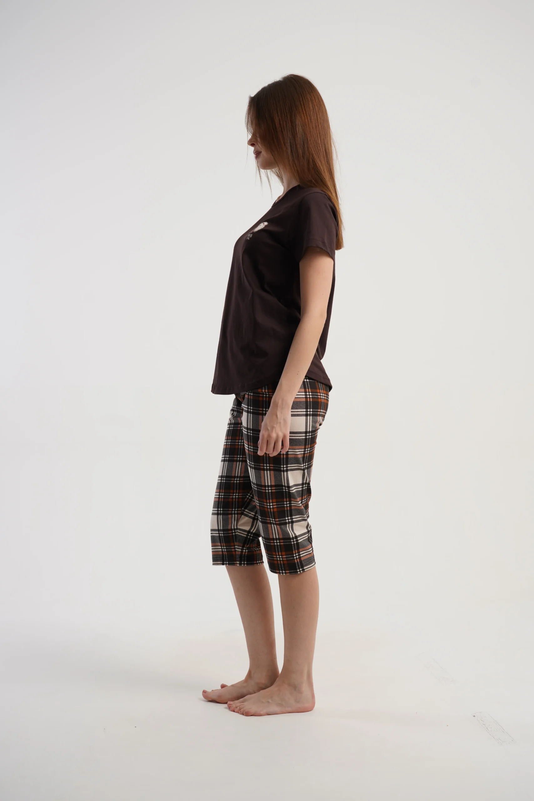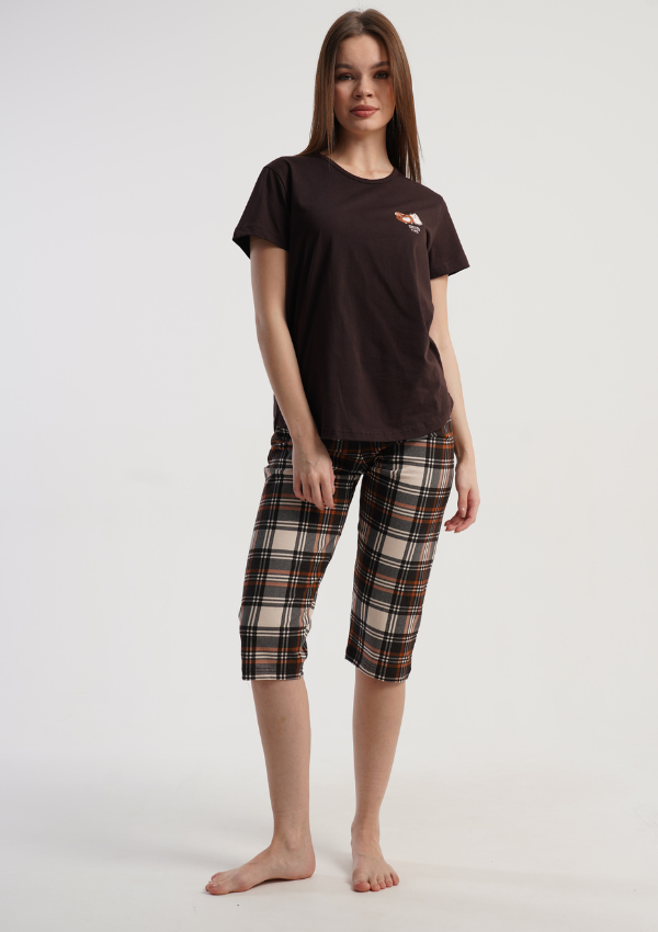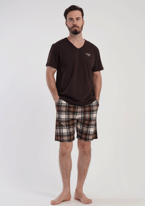 • Subtelny nadruk na piersi koszulki oraz modny wzór w kratę na spodniach nadają zestawowi stylowy, casualowy charakter