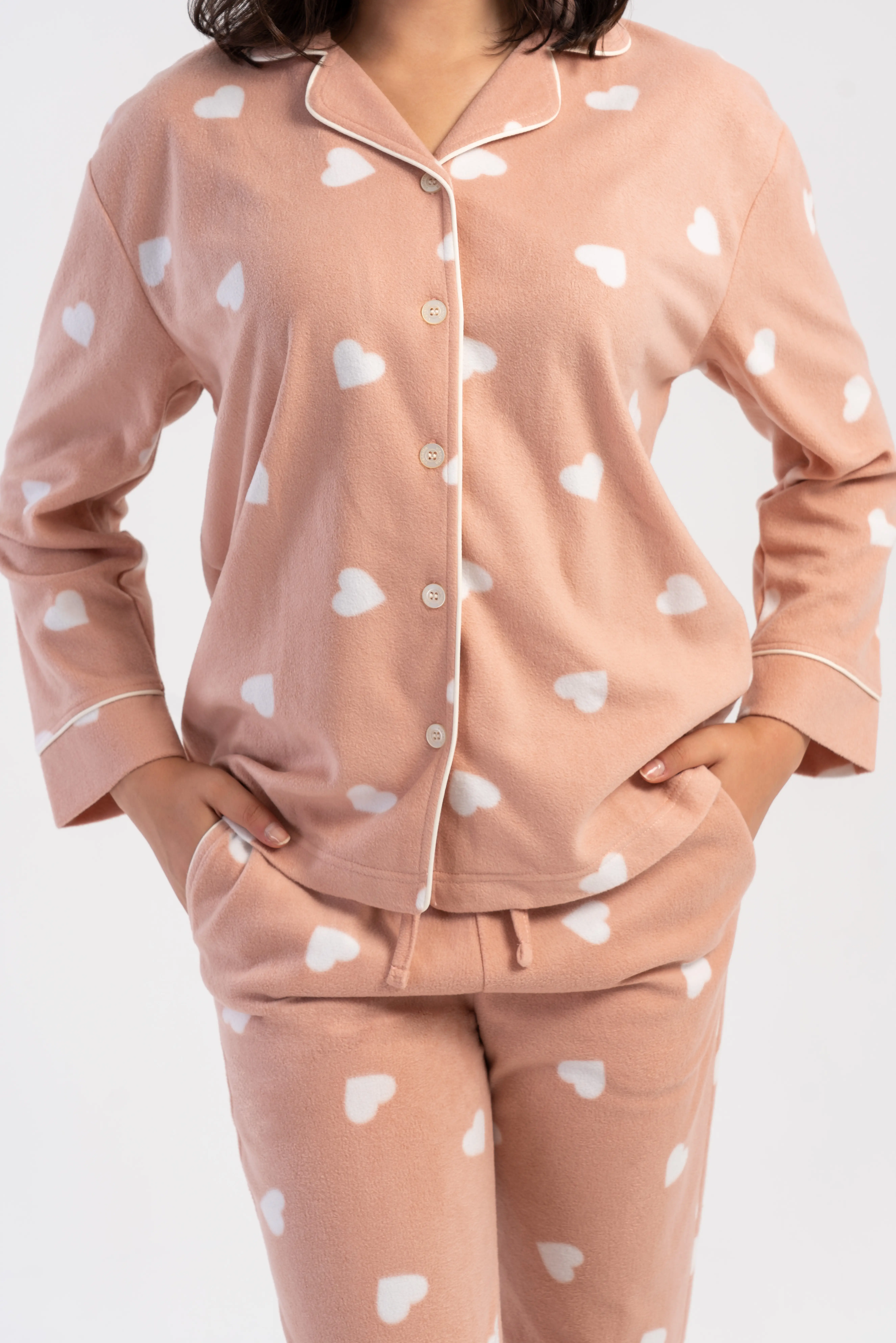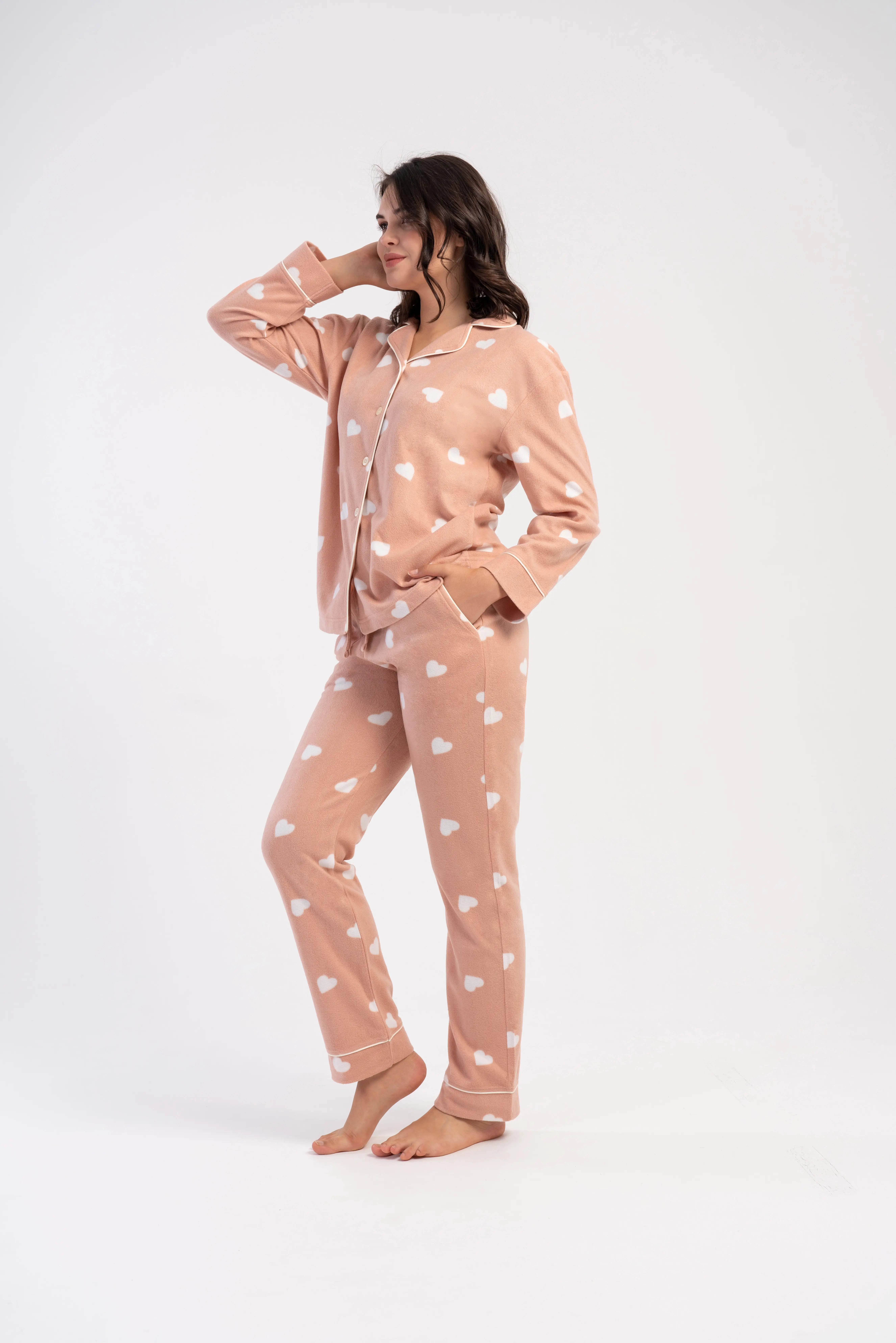 • Dwuczęściowa, ciepła piżama damska wykonana z przyjemnego w dotyku polaru