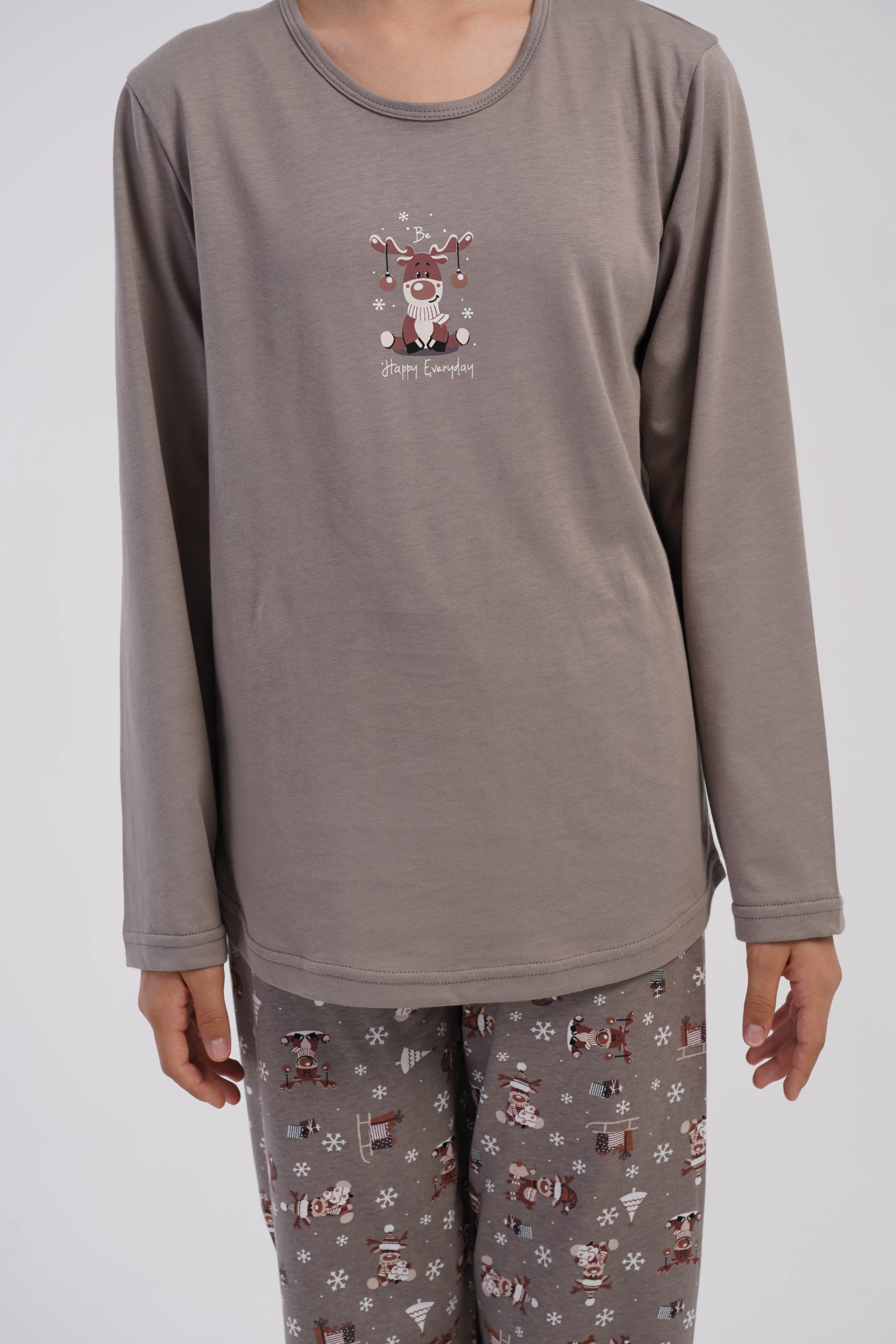 • Spodnie w szarym kolorze ozdobione zimowo-świątecznym wzorem (renifery, śnieżynki)