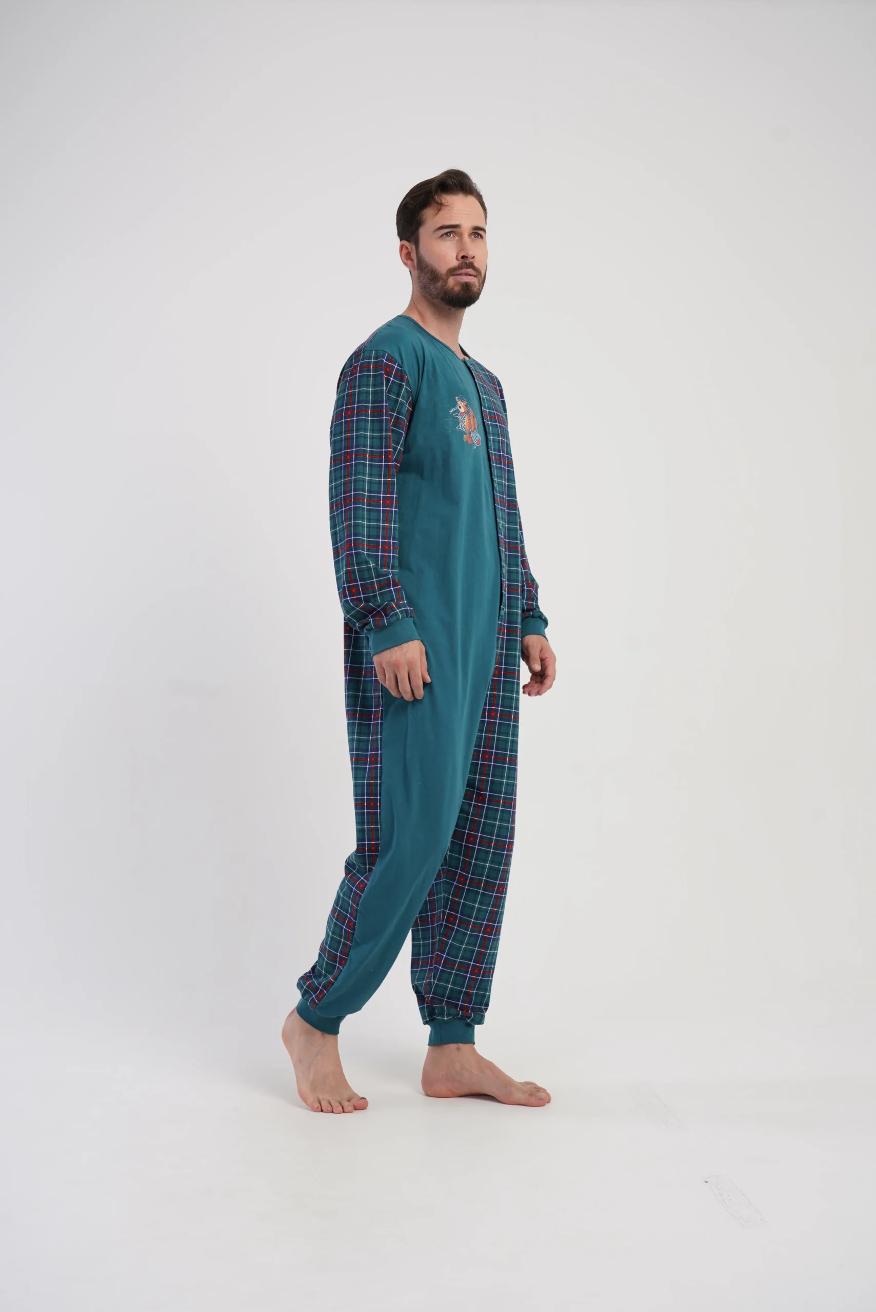 • Wygodna jednoczęściowa piżama męska z długim rękawem i długimi nogawkami