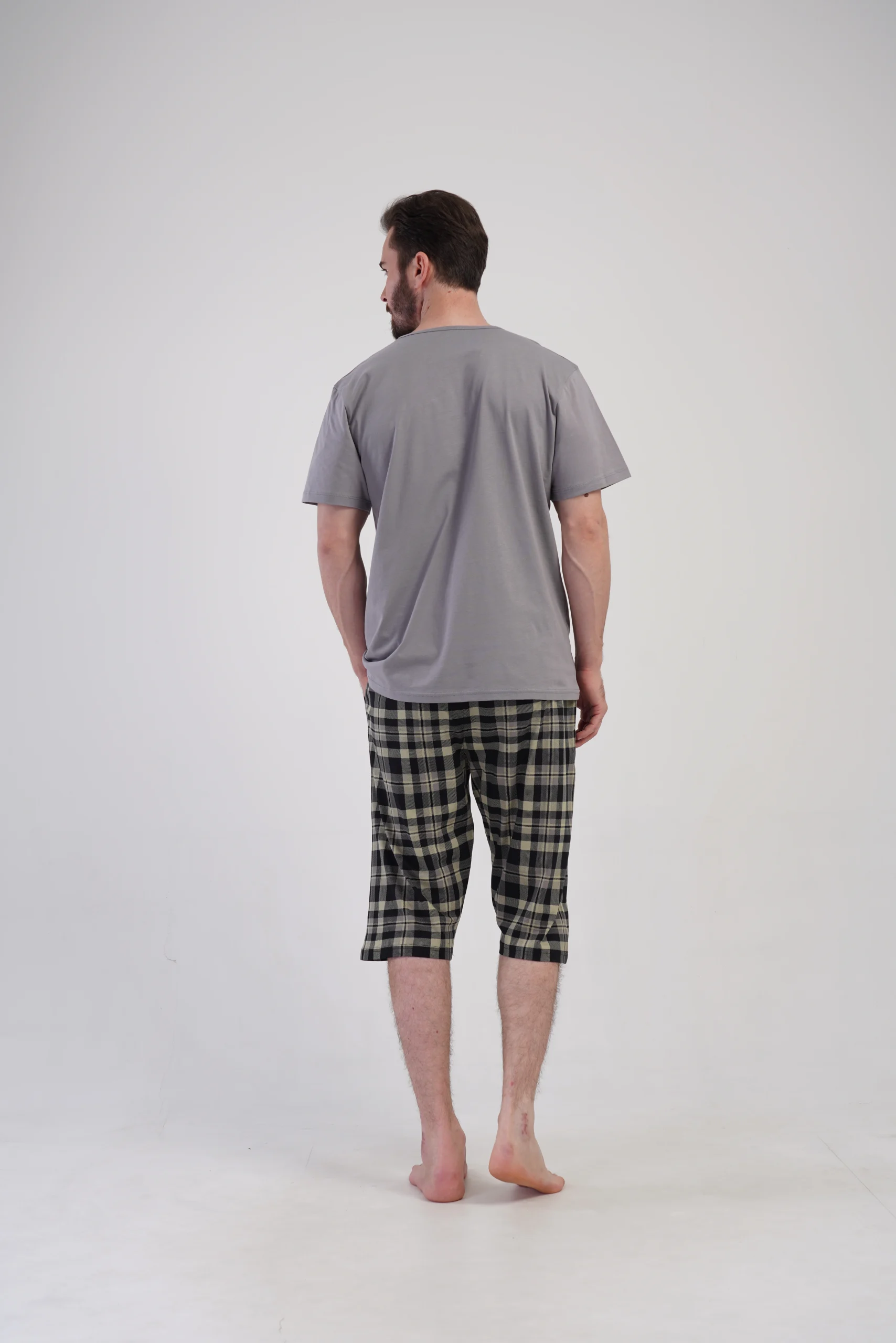• Klasyczna piżama męska składająca się z koszulki z krótkim rękawem i spodni o długości 3/4