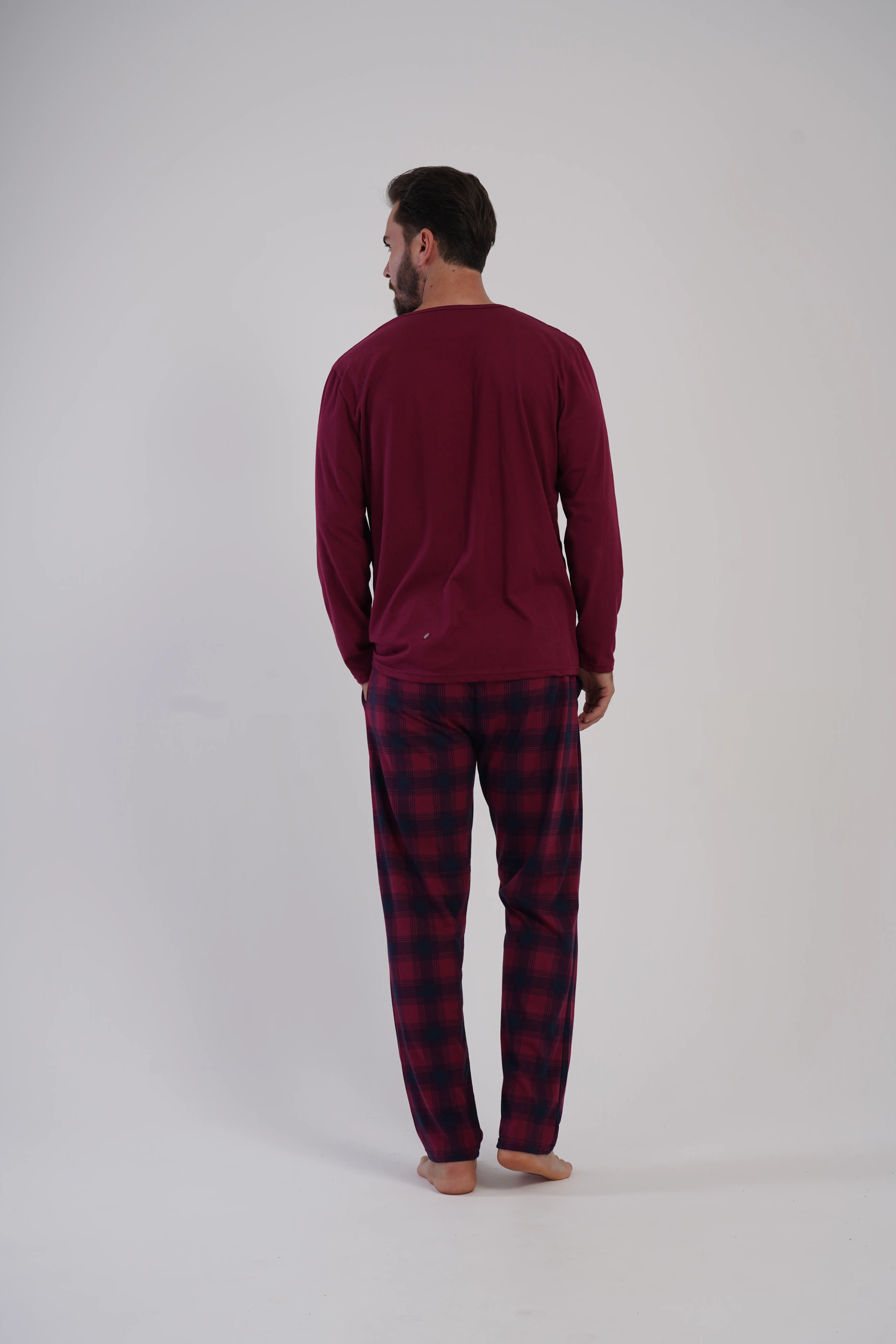 • Klasyczna piżama męska wykonana w 100% z naturalnej bawełny – miękka, oddychająca i przyjemna w dotyku