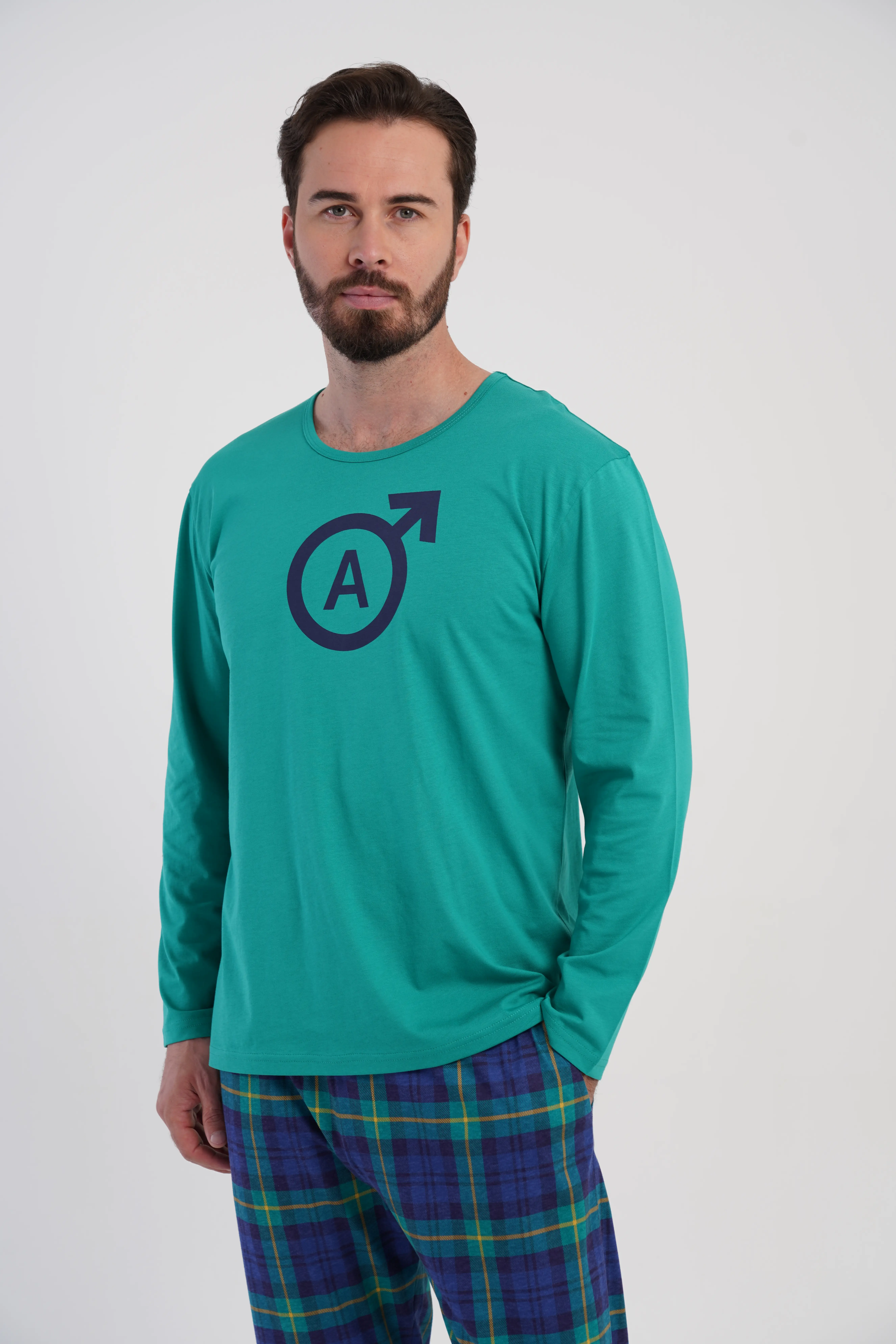 • Klasyczna piżama męska z długim rękawem, wykonana w 100% z wysokogatunkowej bawełny
