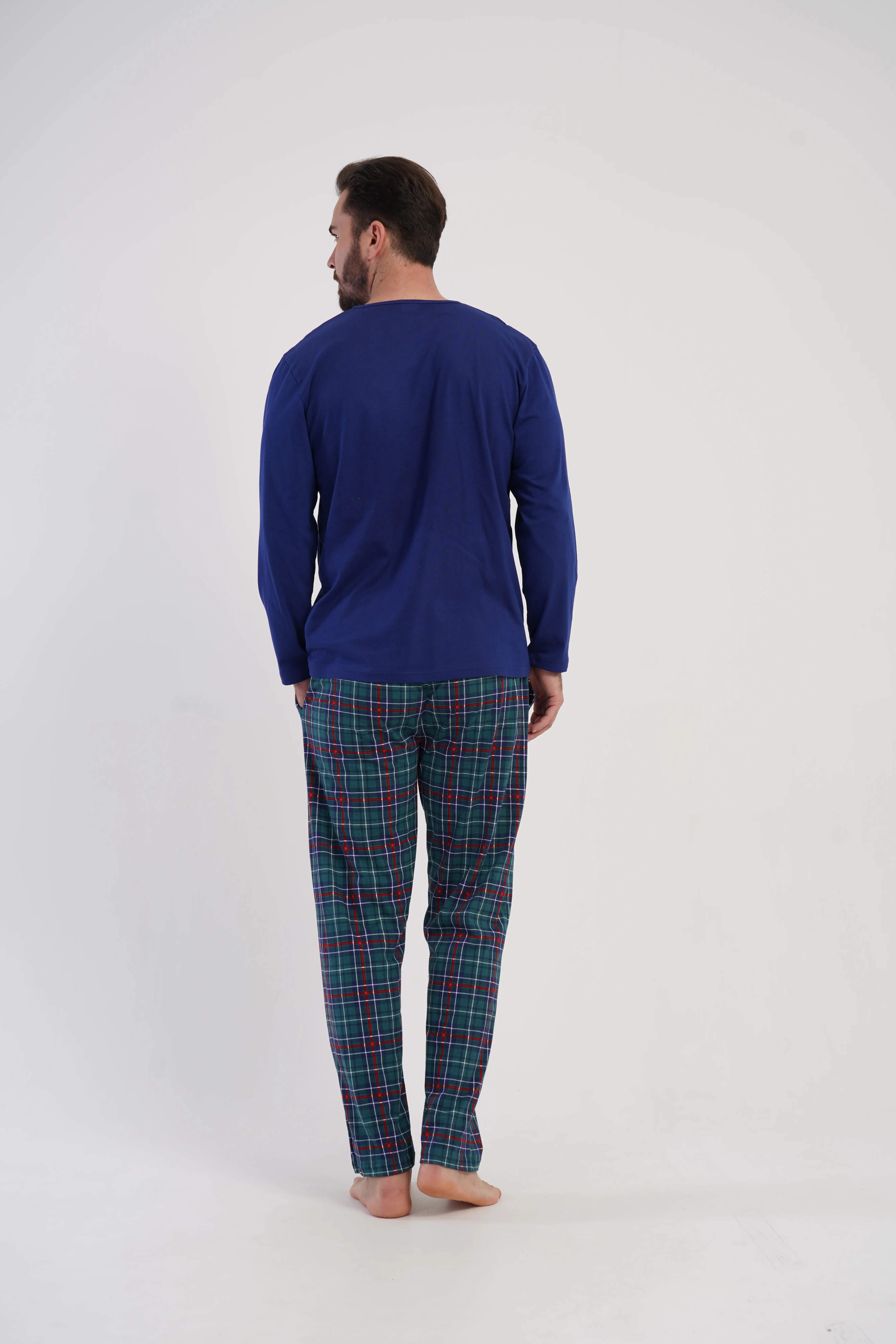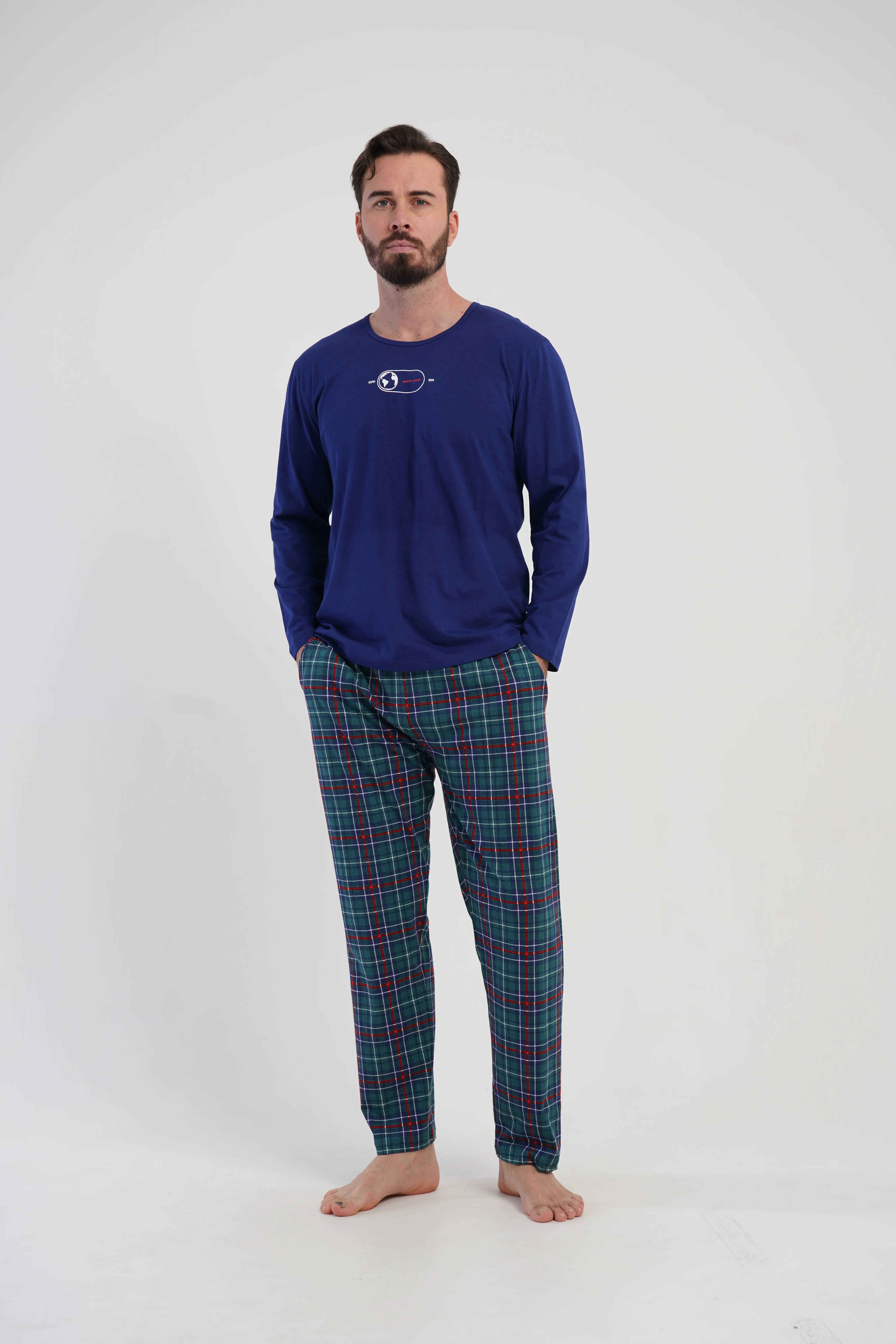 • Klasyczna piżama męska z długim rękawem, wykonana w 100% z miękkiej, oddychającej bawełny
