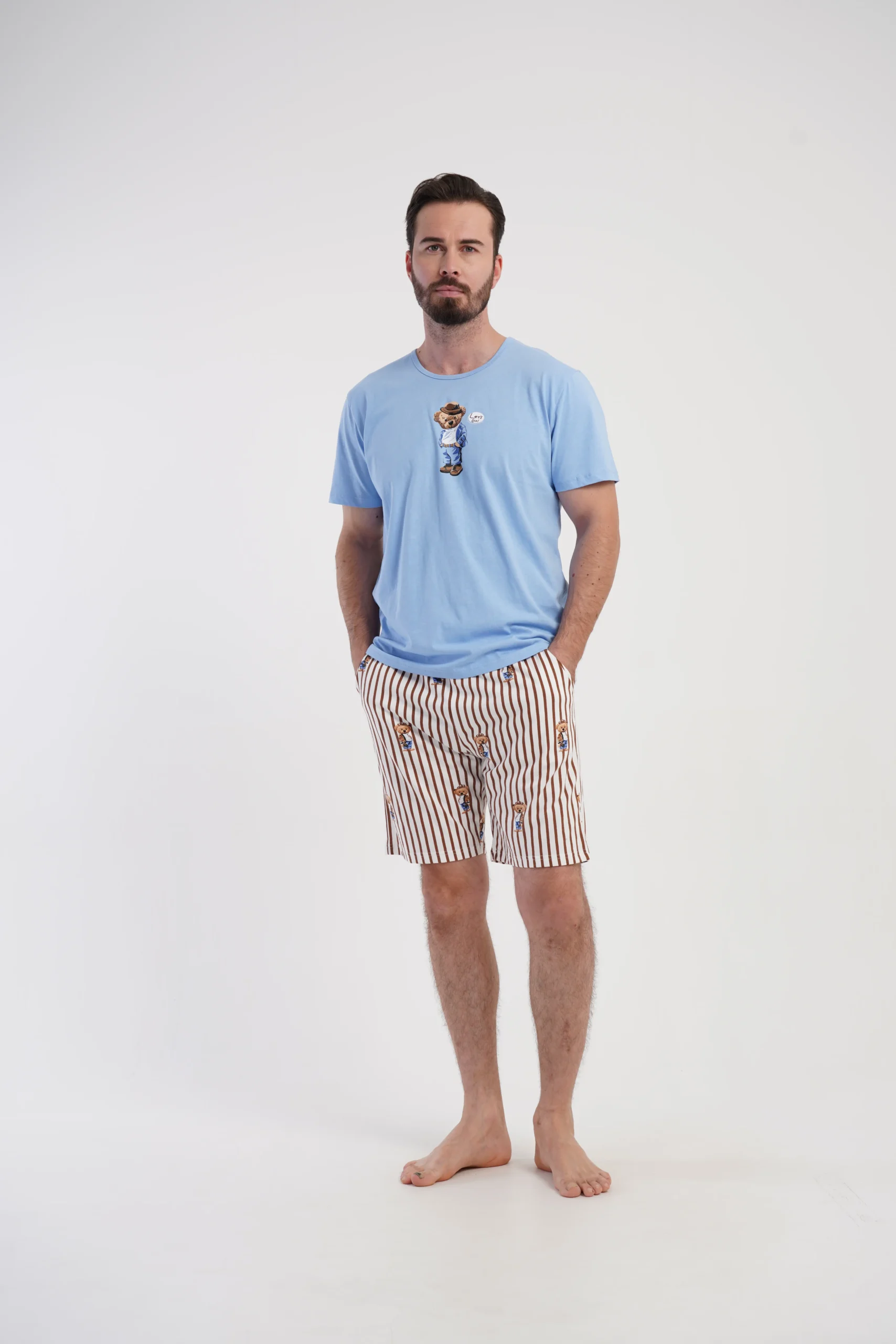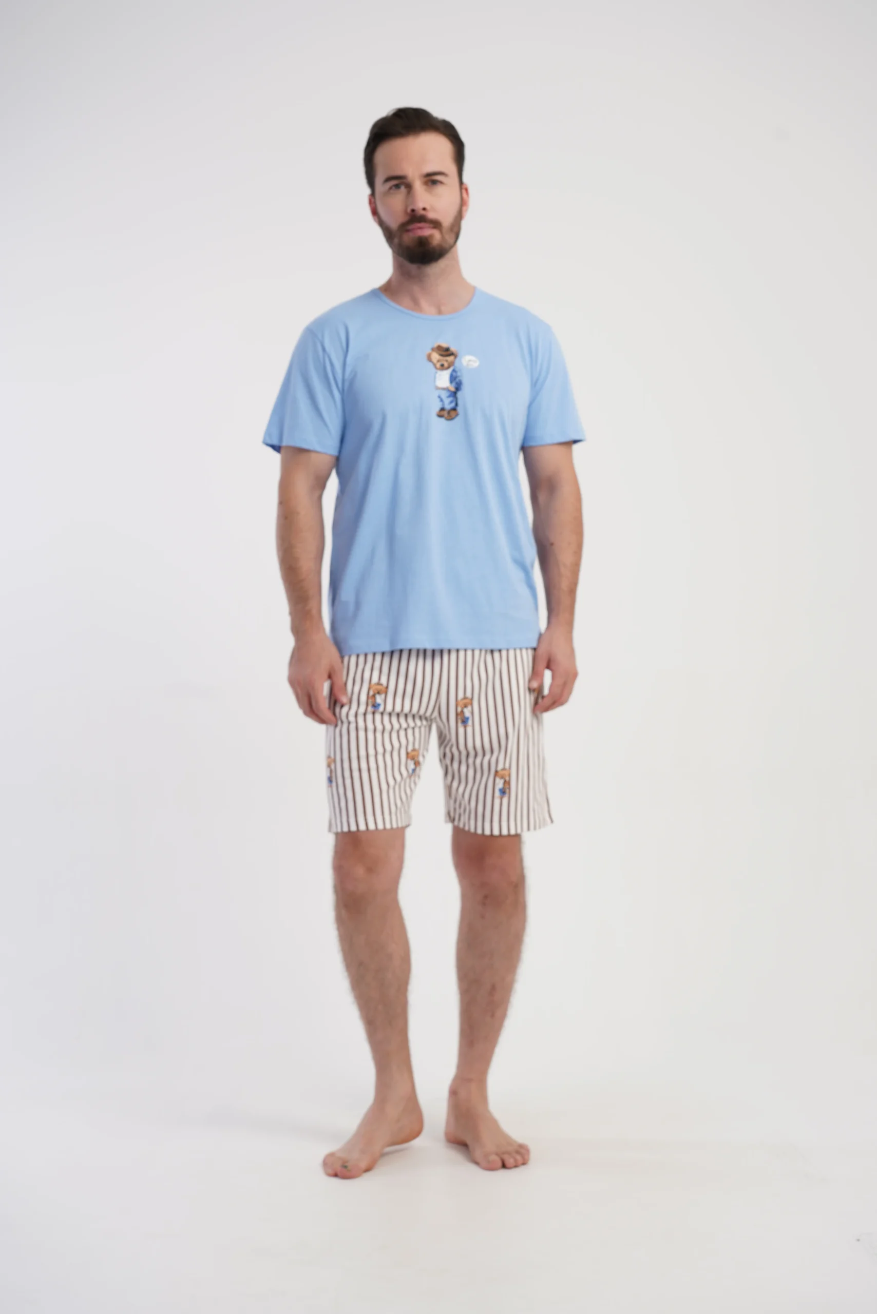 • Wygodna letnia piżama męska z krótkim rękawem i szortami