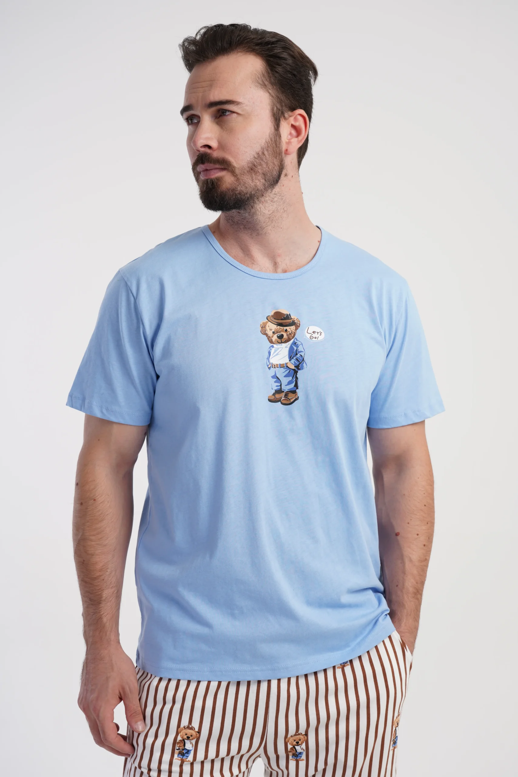 • Koszulka dostępna w dwóch wersjach kolorystycznych: brązowa lub błękitna, każda z uroczym nadrukiem misia
