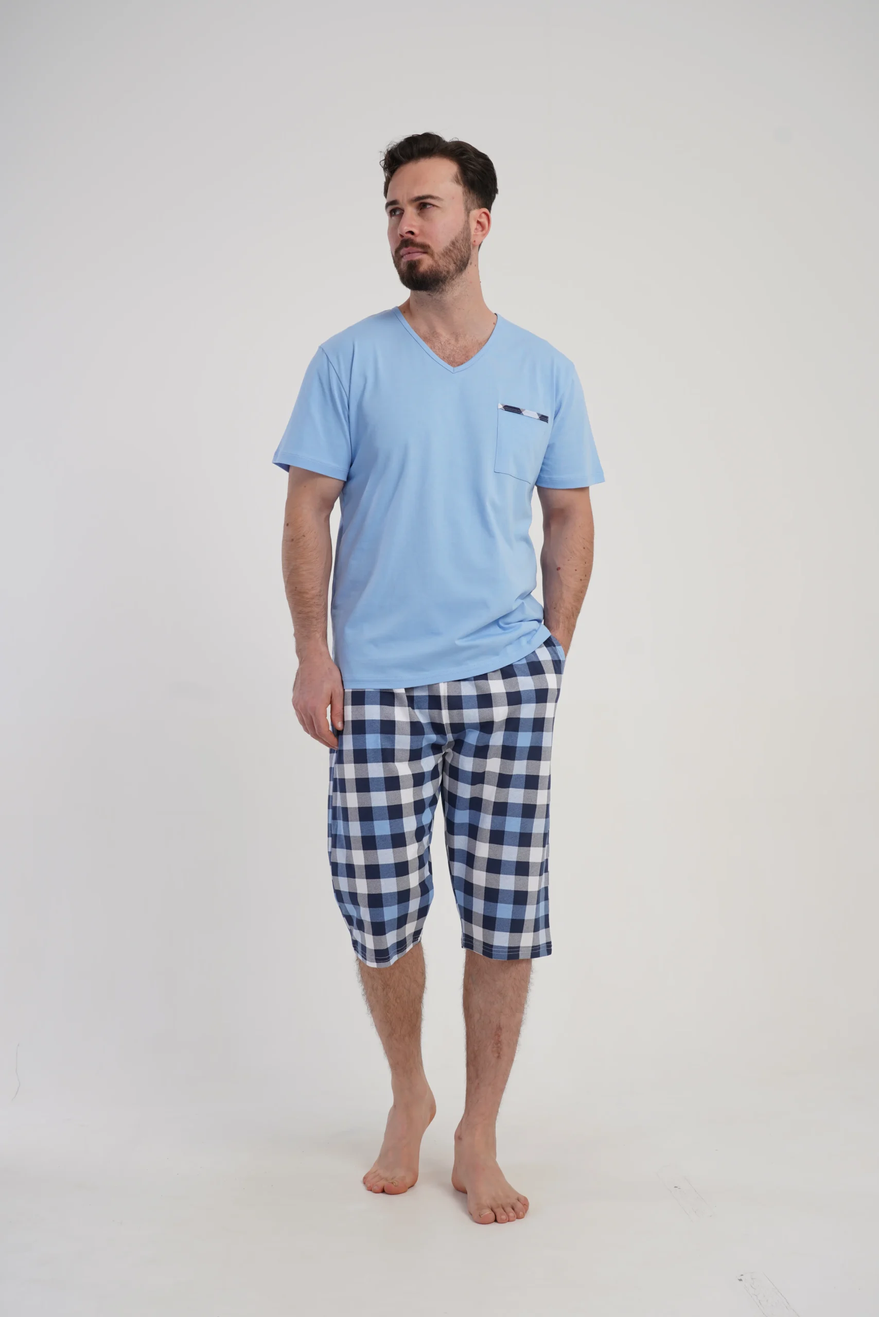 • Dwuczęściowa piżama męska: koszulka + spodnie 3/4