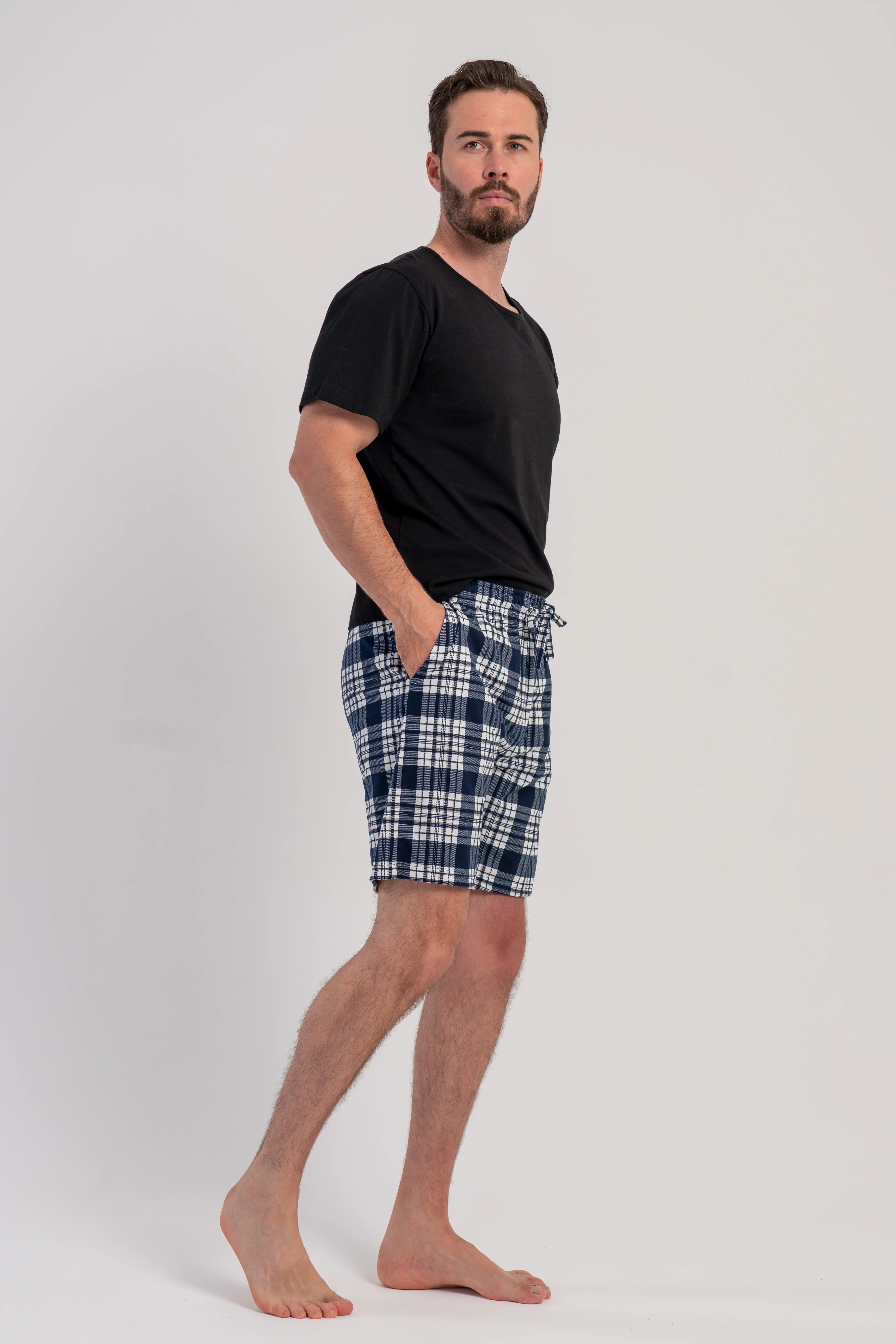 • Klasyczne spodenki męskie o prostym kroju, idealne do spania, wypoczynku lub codziennego noszenia w domu
