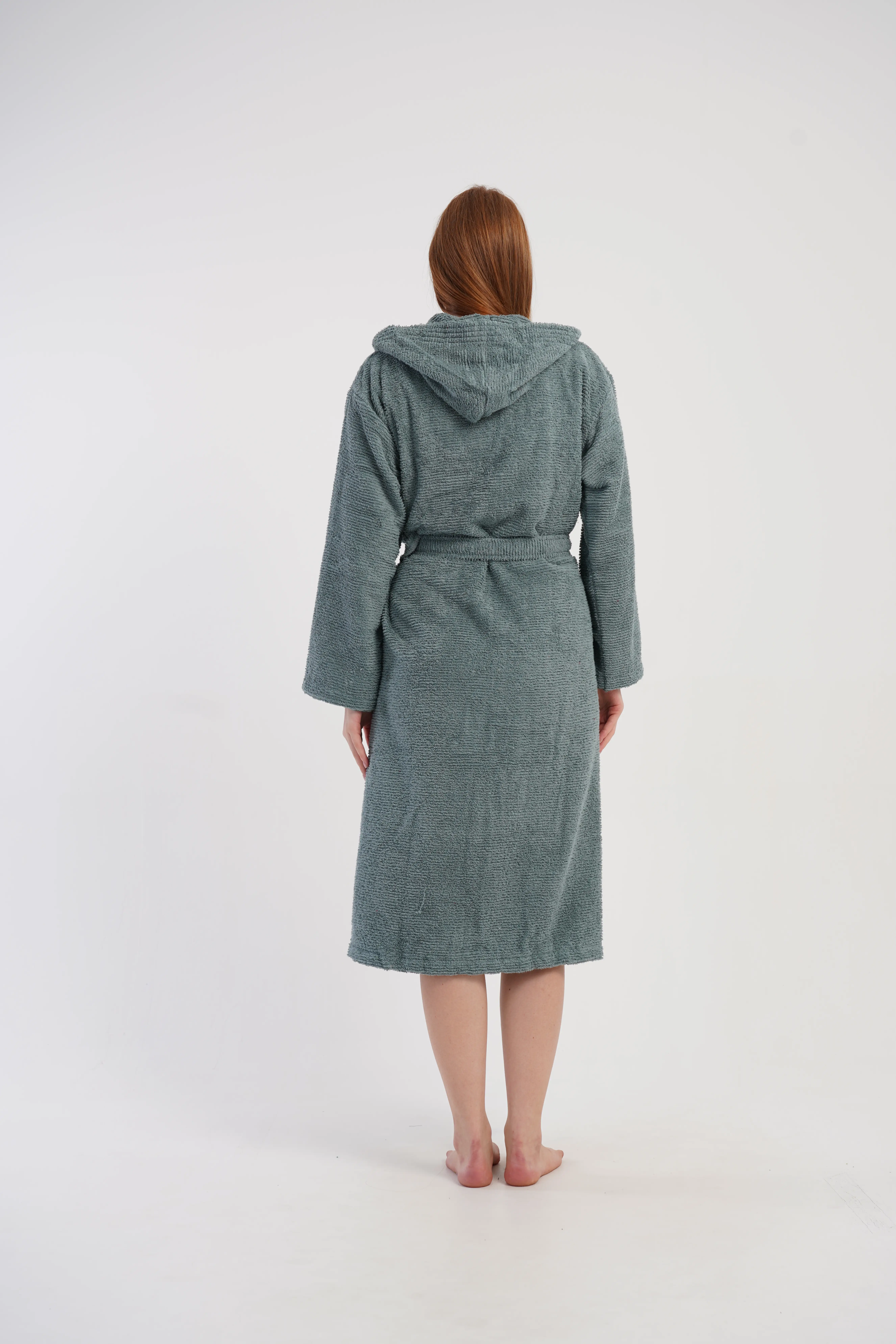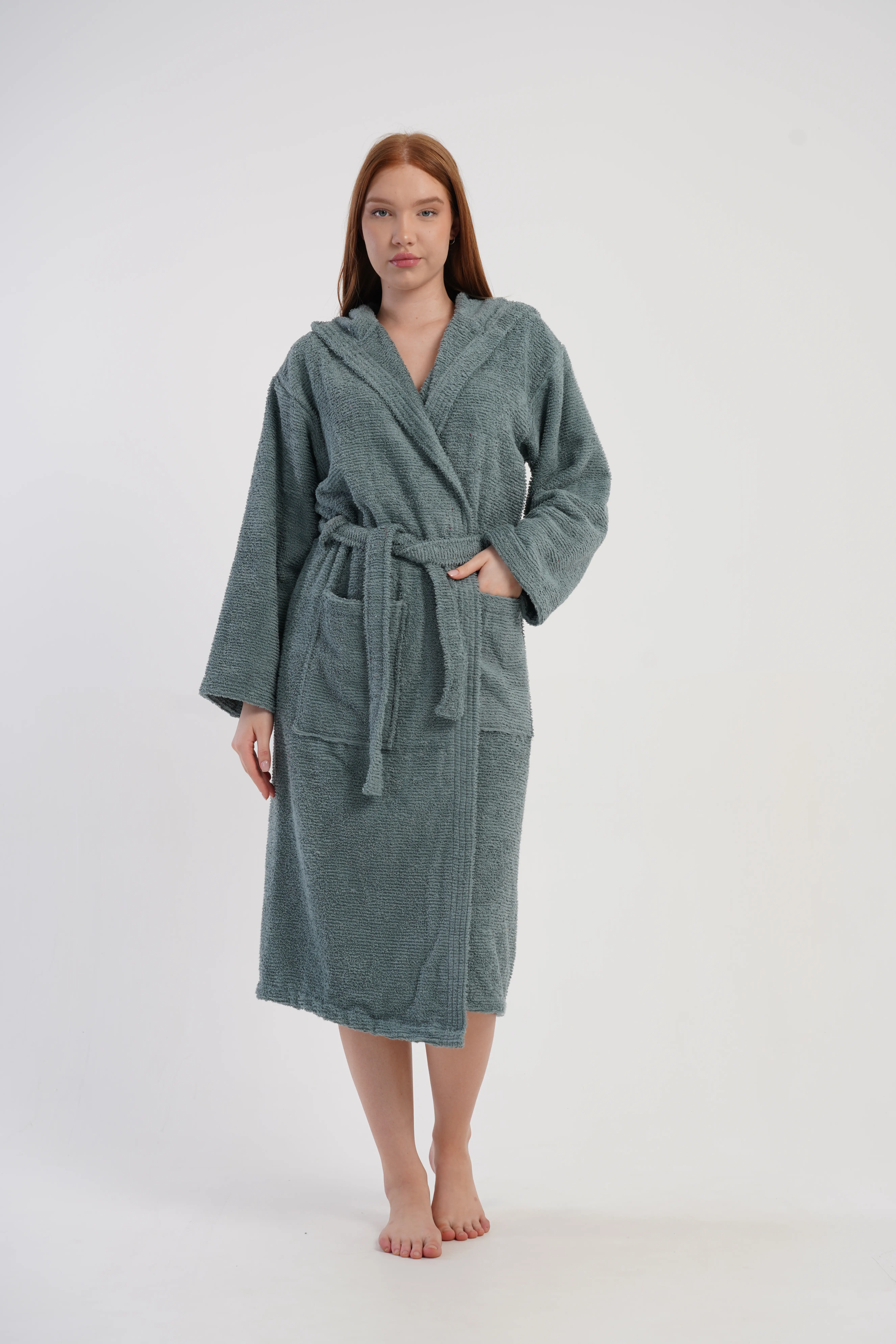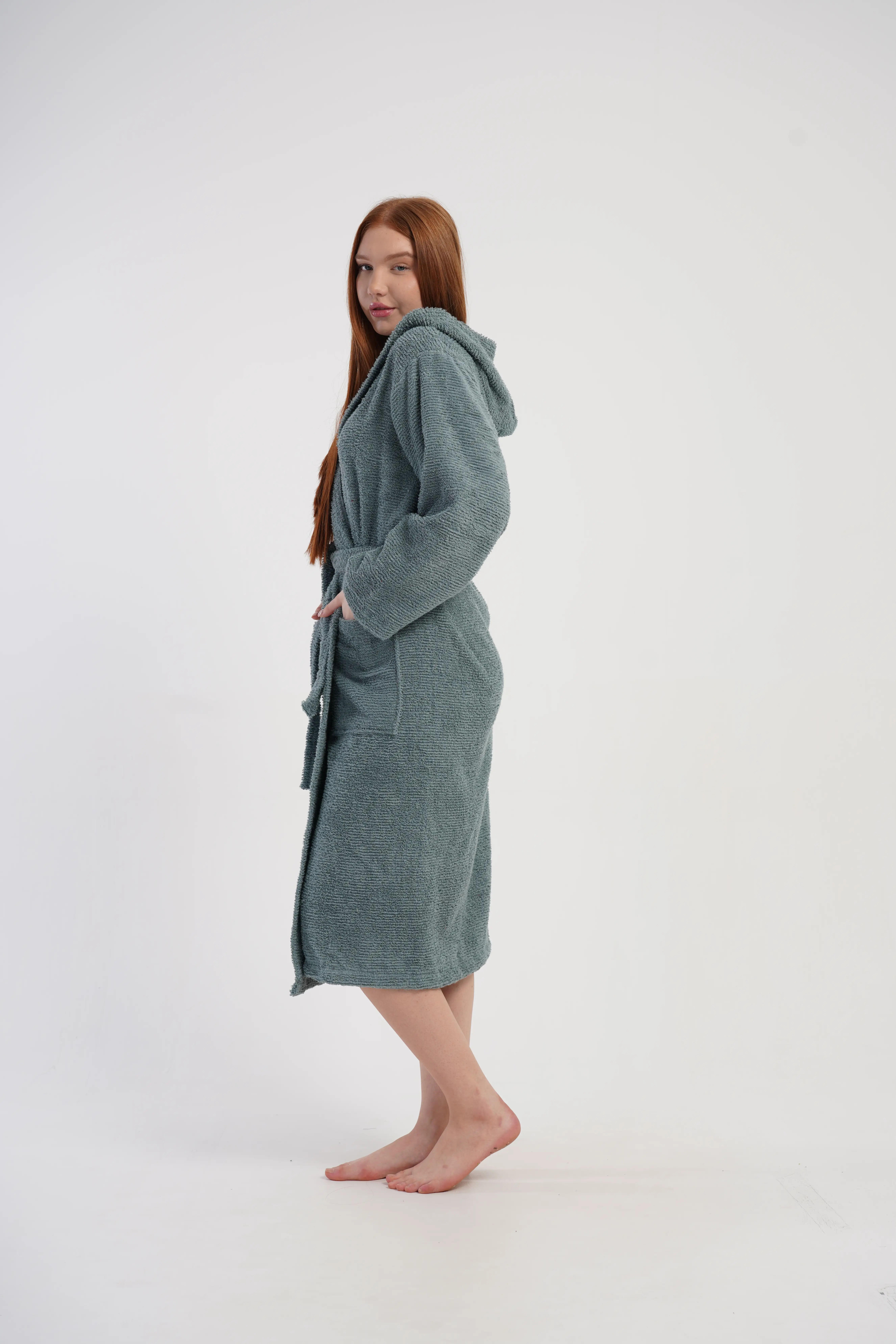 • Miękki, puszysty szlafrok damski z kapturem wykonany w 100% z naturalnej bawełny