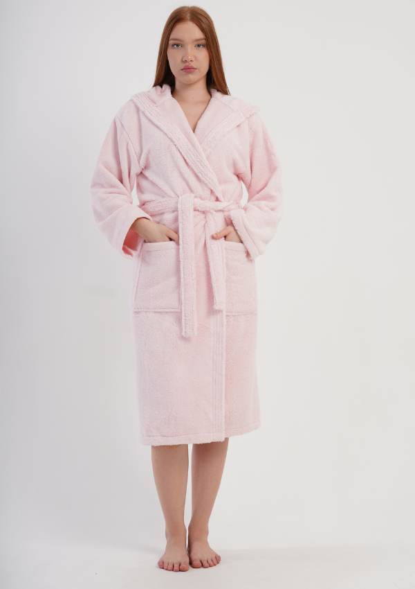 • Klasyczny szlafrok damski z kapturem, wykonany w 100% z wysokiej jakości bawełny typu bukle