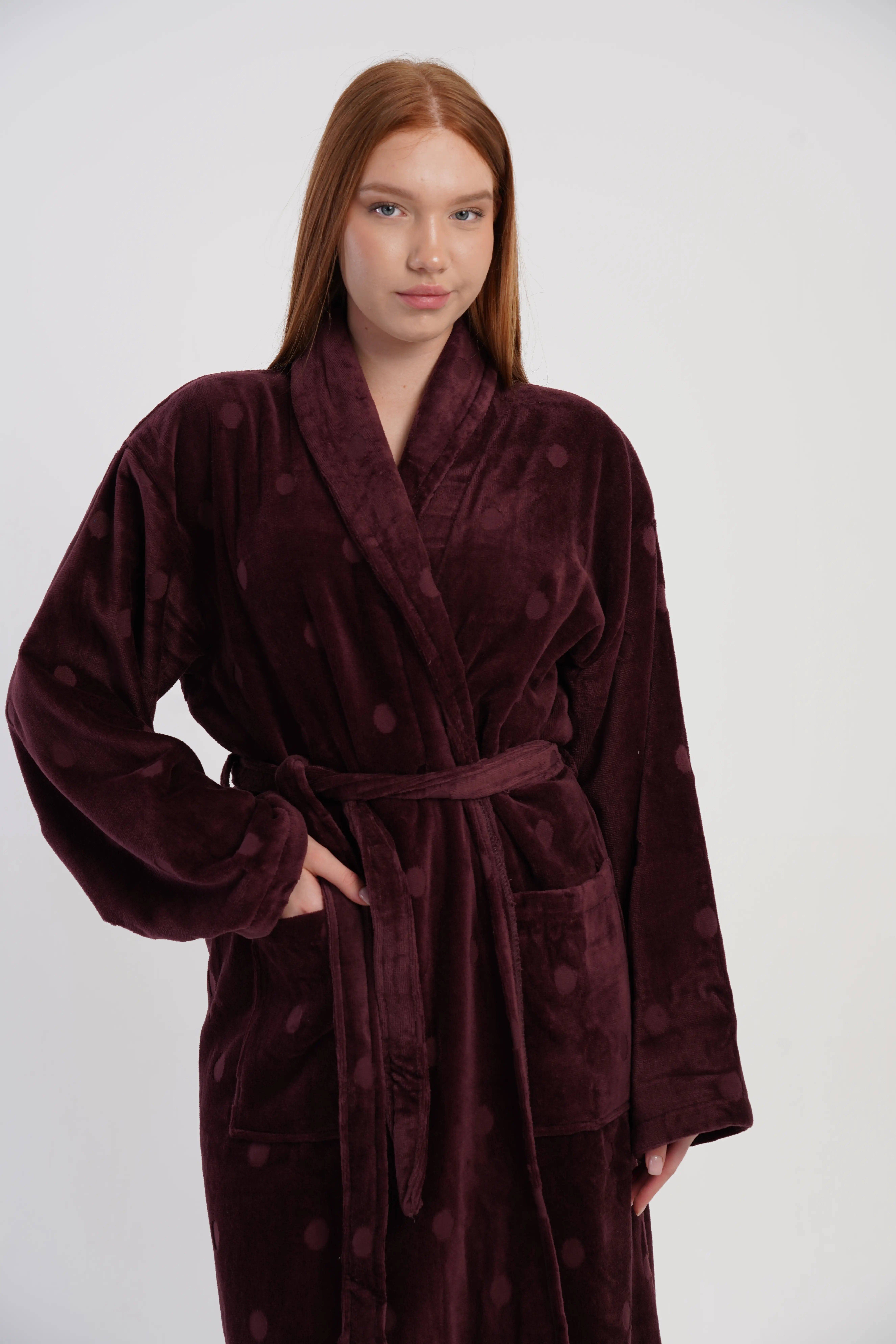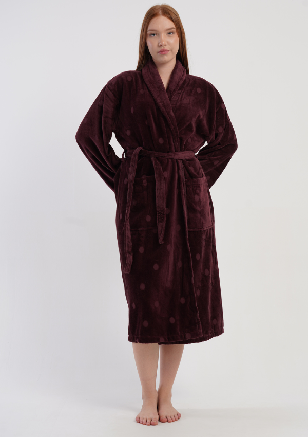 • Elegancki szlafrok damski wykonany z miękkiej, ciepłej bawełny typu bukle