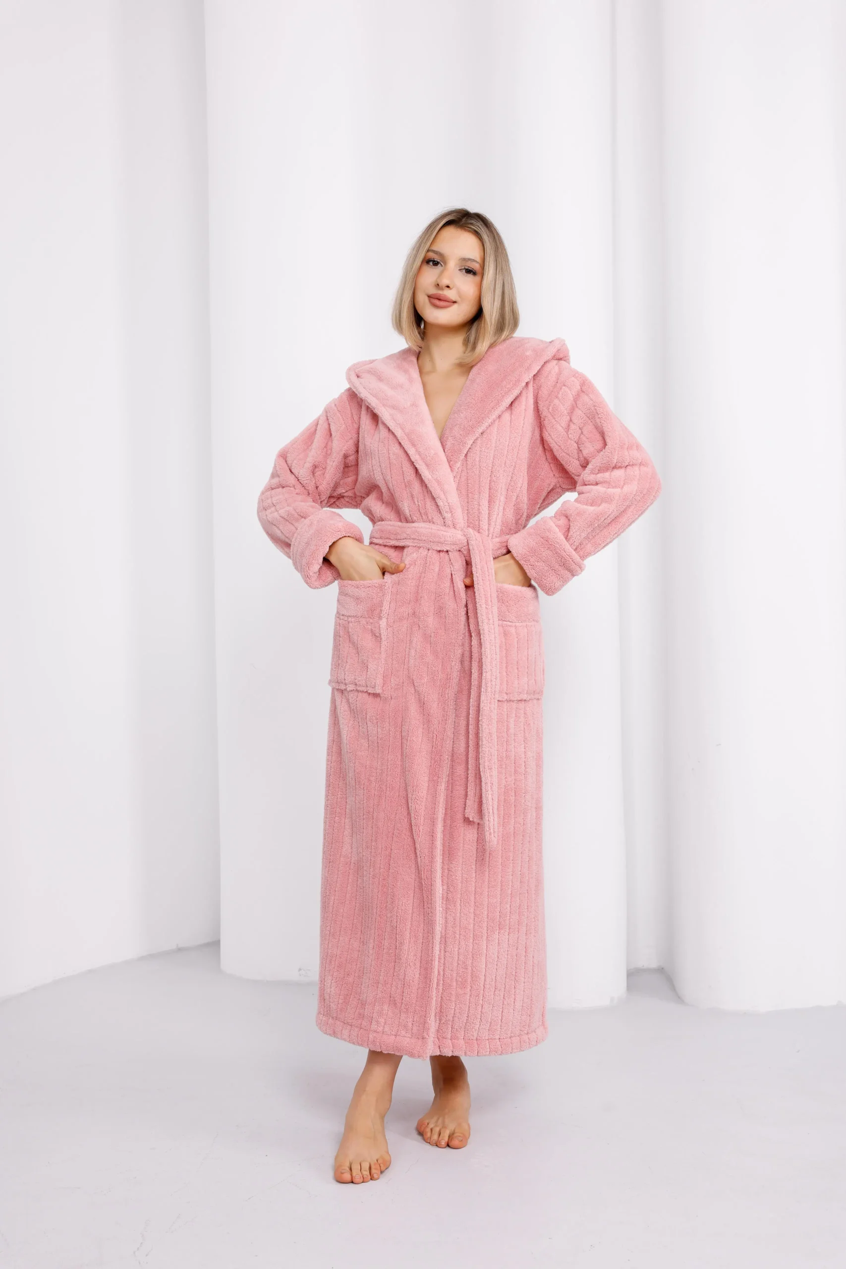 • Długi, wyjątkowo miękki szlafrok damski wykonany z materiału SOFT, który gwarantuje ciepło i przyjemność noszenia