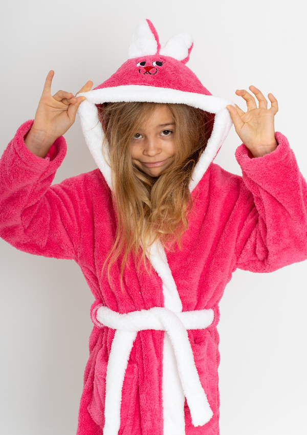 • Uroczy szlafrok dziecięcy z kapturem wykonany z miękkiego i puszystego materiału soft (welsoft)