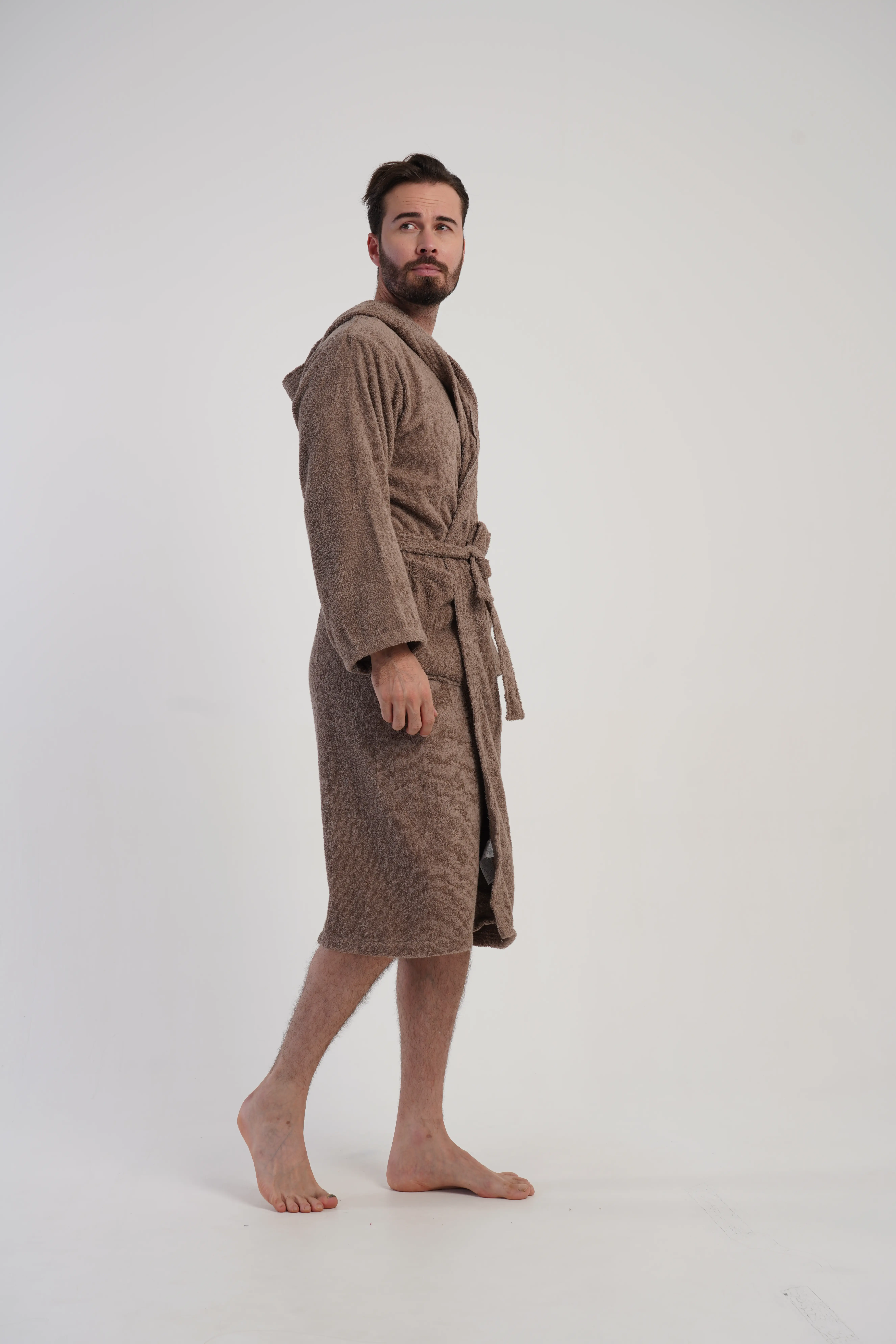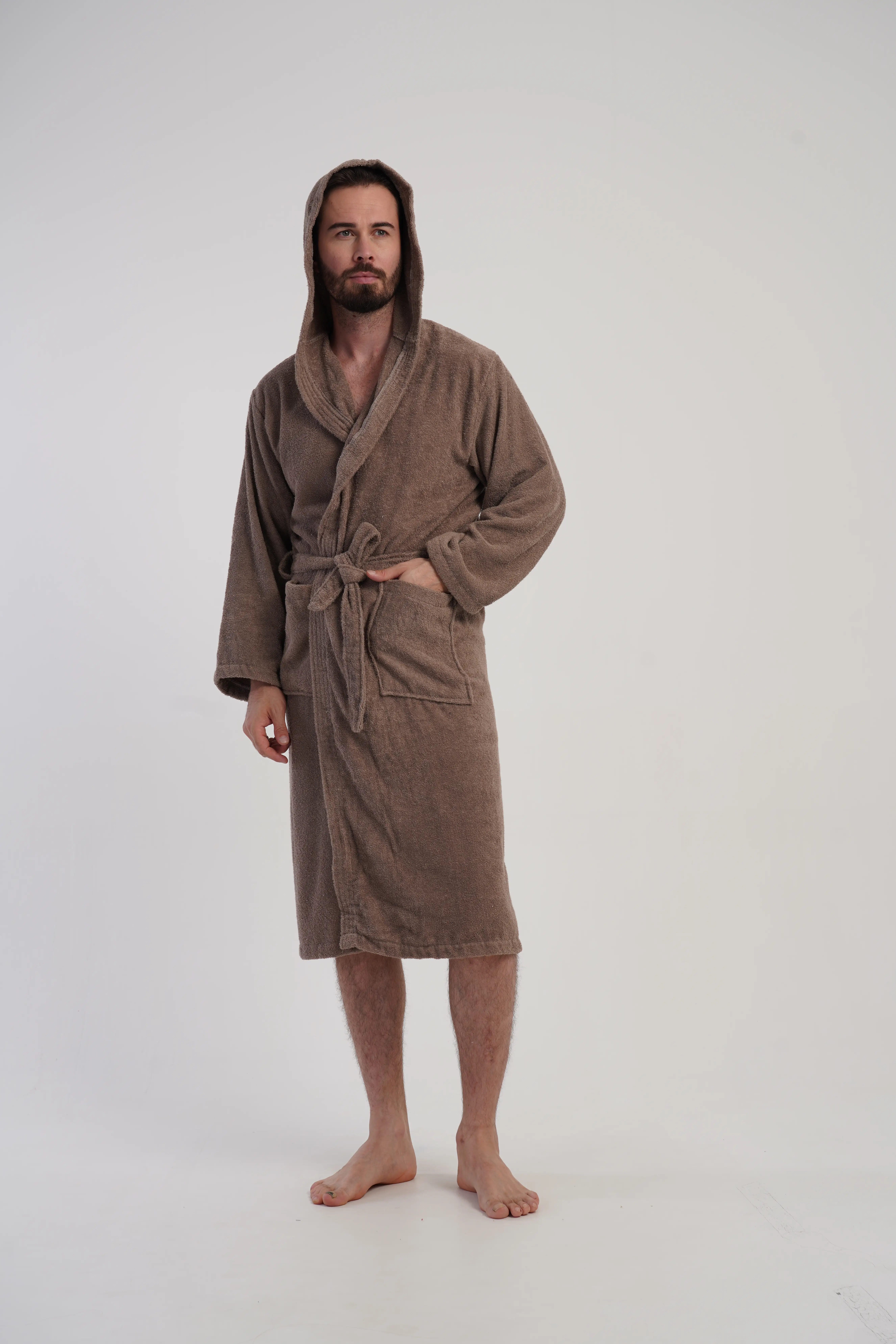 • Klasyczny szlafrok męski z kapturem wykonany w 100% z wysokiej jakości bawełny typu bukle